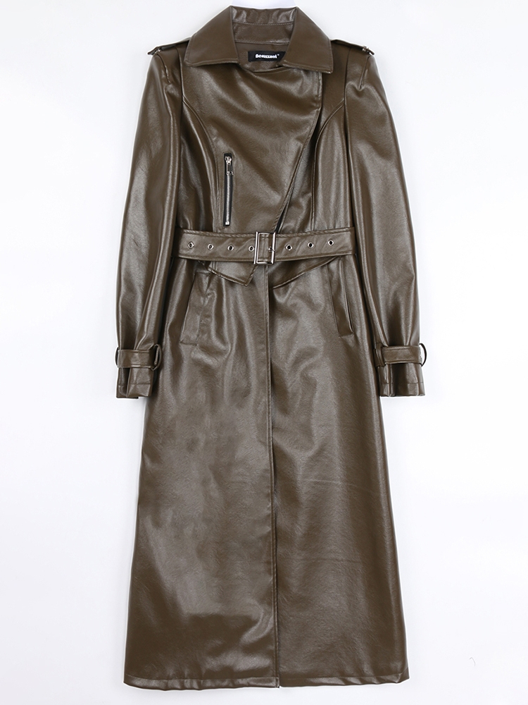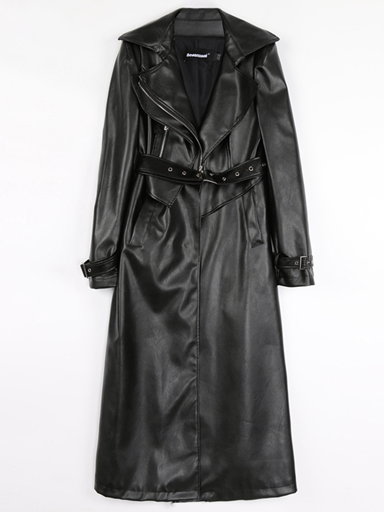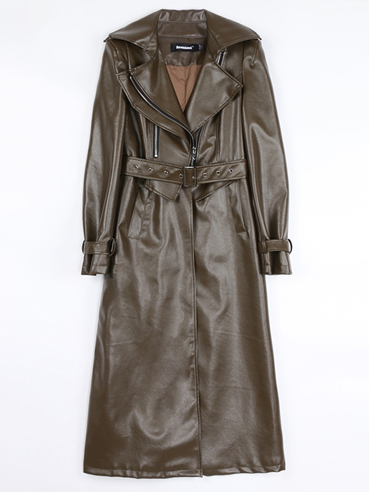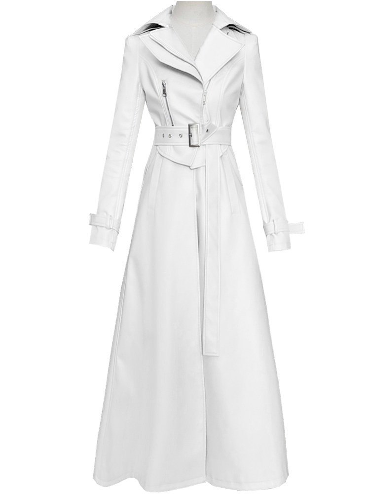 Nerazzurri Spring Runway White Long Leather Trench Coat for Women Long Sleeve Elegant Luxury fashion Womens Coats 2021 Designer