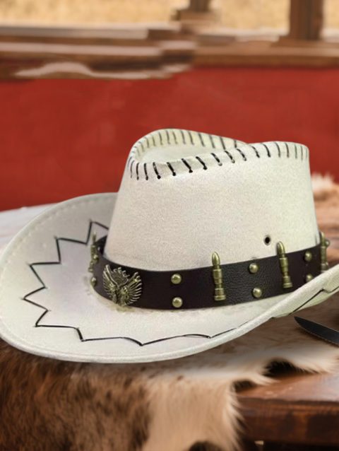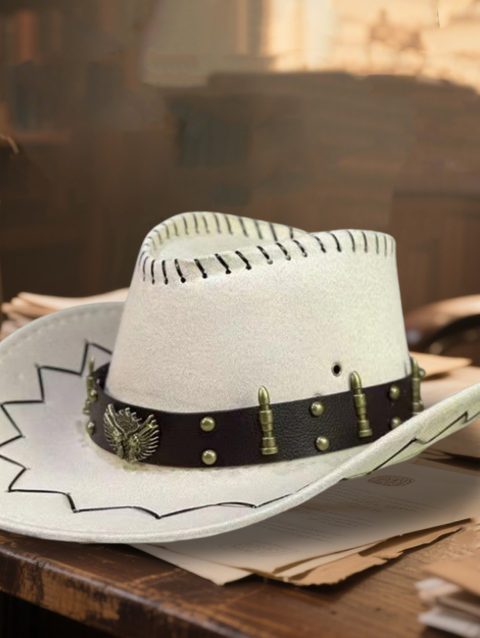 Vintage Rodeo Cowboy Hat for Ladies Gentlemen Gun Holster Wide Brim Wild West Cap with Adjustable Chin Strap and Sun Protection
