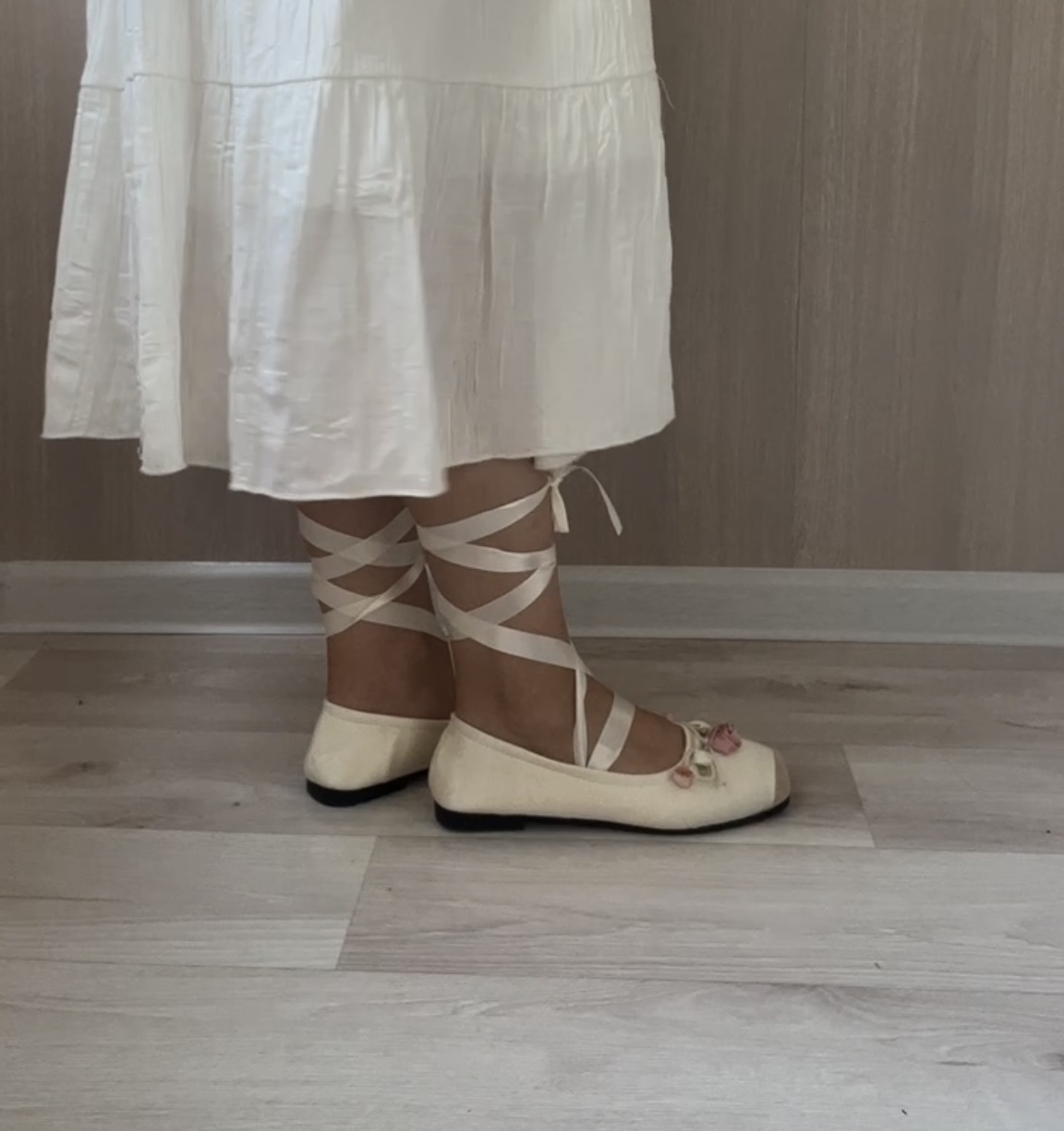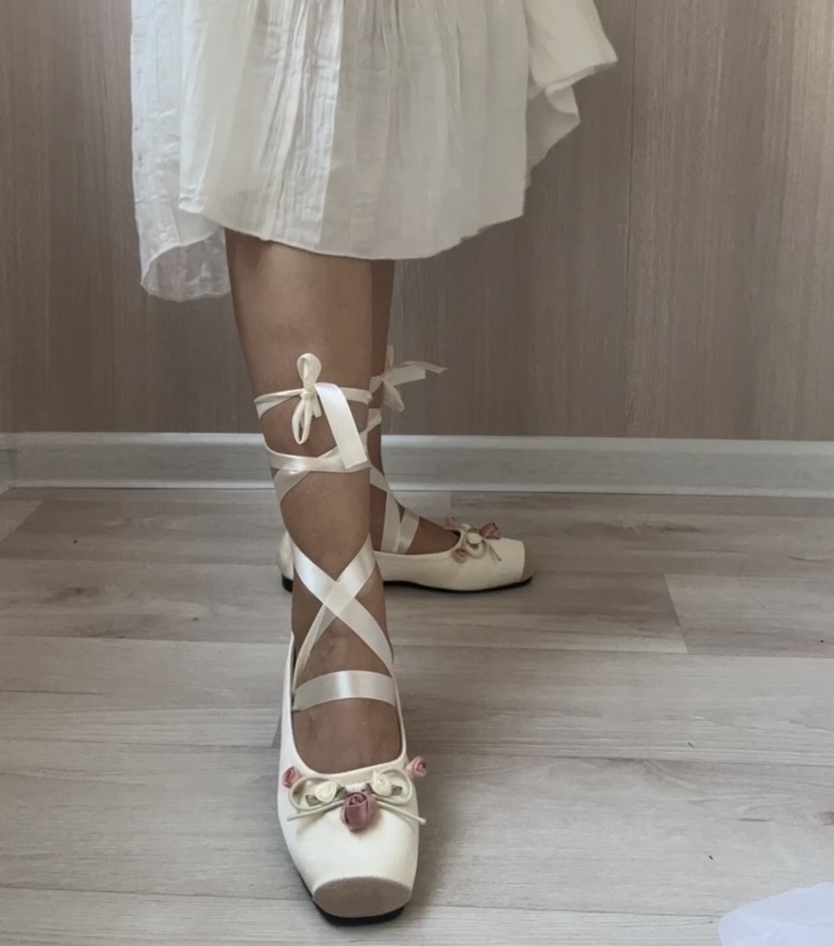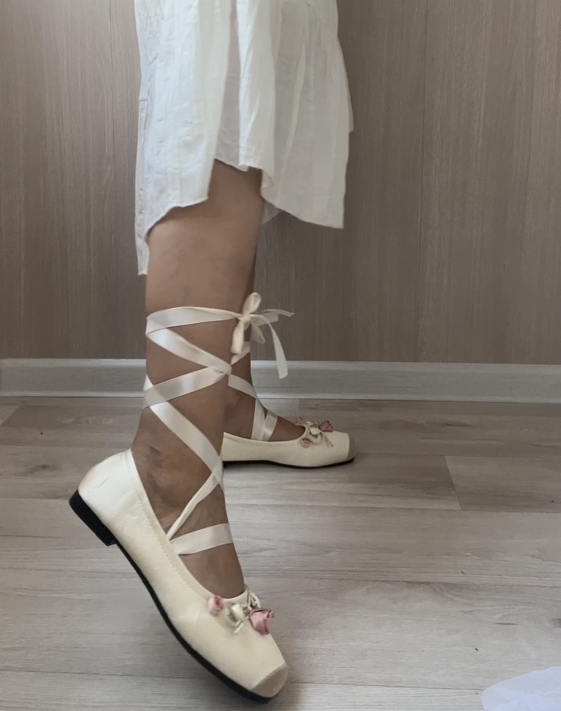 NEW Classic Silk Ballet Shoes Lace Up Ballet Shoes Women Square Toe Bowtie and Rose Flower Women Flats Elegant Valentine Shoes
