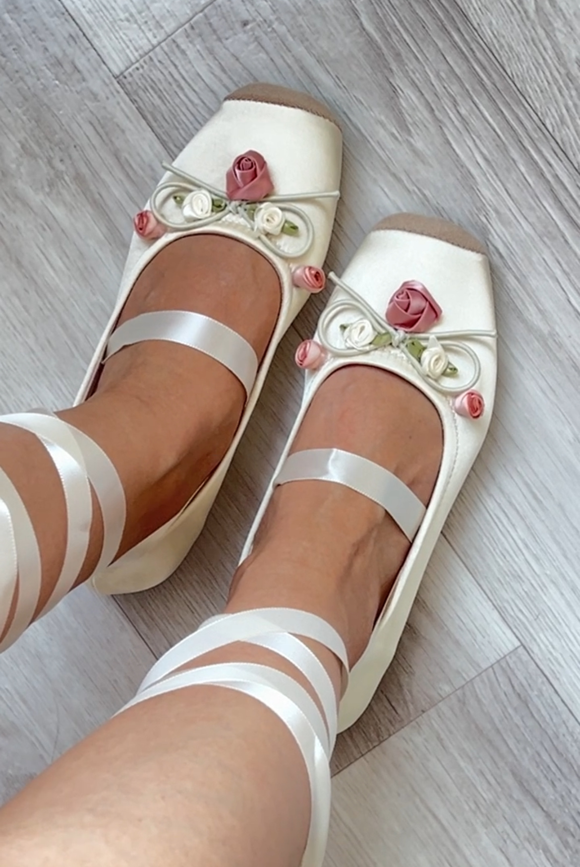 3 reviews for NEW Classic Silk Ballet Shoes Lace Up Ballet Shoes Women Square Toe Bowtie and Rose Flower Women Flats Elegant Valentine Shoes