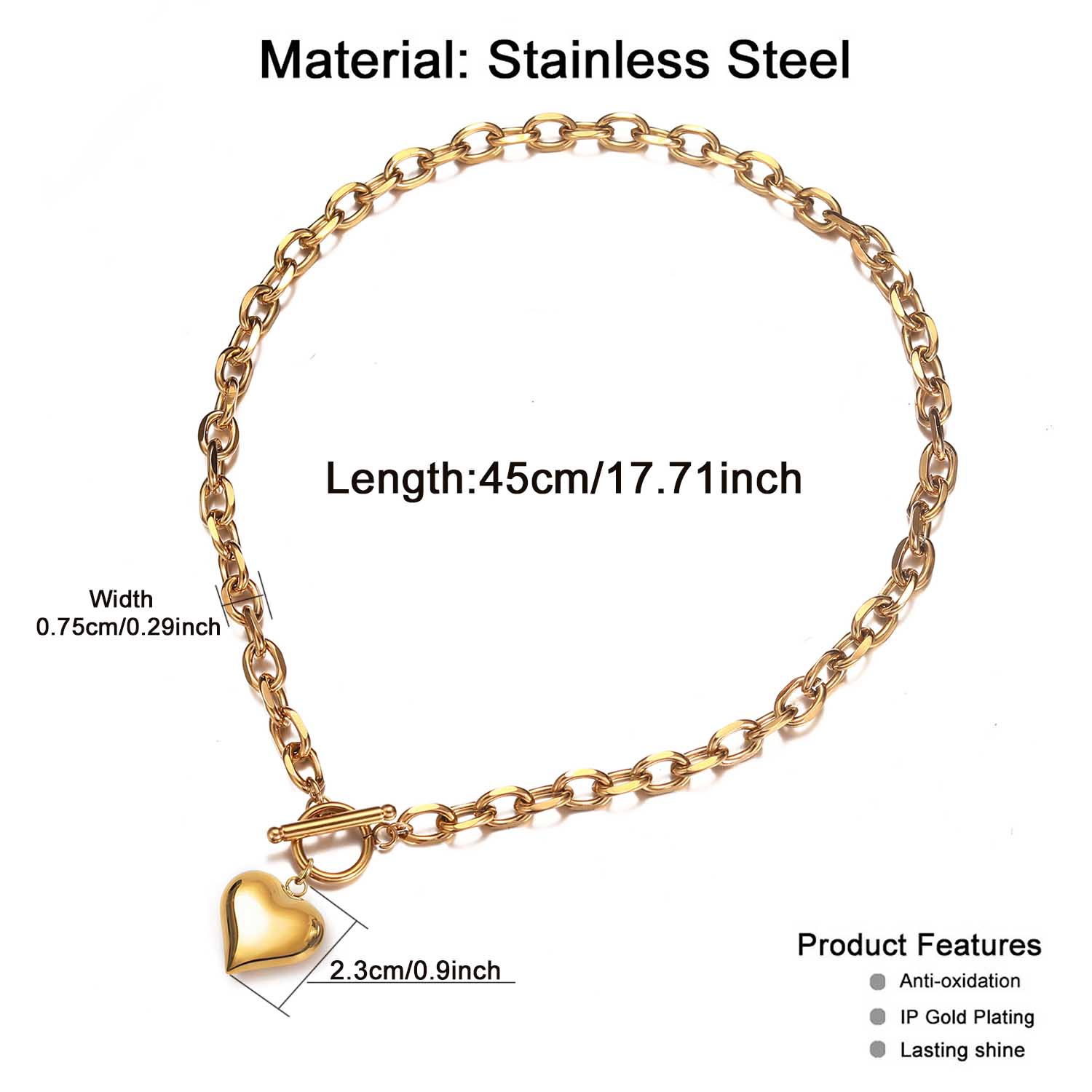 3 reviews for New Design Stainless Steel Puffy Heart Pendant Necklaces For Women Toggle Choker Necklaces Fashion Jewelry