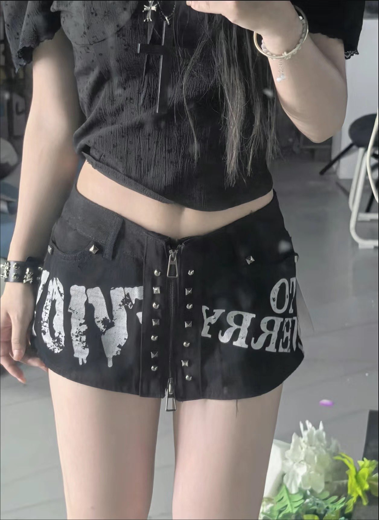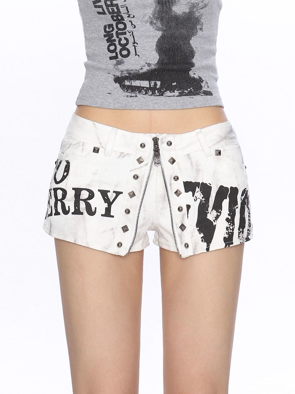 New Gothic Y2k Shorts Women Harajuku Retro Fashion Graffiti Fake Two Piece Denim Shorts Sexy Hot Girl Low Waist Jeans Shorts