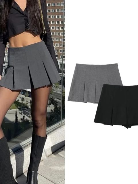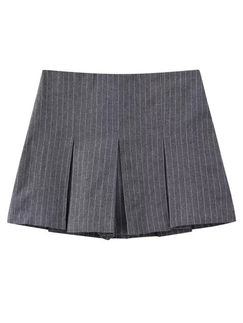 MUJER Women’s Shorts Skirts High Waist Pleated Skirt Shorts Women Striped Bermuda Shorts Woman Fashion Casual Mini Shorts Women