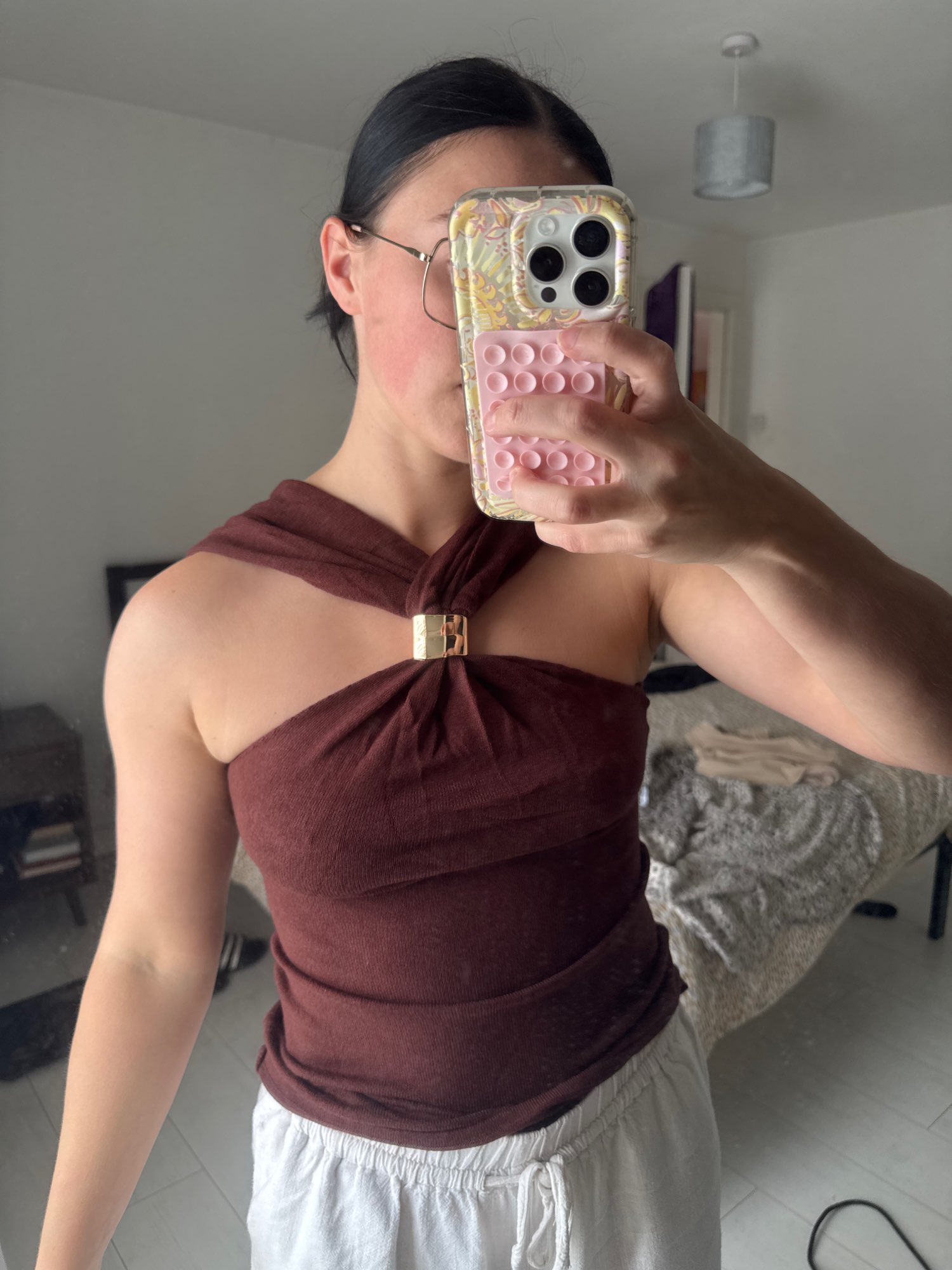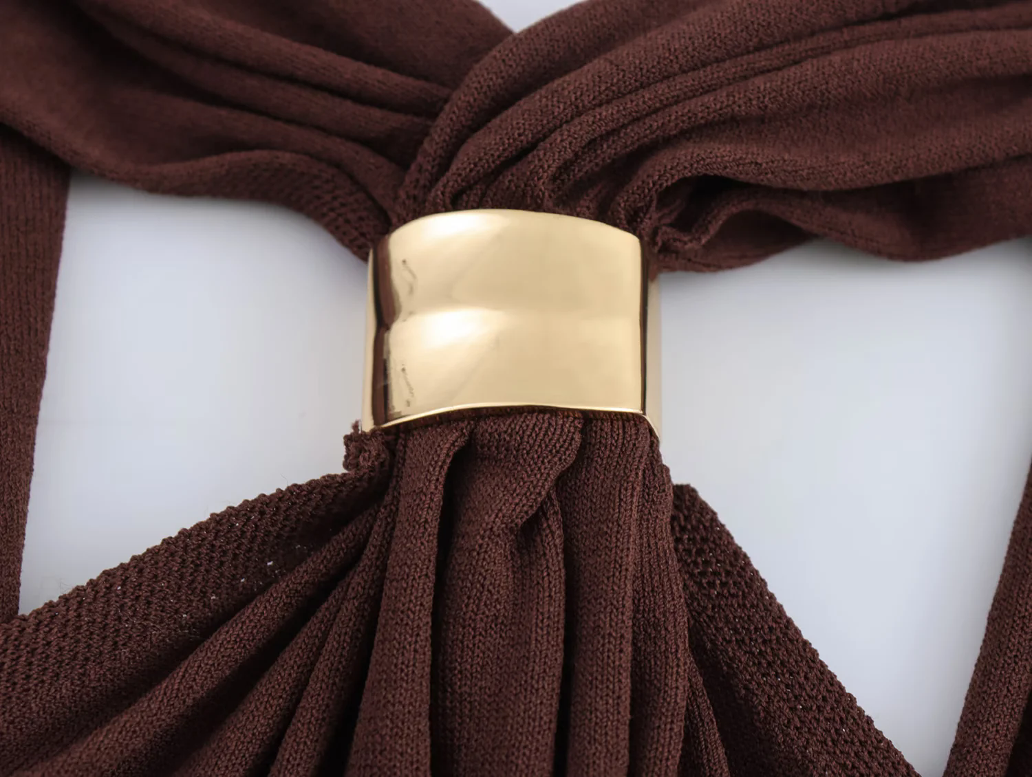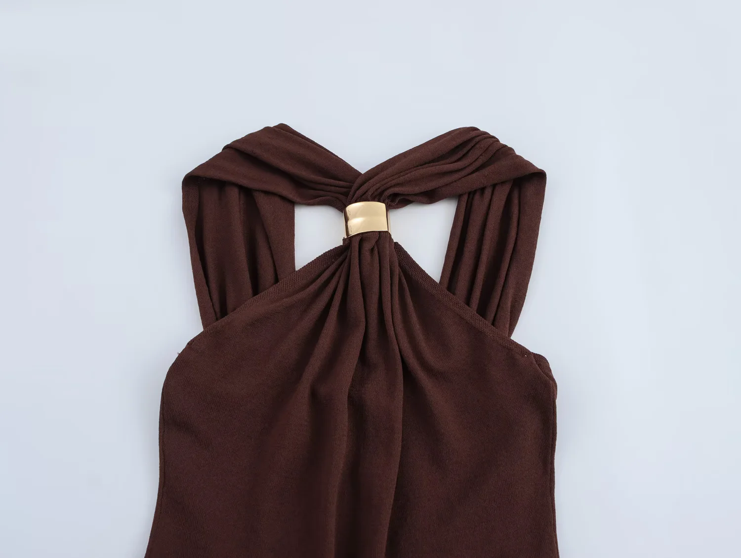 New Halter Tops Fashion Metal Decoration Crop Top Woman 2025 Sleeveless Hanging Collar Short Tops For Women Sexy Party Top