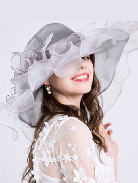 Women’s Sheer Organza Wedding Hat with Wide Brim & Veil – Elegant Kentucky Derby Church Hat for Bride, Mother of Groom, Formal P