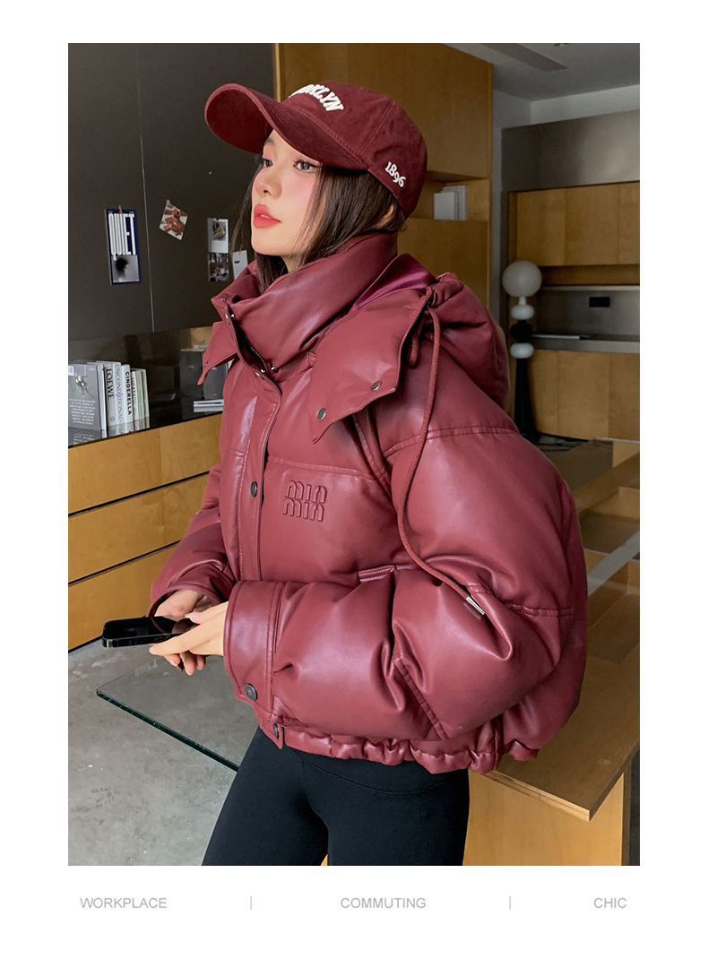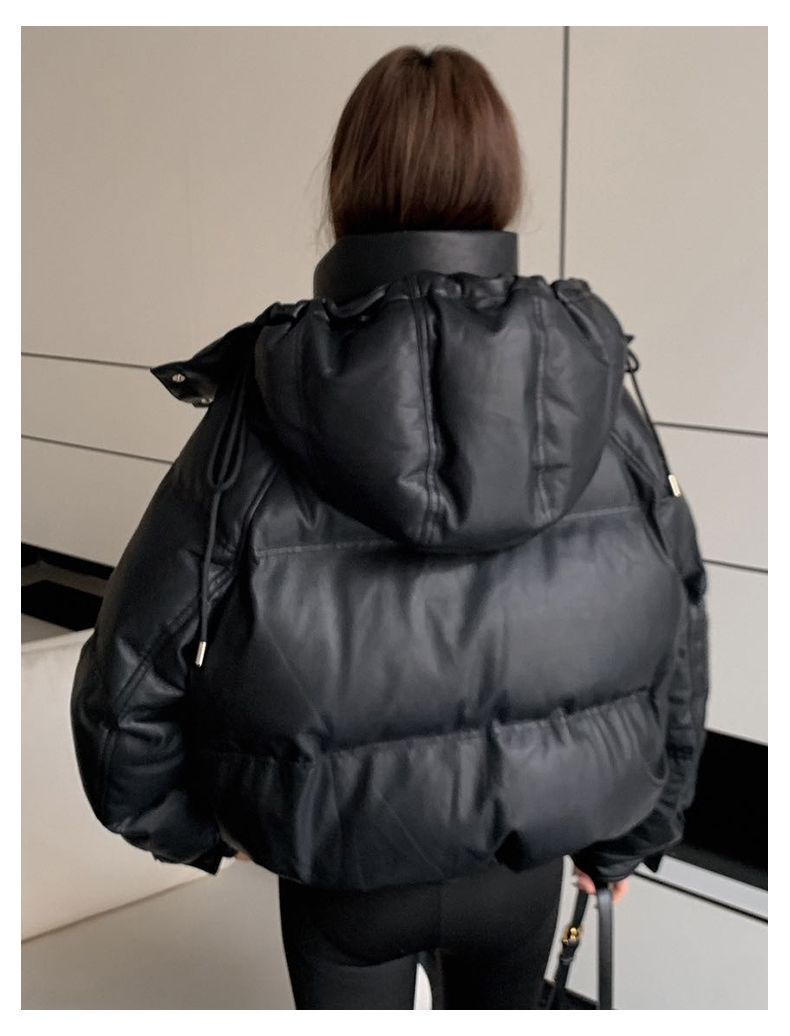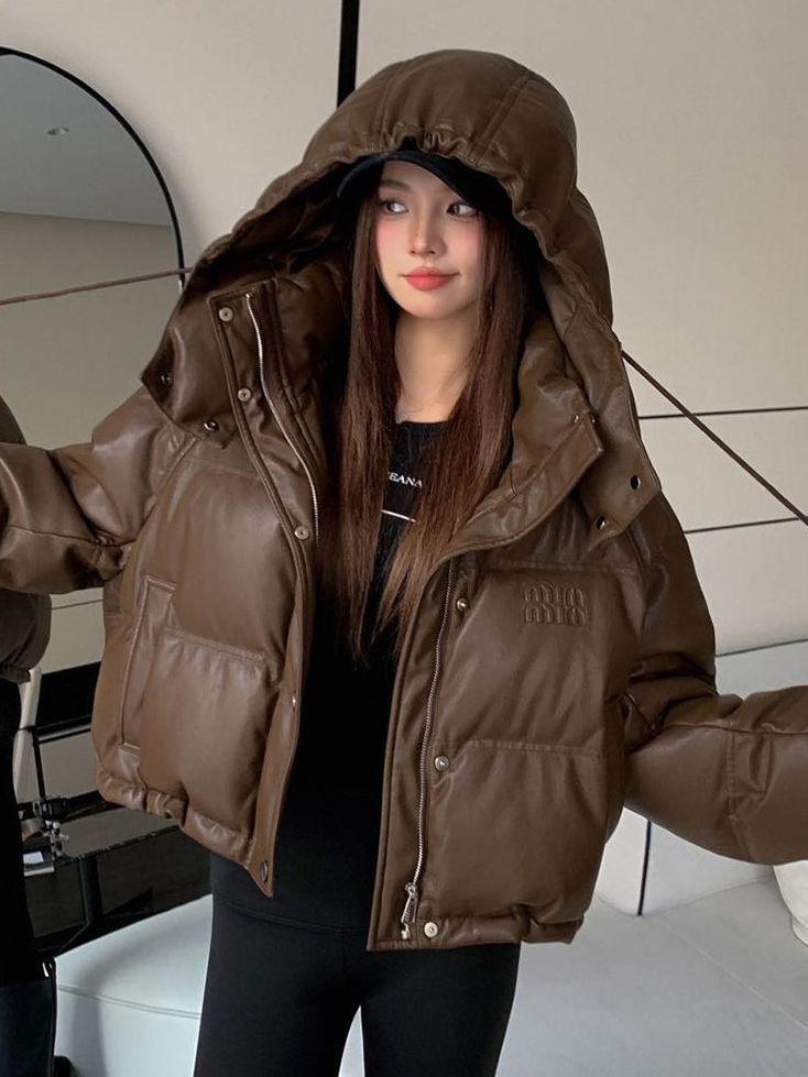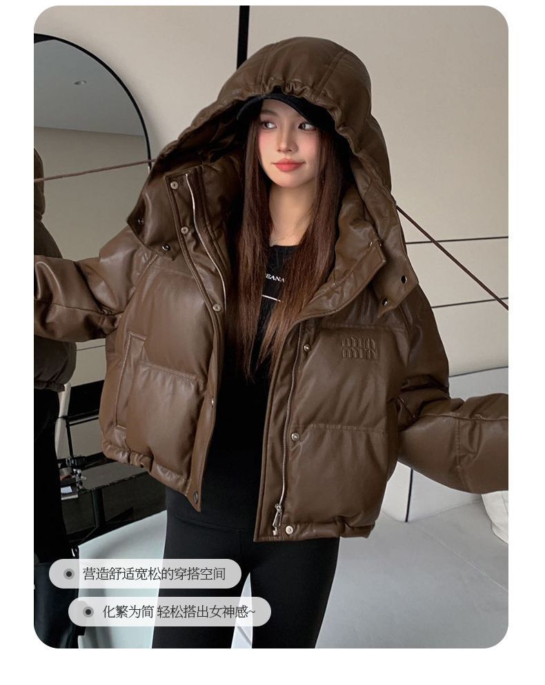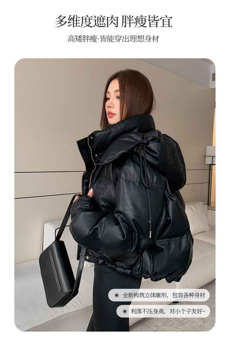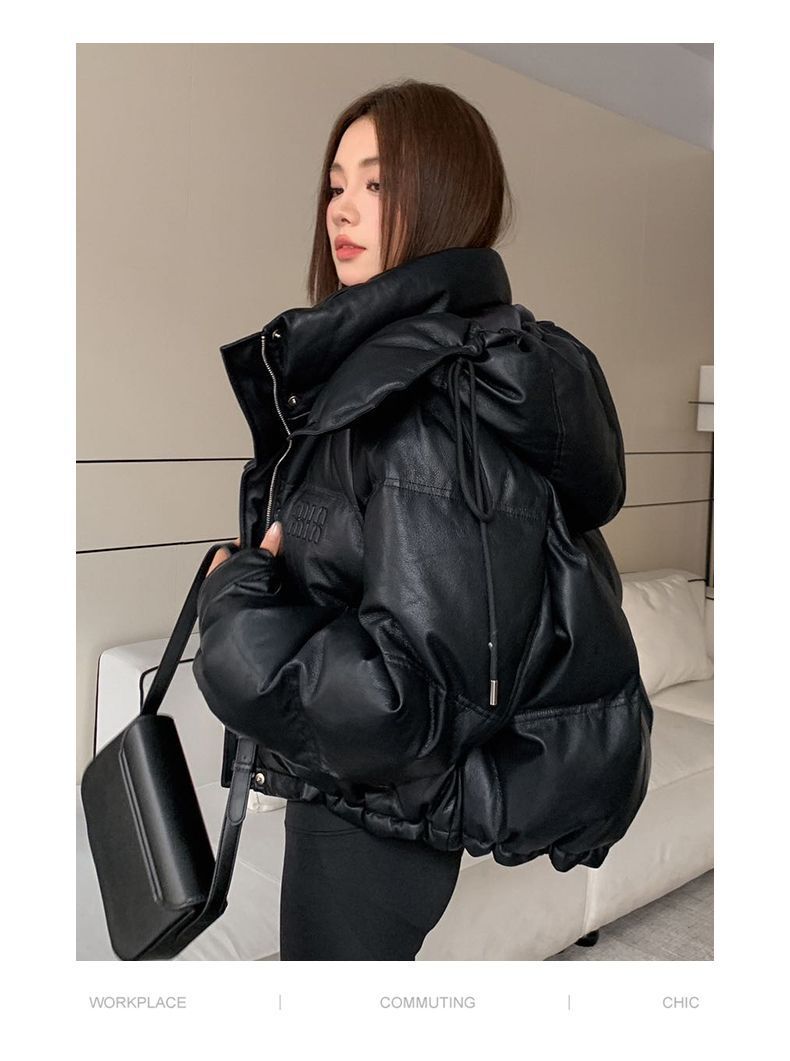 New Loose Fashionable Simple Disposable Hooded Down Cotton Jacket Women 2024 New Leather Short American Casual Commuter Jacket