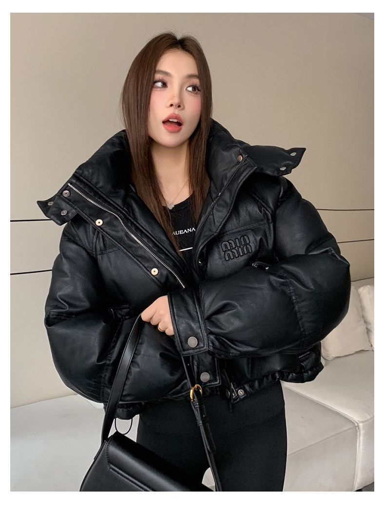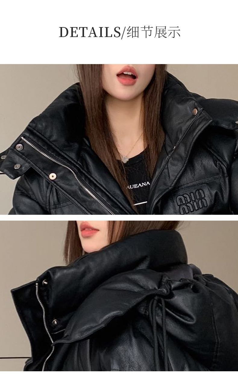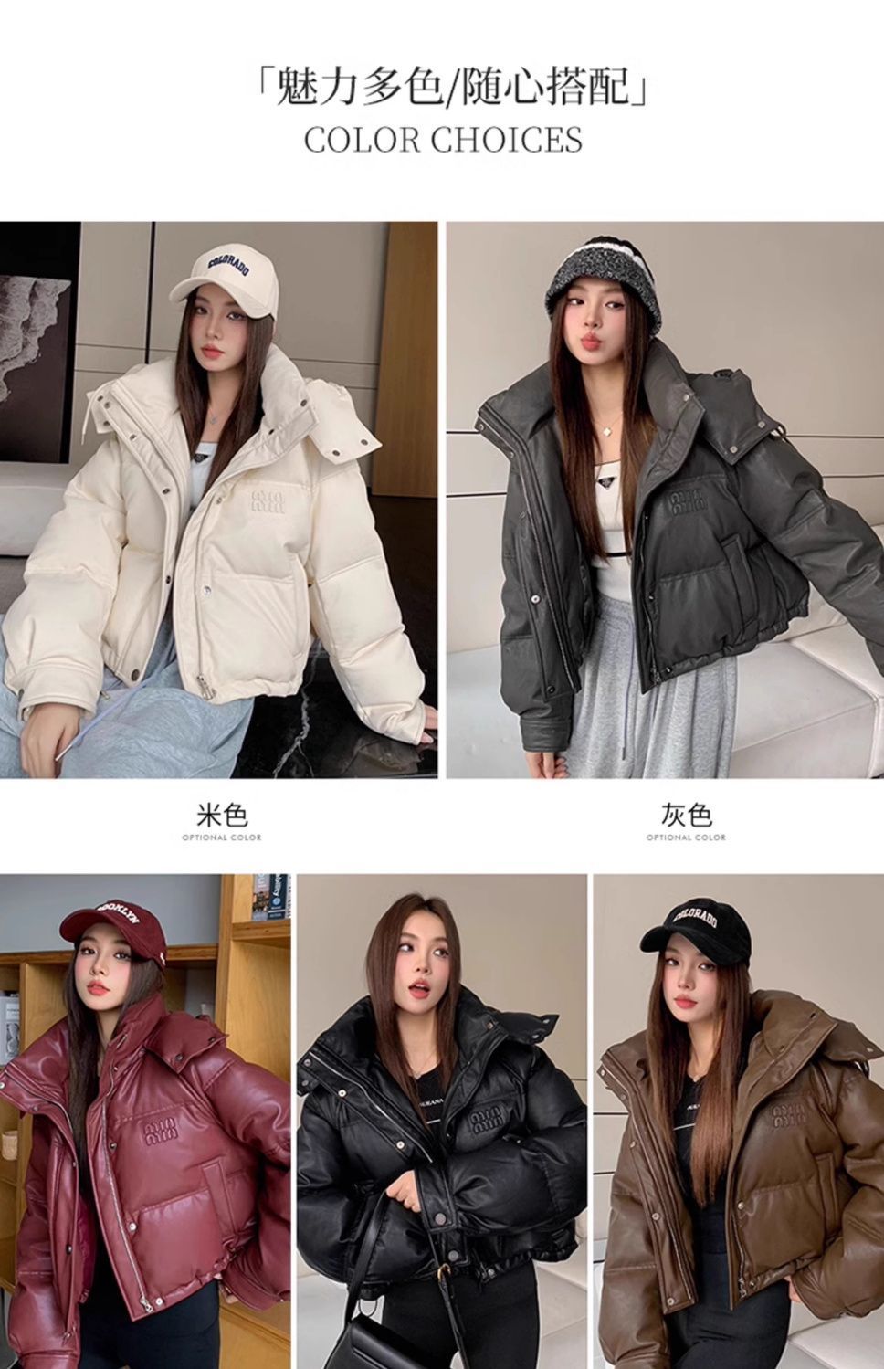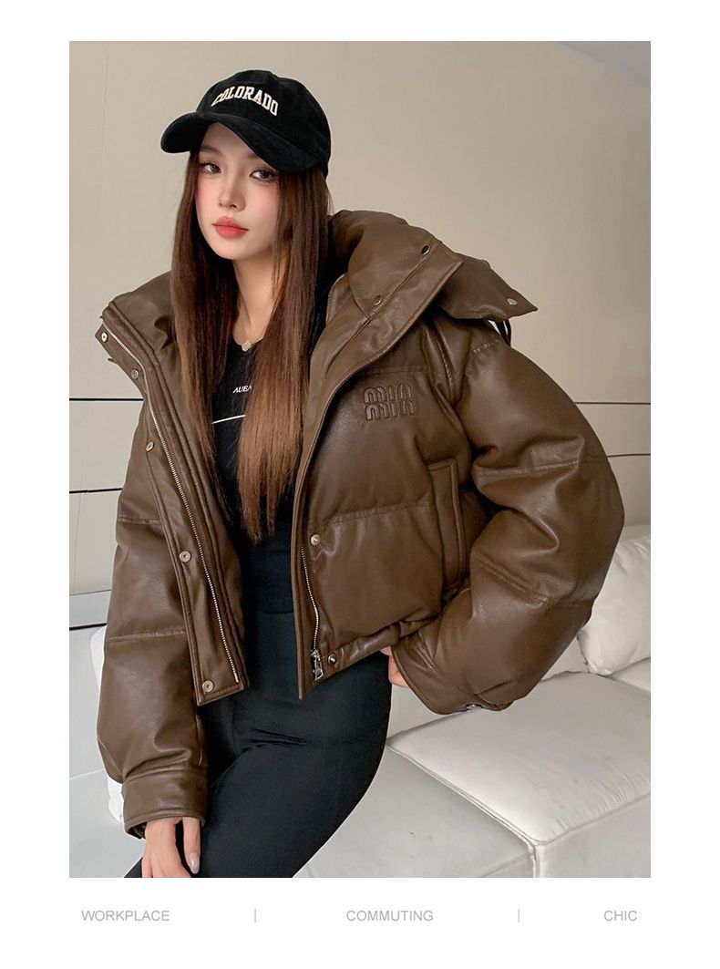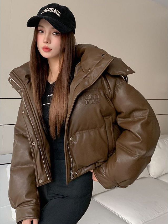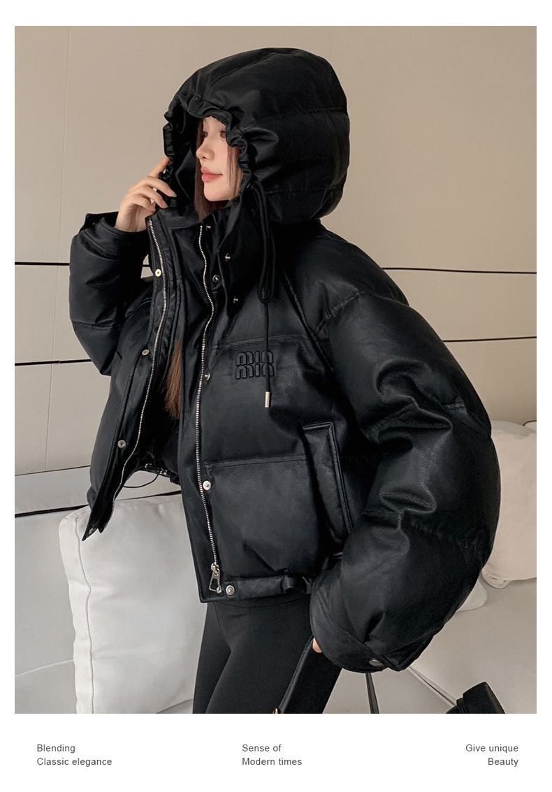 New Loose Fashionable Simple Disposable Hooded Down Cotton Jacket Women 2024 New Leather Short American Casual Commuter Jacket