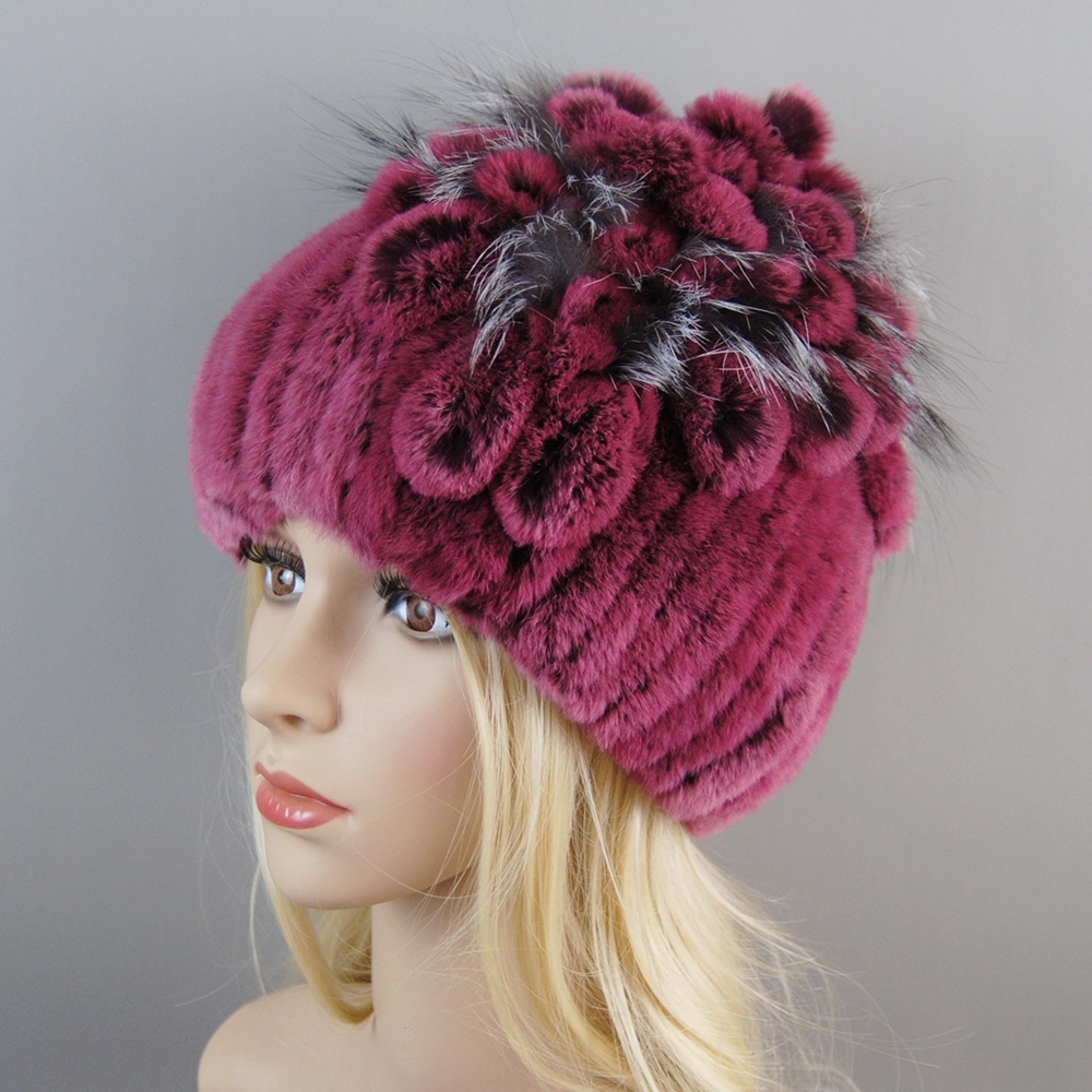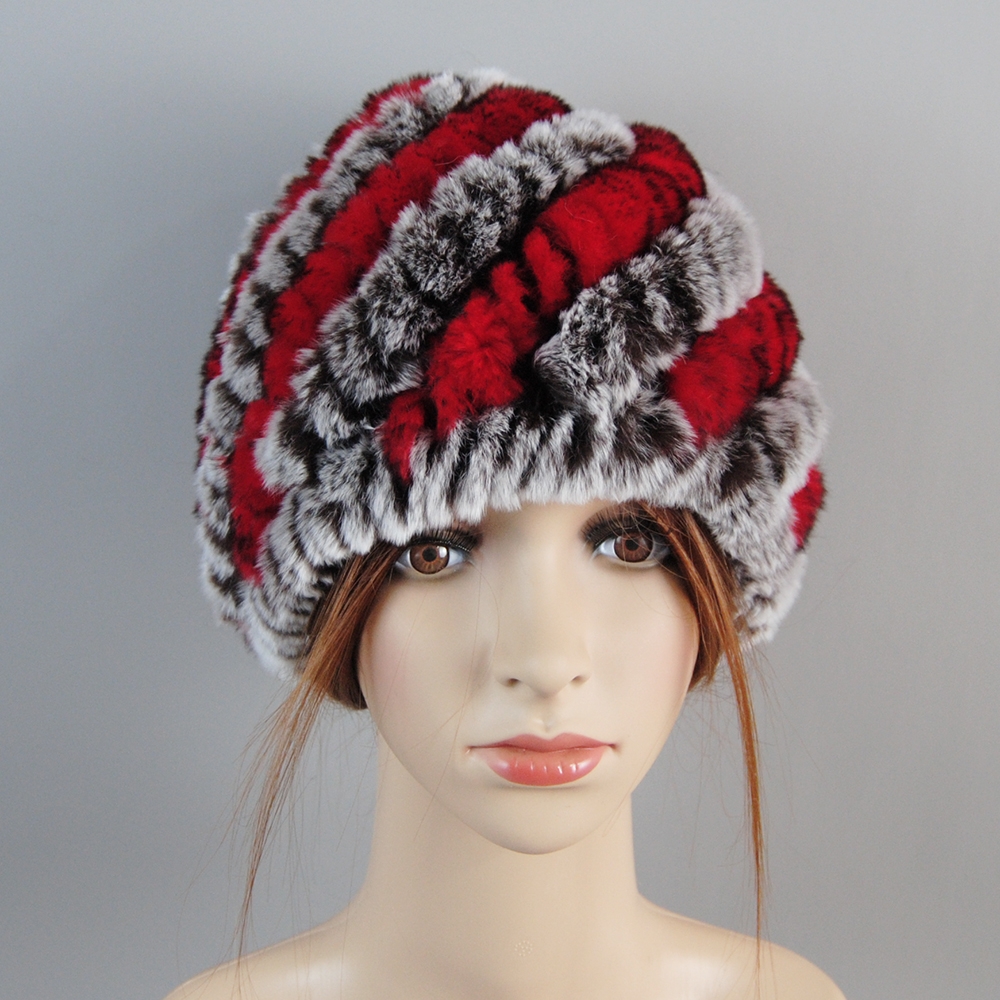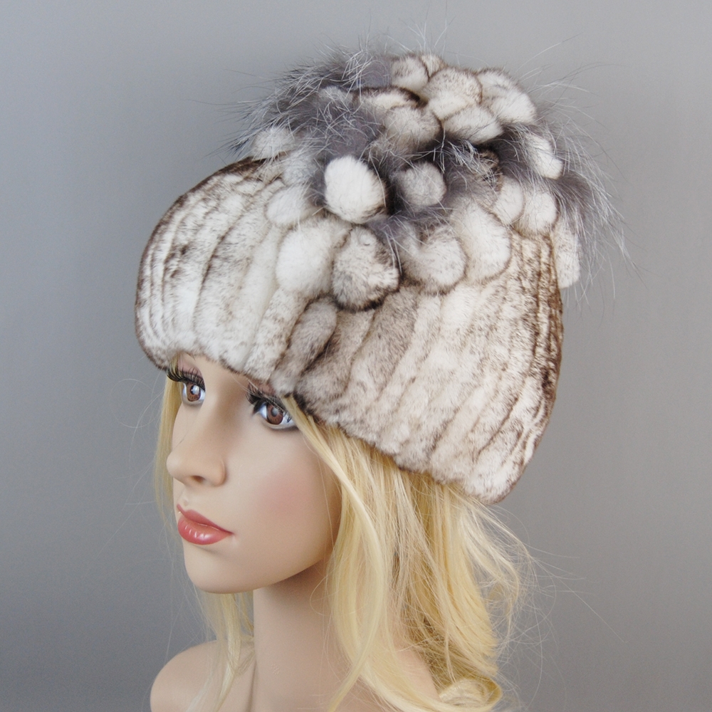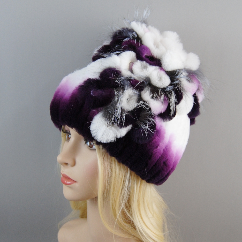 New Luxury Women Fur Hat For Winter Handmade Natural Rex Rabbit Fox Fur Cap Russian Female Fur Headgear Brand Warm Beanies Cap
