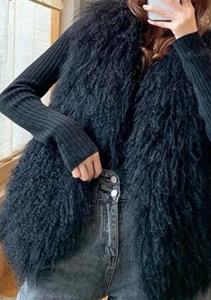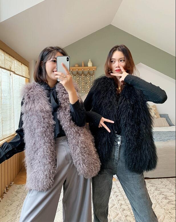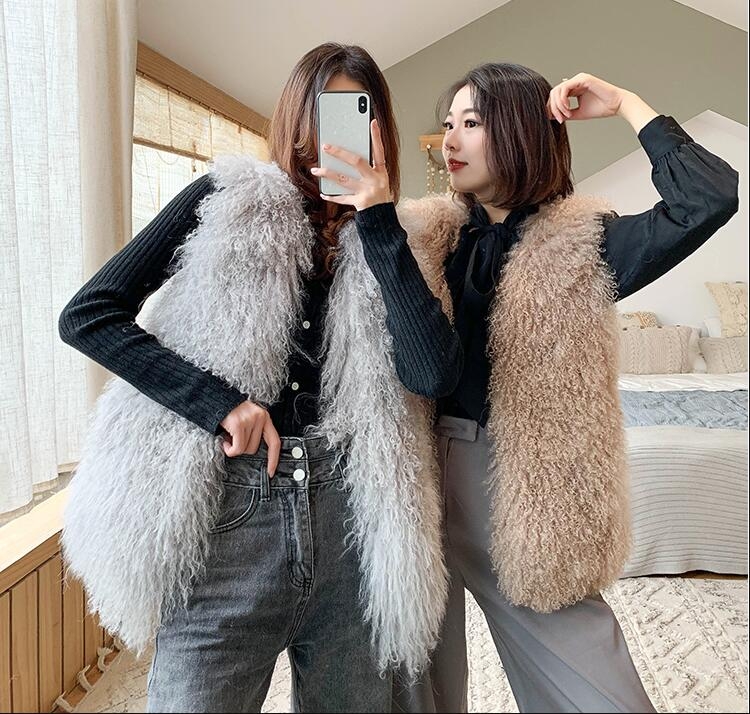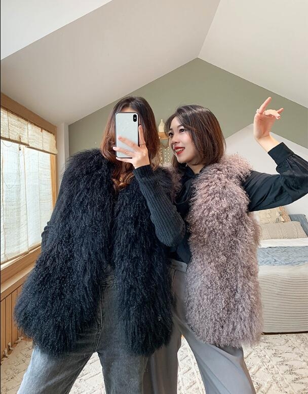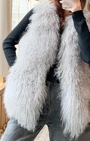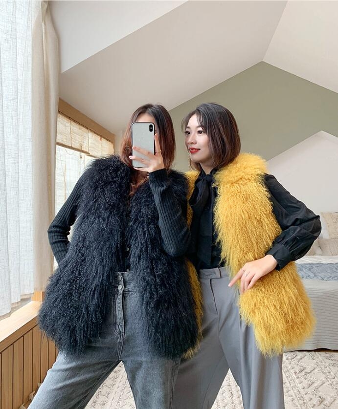 New Real Sheep Fur Vest 100% Natural Mongolia Fur Gilet Pure Long Fur Genuine Fur Oversize Vest ksr801