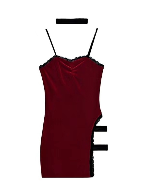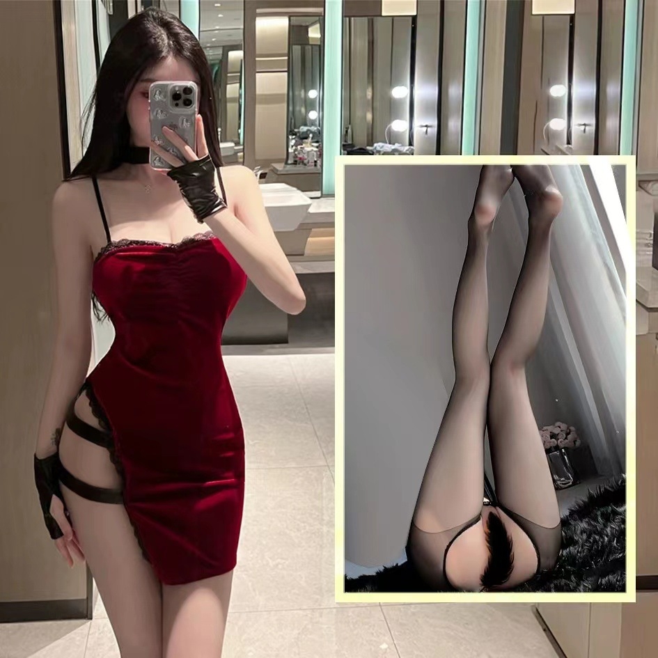 New Sexy Velvet Suspender Dress Women’s Mature Charm Elegant Gentle Hollow Out Passion French Hepburn Style Design Dress F7TM