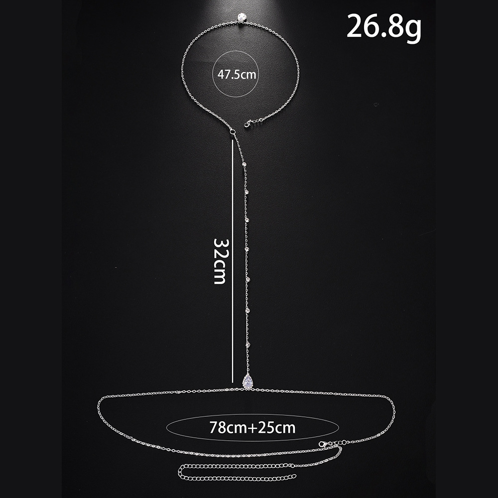 New Star Back Chain Body Jewelry for Women Luxury Metal Water Drop Zircon Backless Necklace Bridal Wedding Dress Jewelry