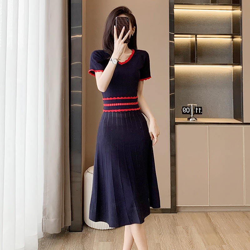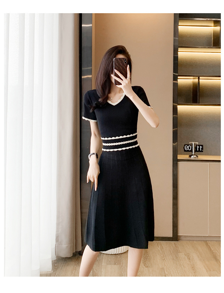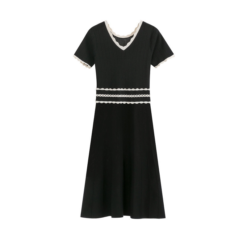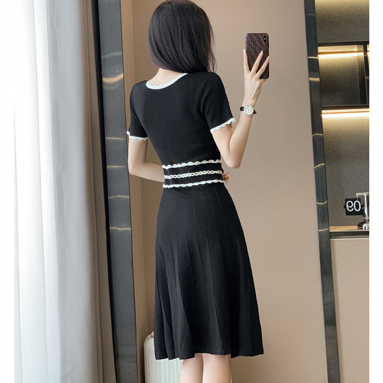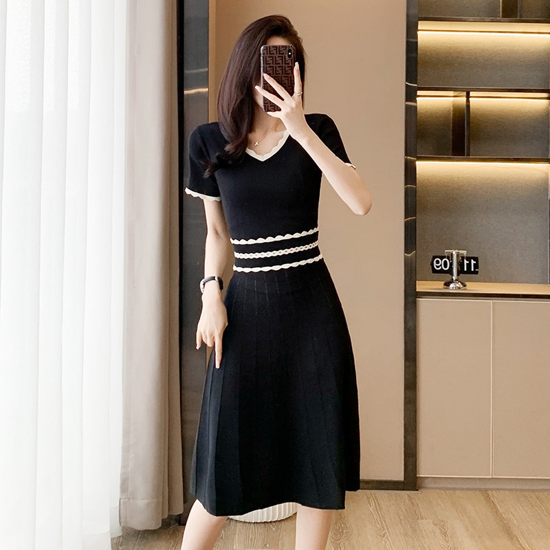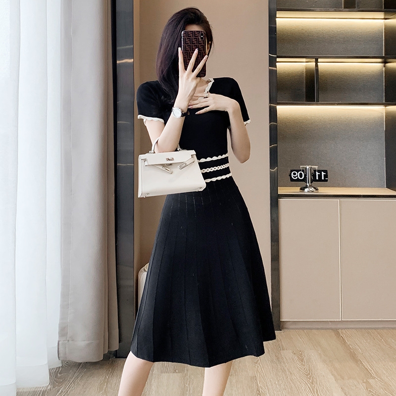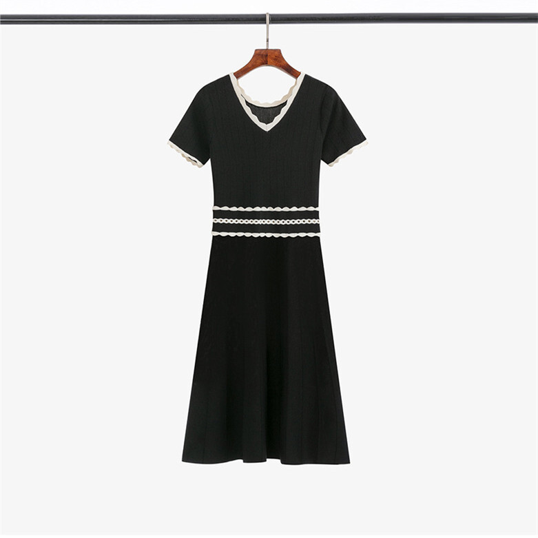 New Summer Women’s Short Sleeve Dress Elegant Fashion Casual Black A-line Skirt