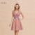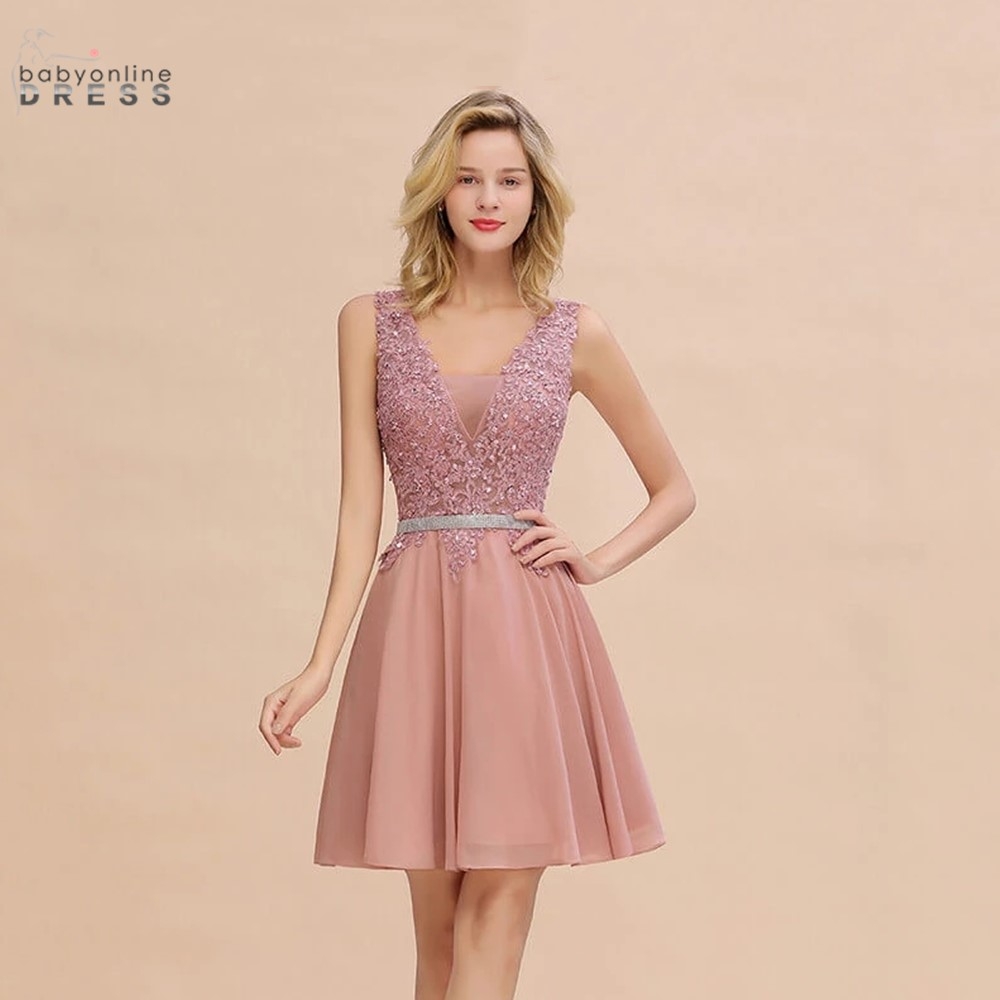Newest Dusty Pink Sequins Lace Cocktail Dresses With Sashes Sexy V neck A Line Chiffon Short Party Gowns For Prom Evening 2025
