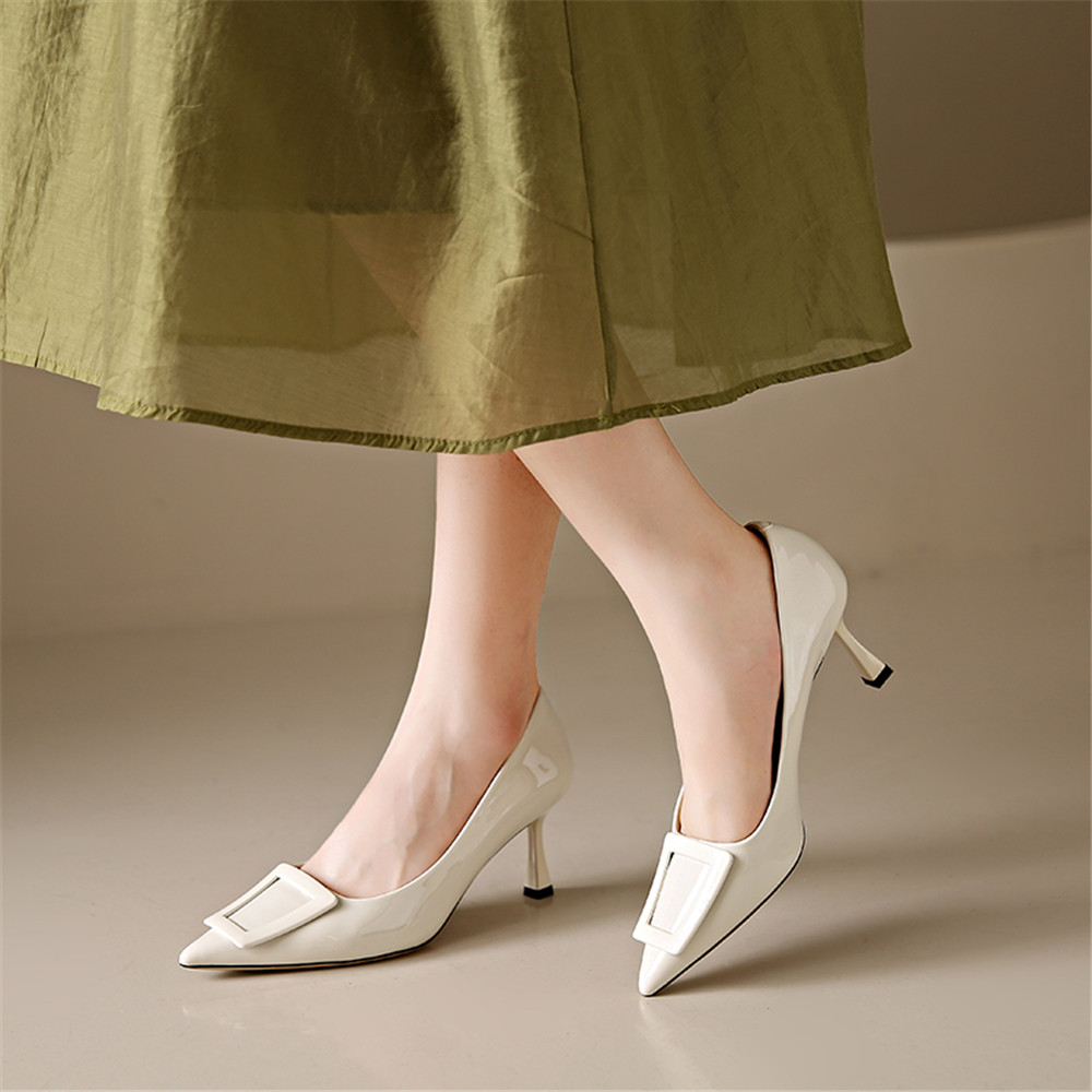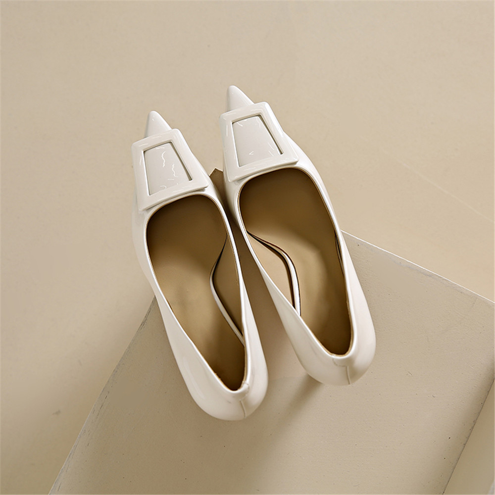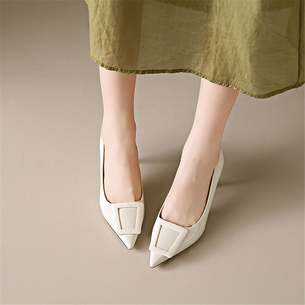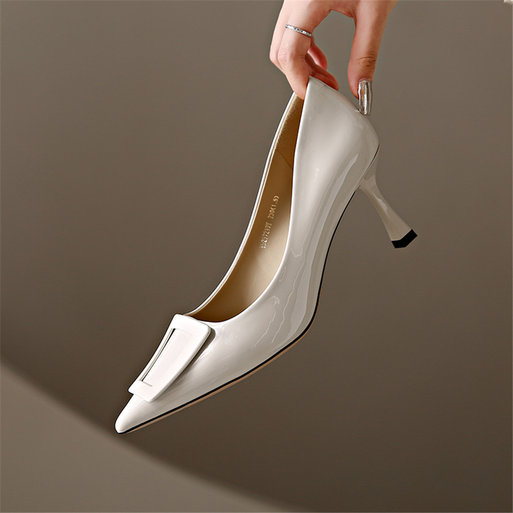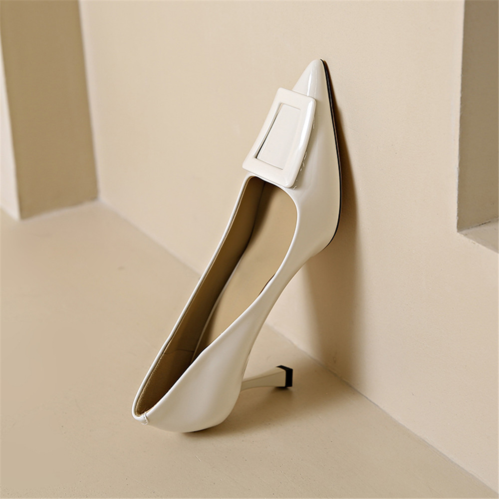Newest Style High Heels Sexy Pumps Women Shoes Metal Buckle Wedding Shoes for Women Bride Shallow Pointed Single Shoes Zaptos