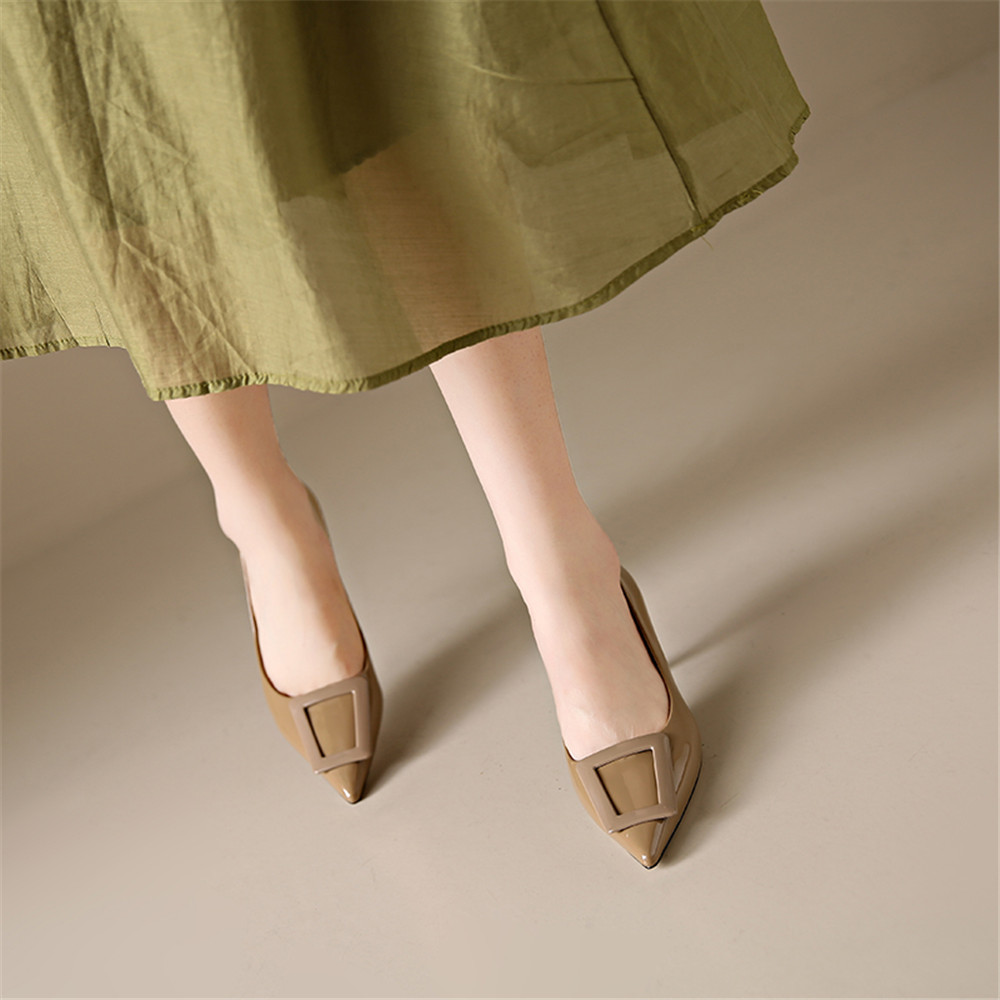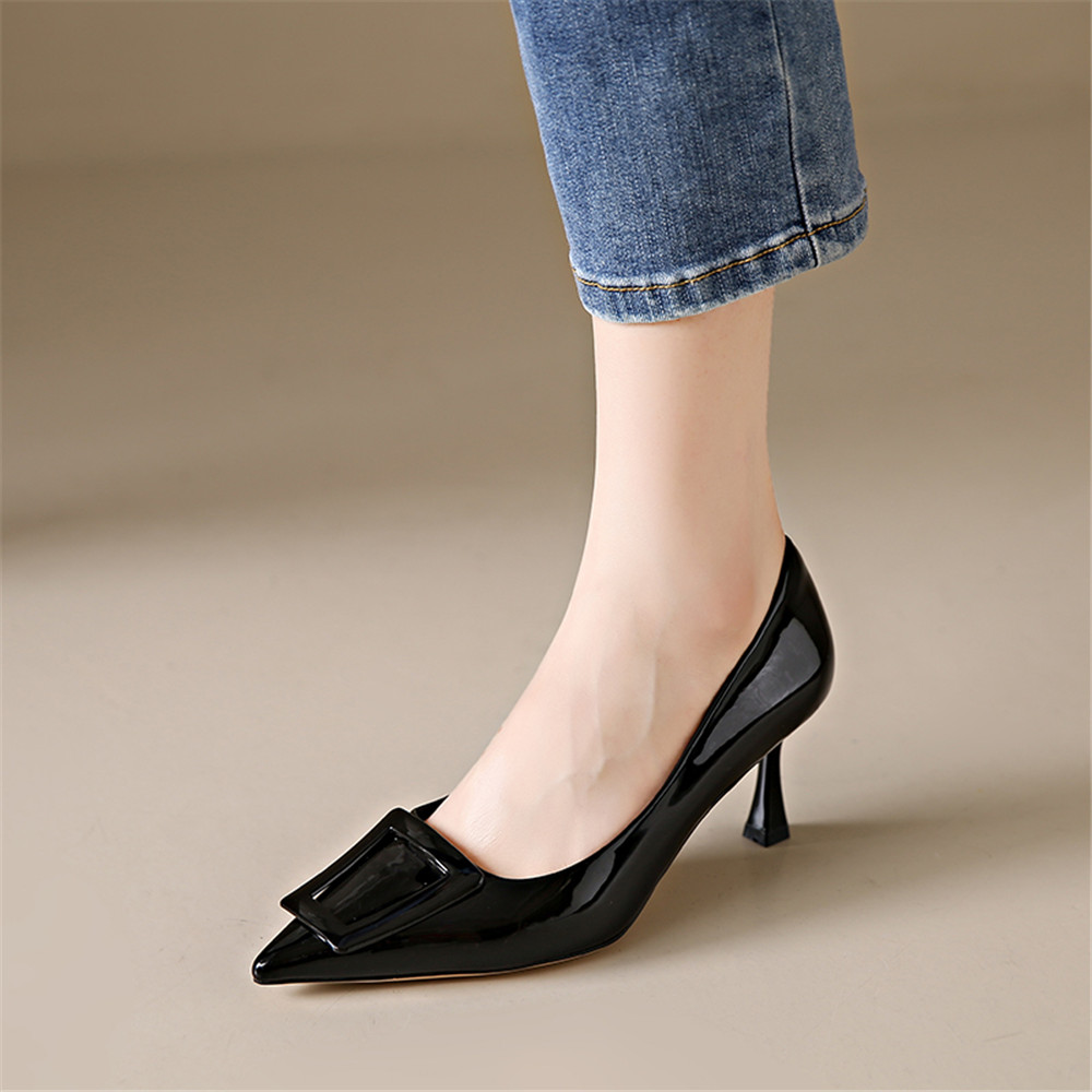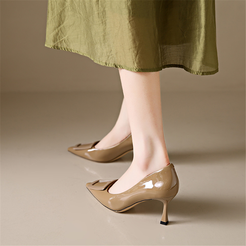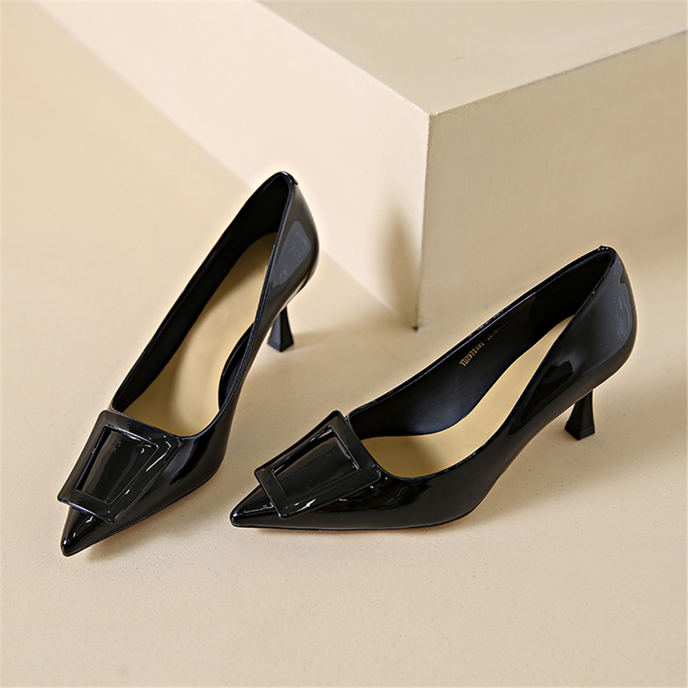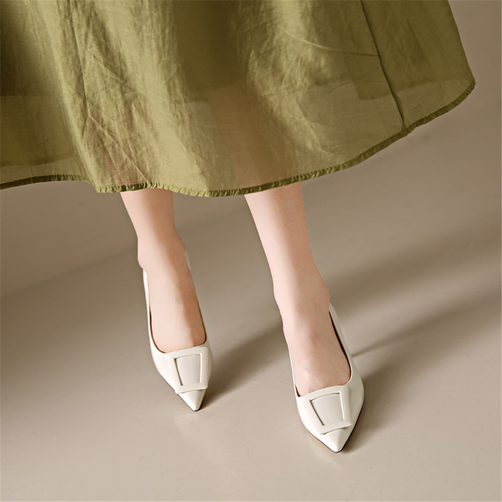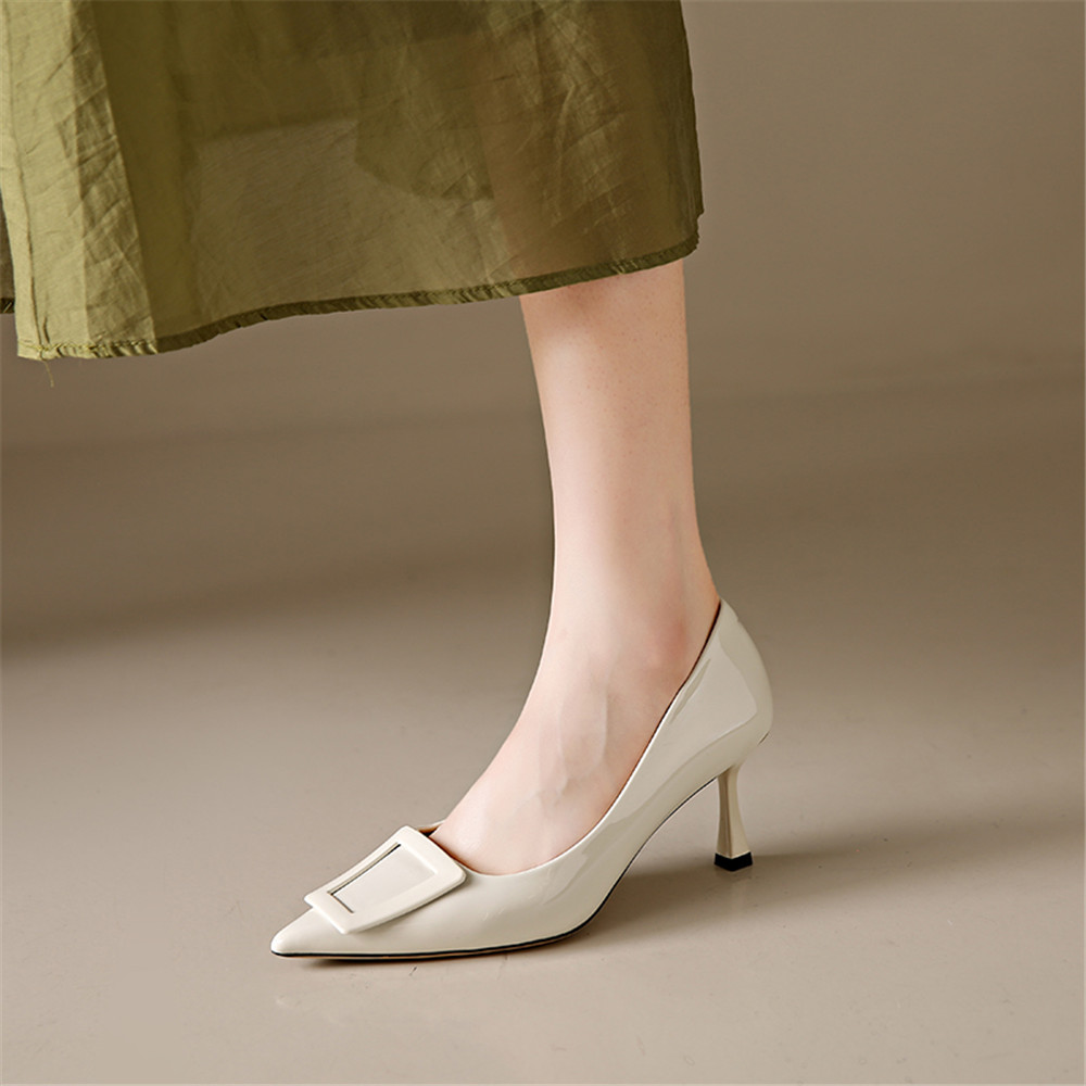 Newest Style High Heels Sexy Pumps Women Shoes Metal Buckle Wedding Shoes for Women Bride Shallow Pointed Single Shoes Zaptos