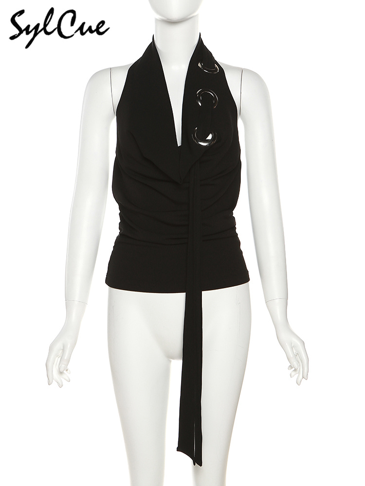 Nibber 2024 Loose Casual All-match Simple Black Sexy Metal Hot Confident Summer Travel Cool Soft Breathable Women’s Halter Vest
