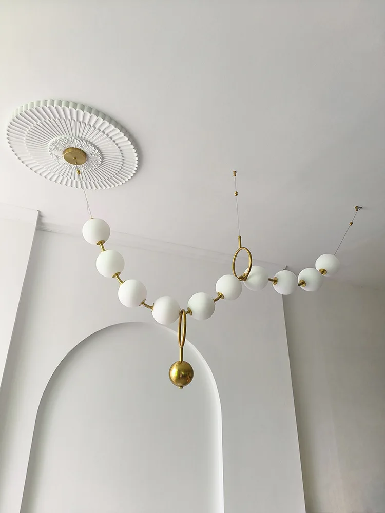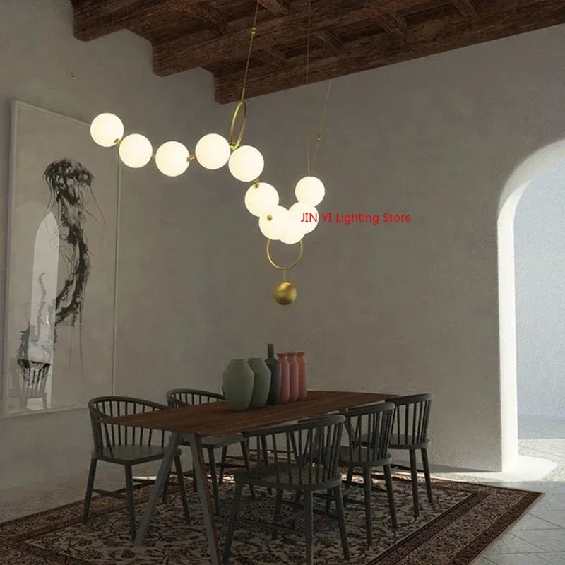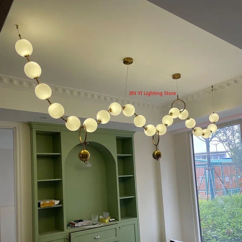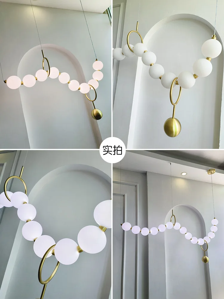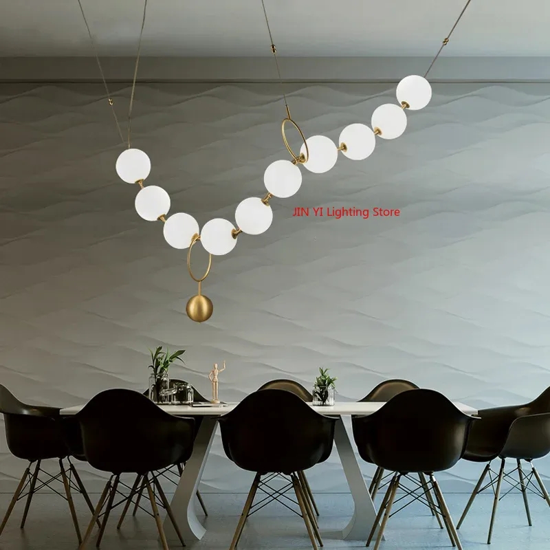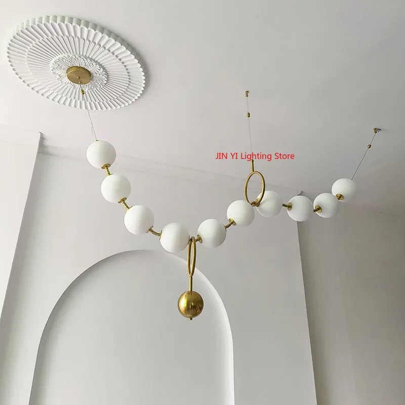 Nordic Luxury Necklace Led Pendant Light For Ceiling Chandelier White Glass Ball Hanging Lamp Glass Lampshade 12cm