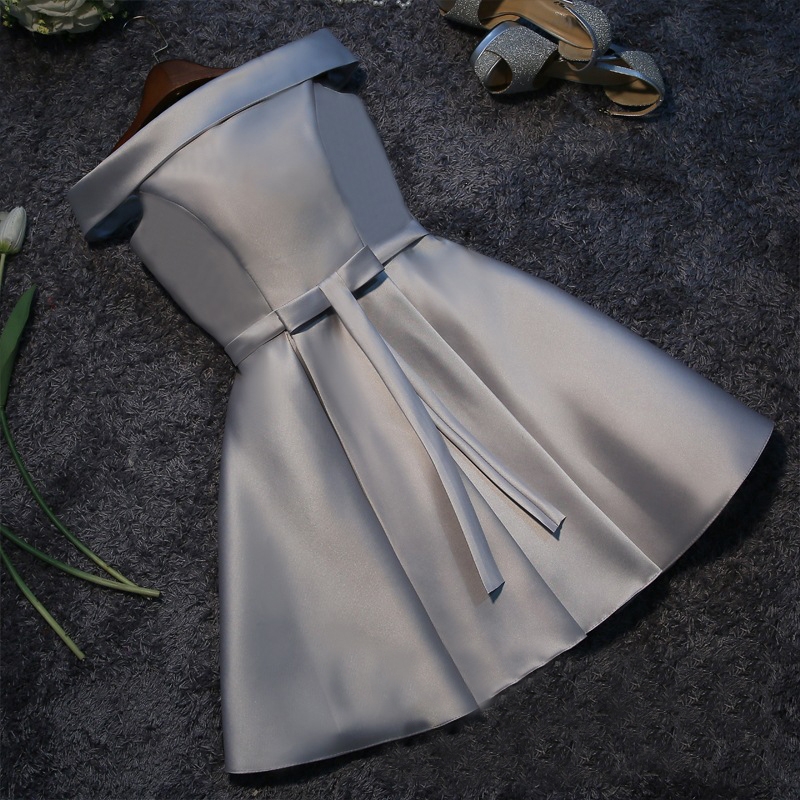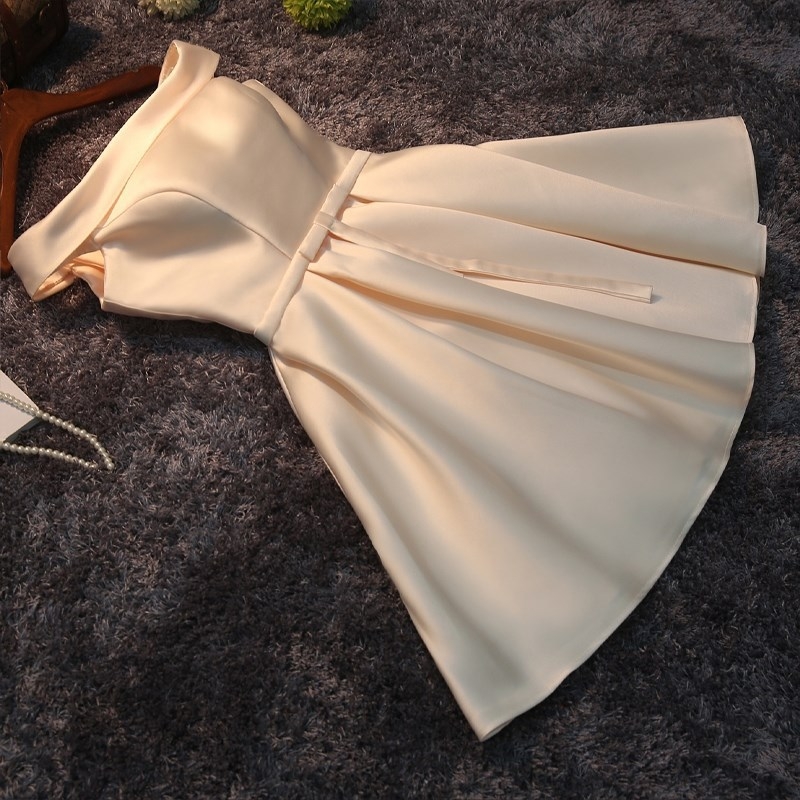2 reviews for Off Shoulder Prom Dresses Short Pink Bridesmaid Dresses Satin Simple Elegant Lace Up Party Graduation Gowns Sweet Cocktail Dress