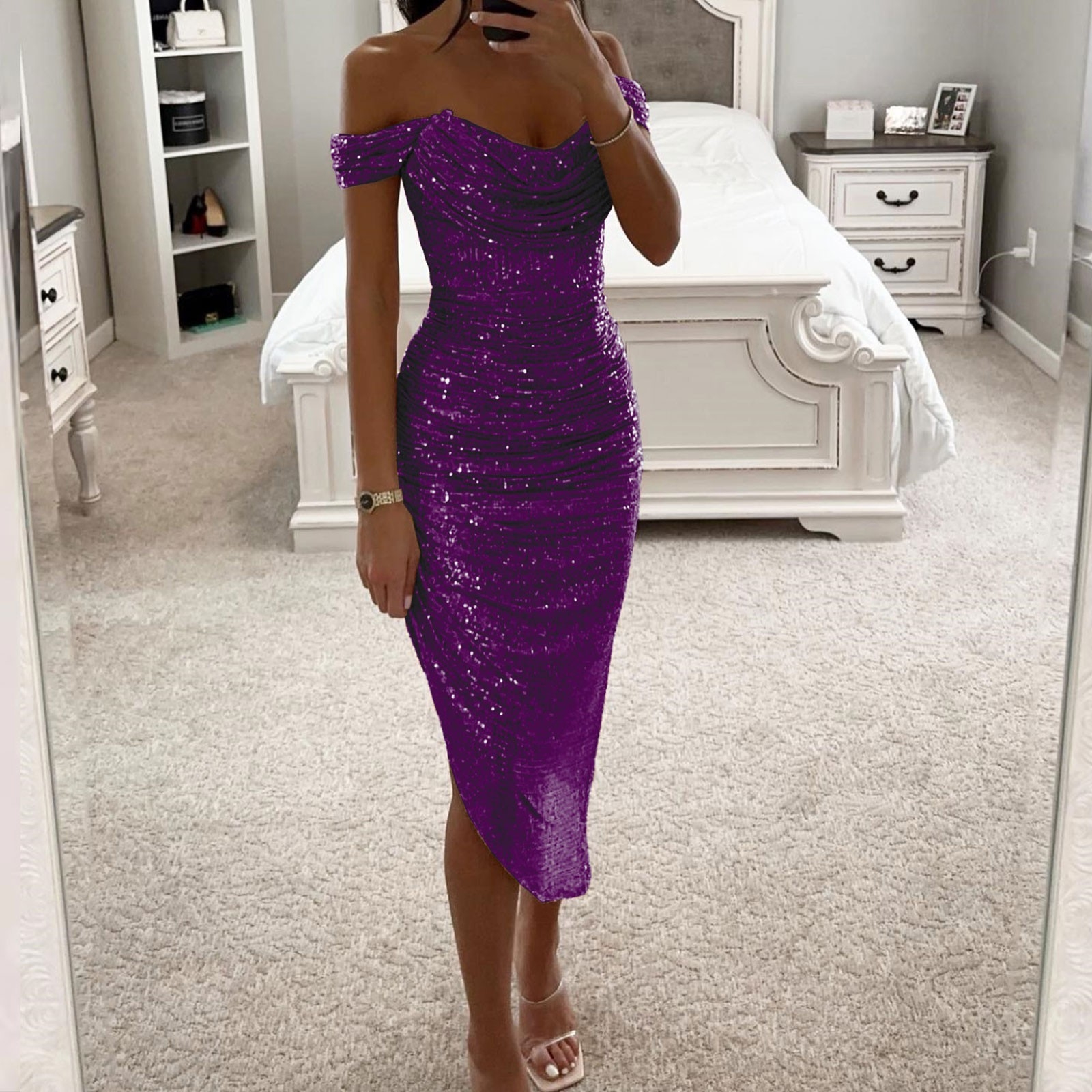 Off Shoulder Sequin Prom Womens’ Dresses Sparkly Midi Evening Party Dress Cowl Neck Homecoming Dress Cocktail Party Dresses