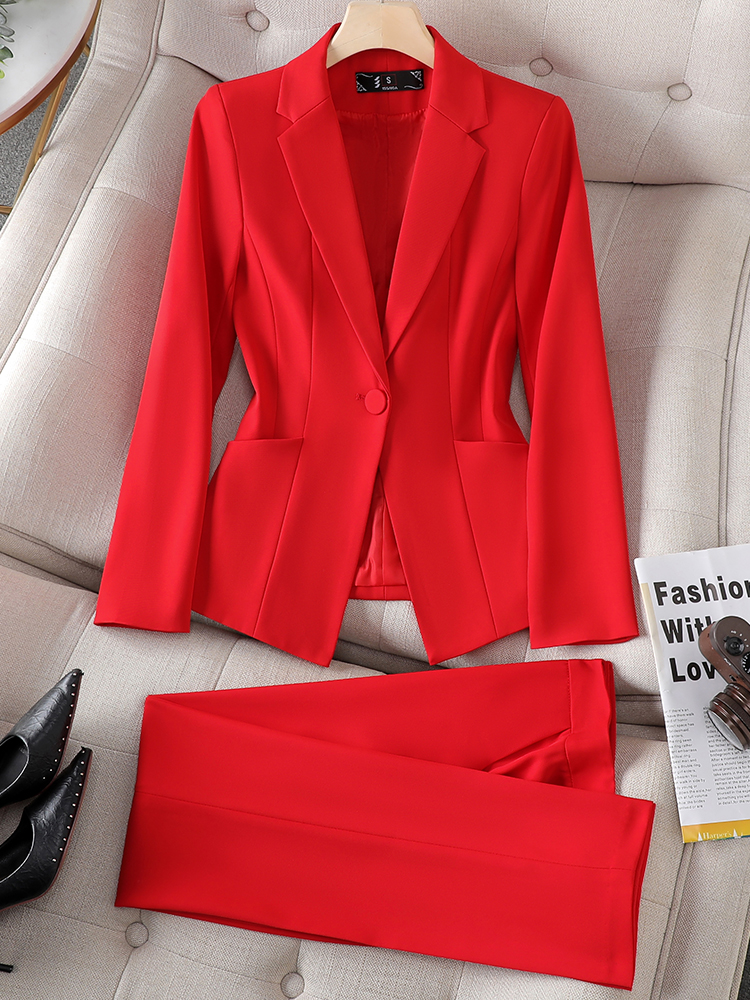 Office Ladies Formal Blazer And Pant Suit Women Female Red Black Navy Jacket Trouser Business Work Wear 2 Piece Set