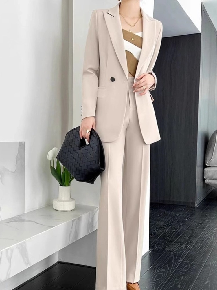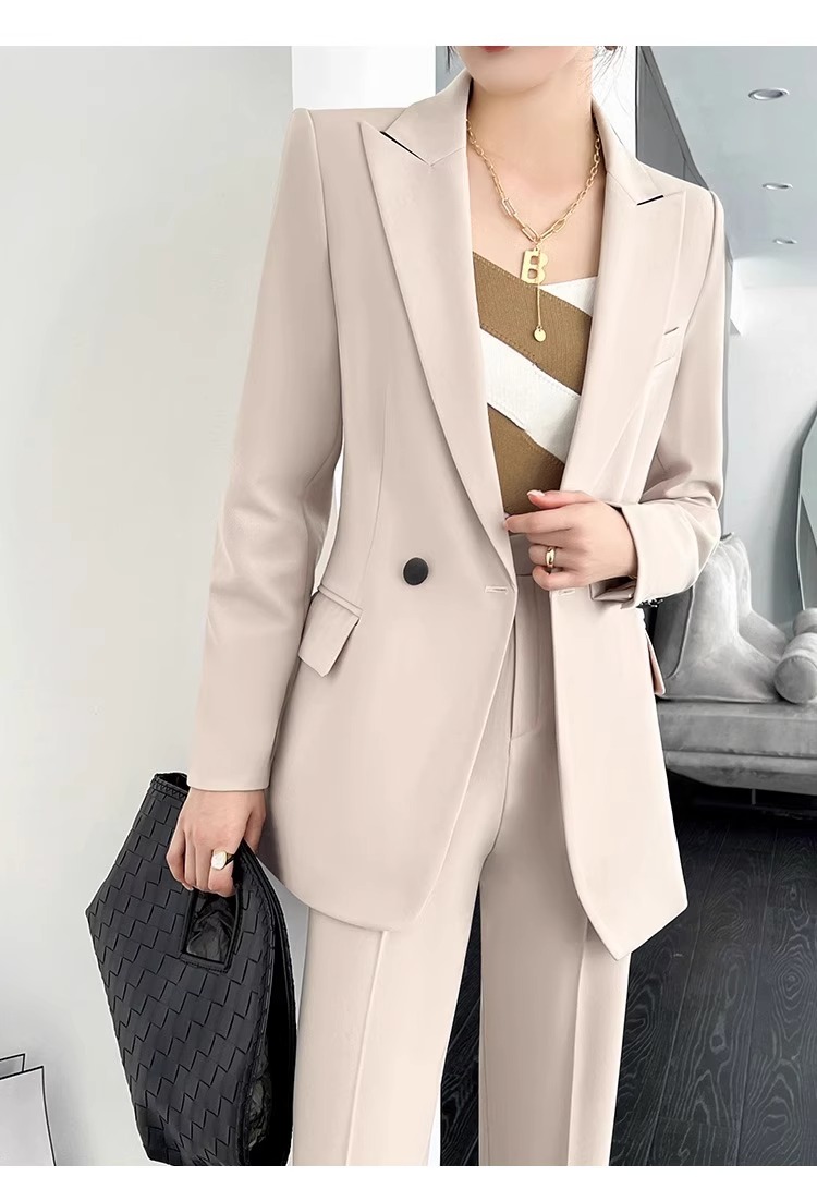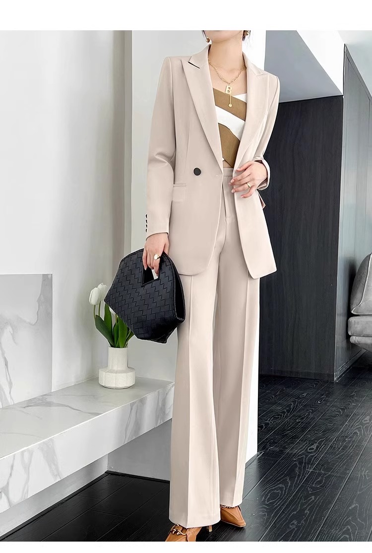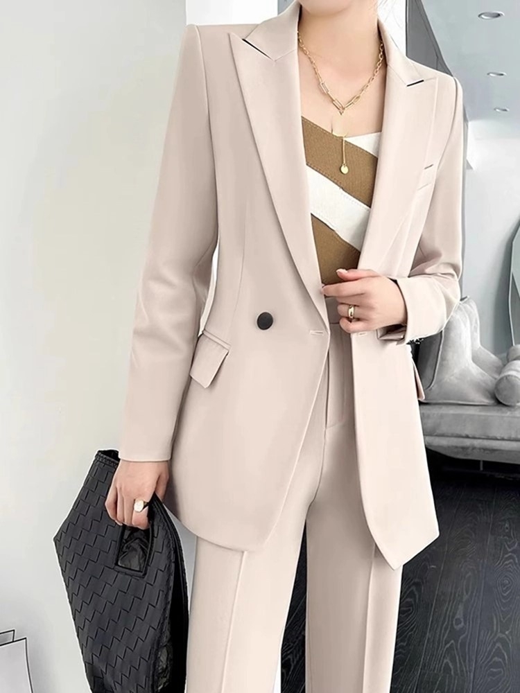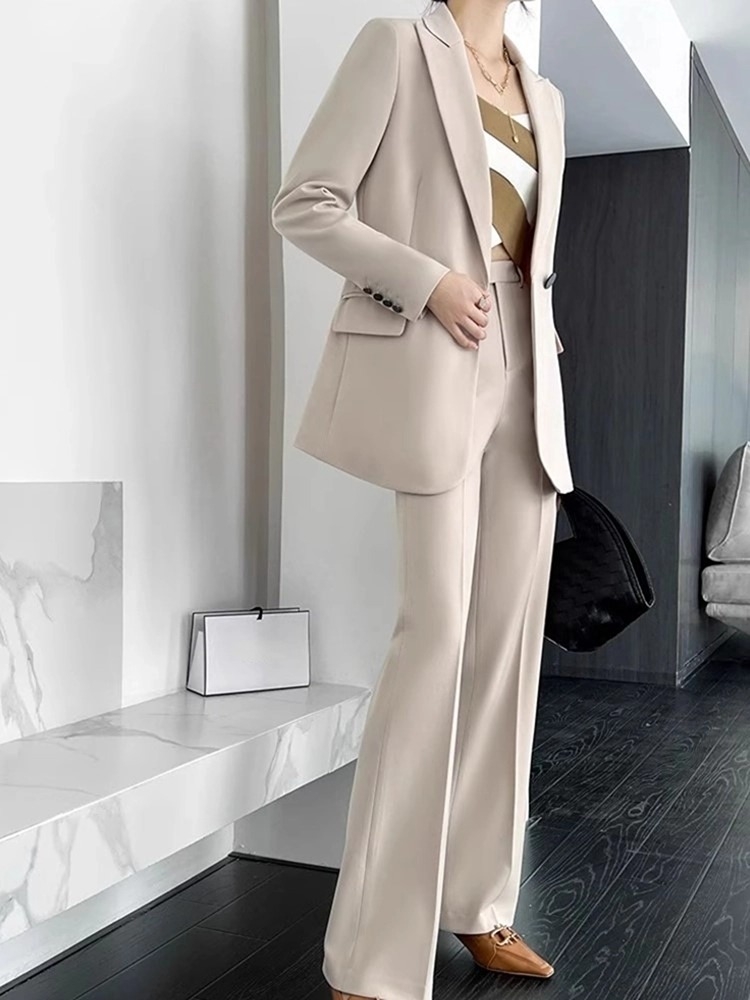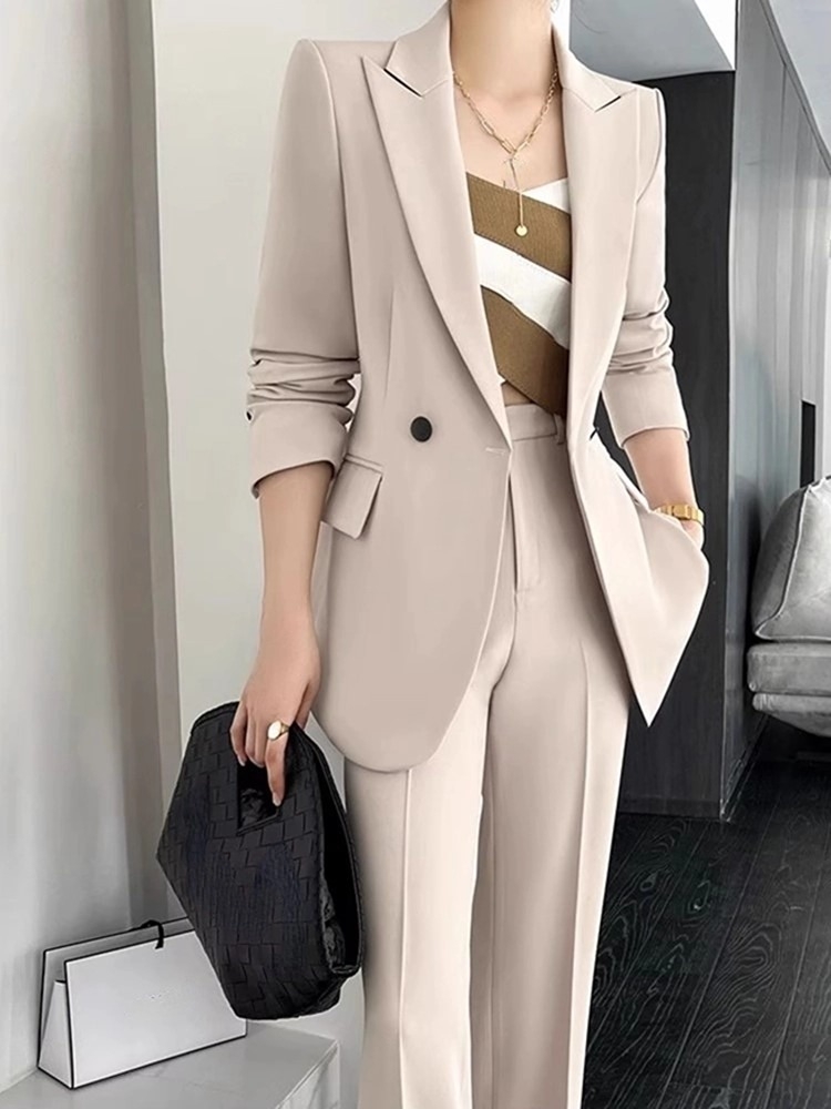 Office Ladies Formal Business Trousers Suit Women Elegant Casual Blazer Jackets Straight Pants Two Pieces Set Female Clothes New
