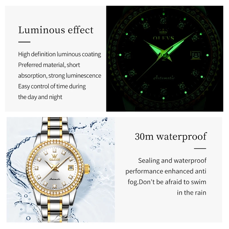 Olevs 7003 mechanical fashion watch stainless steel watchband round-dial wristwatch calendar luminous woman Watch Automatic
