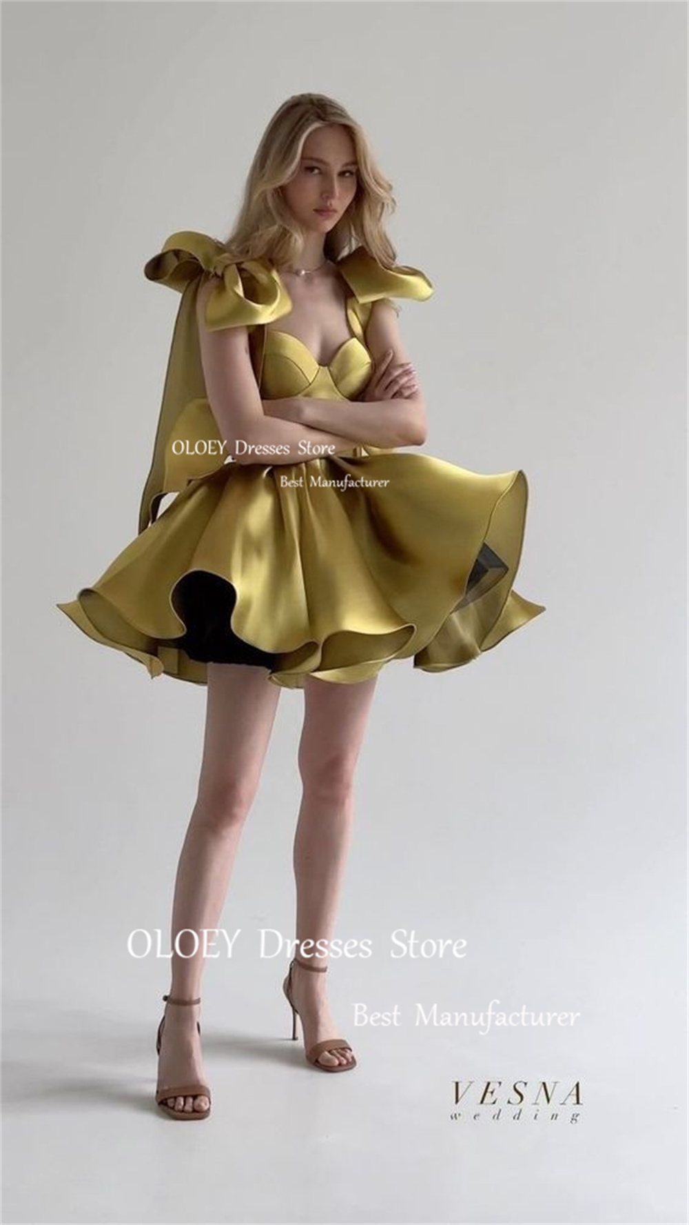 OLOEY Sexy Sweetheart Mini Prom Cocktail Dresses Ribbon Bow Sleeves Pleated Satin Evening Dress Customized Wedding Party Dress