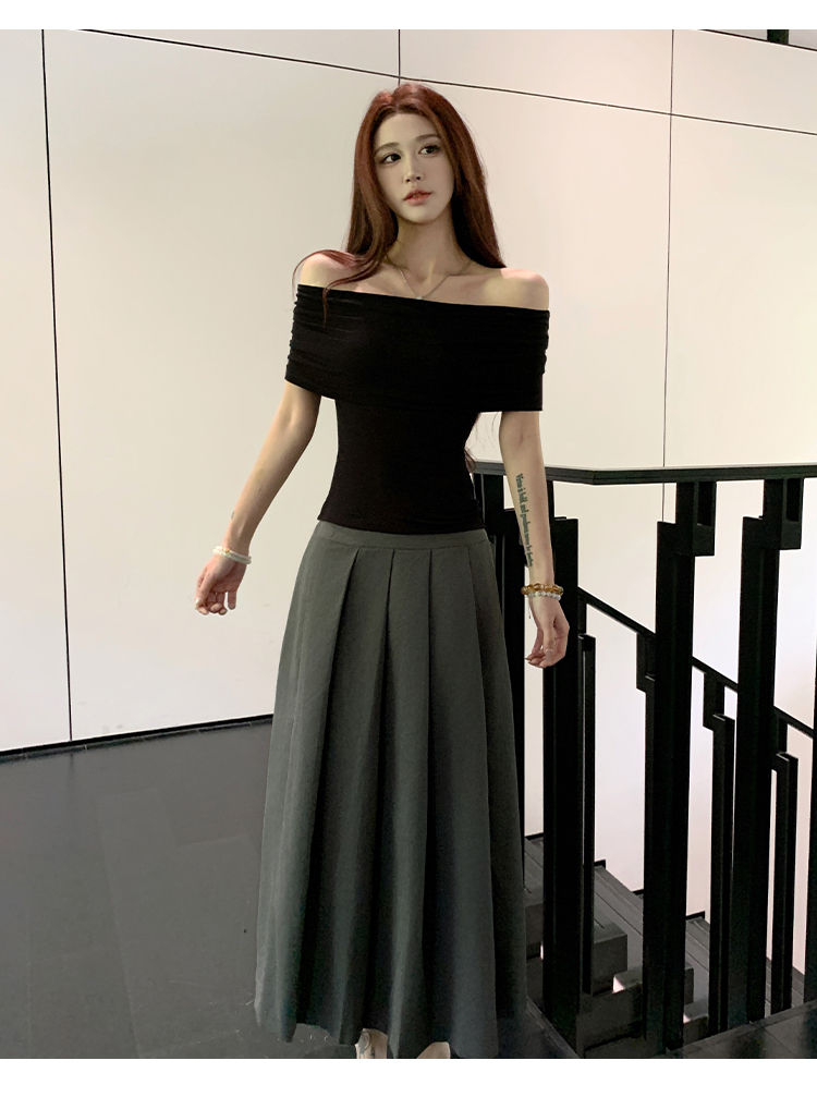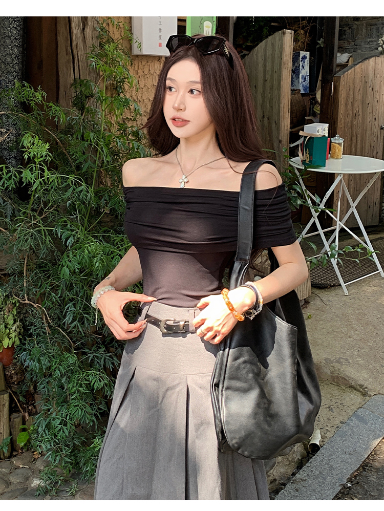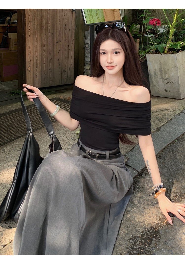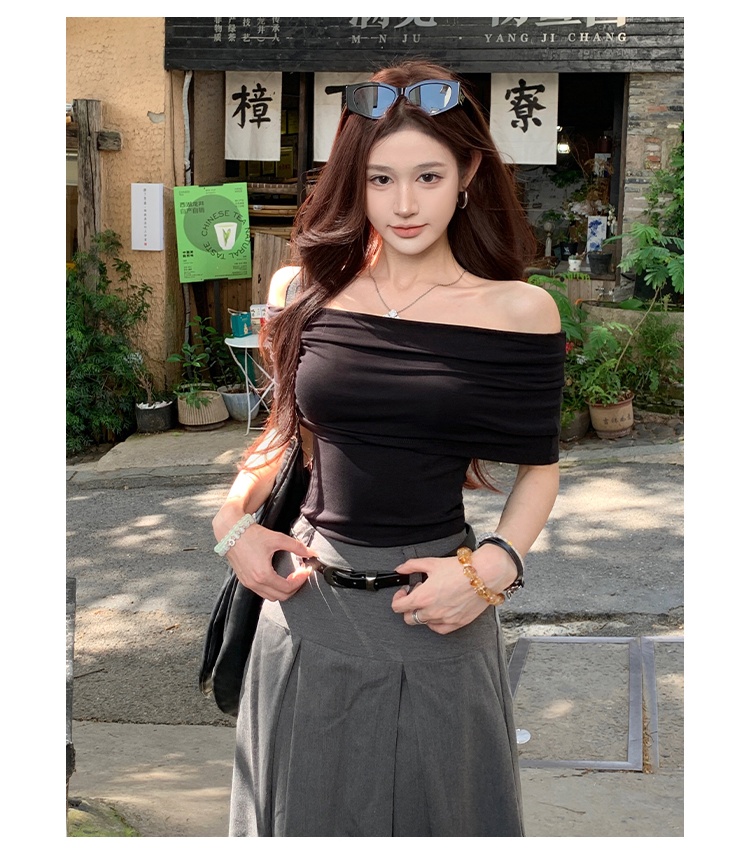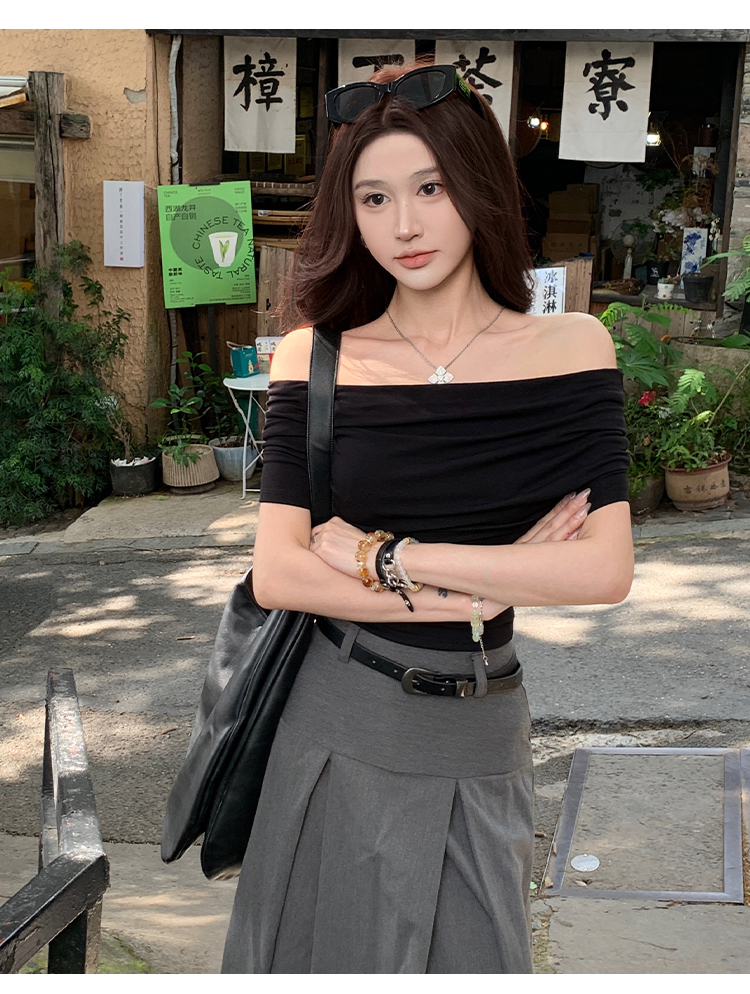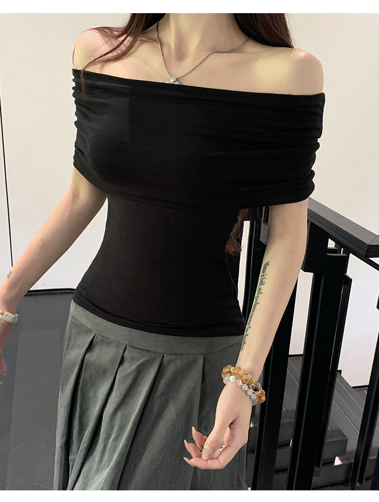 One Shoulder Tops Women Premium Black Short Sleeve Strapless Niche Design French Strapless Unique Beautiful