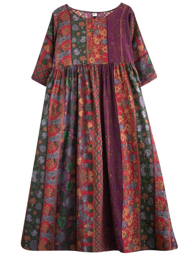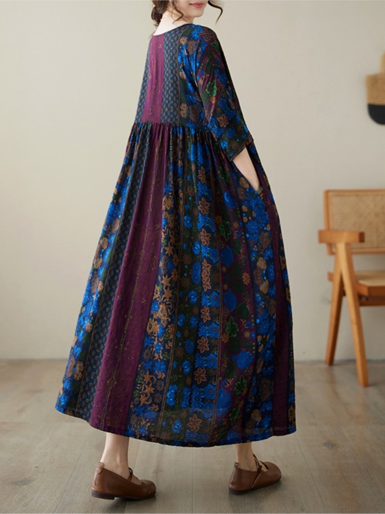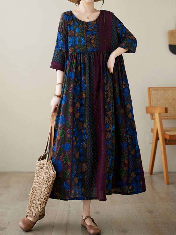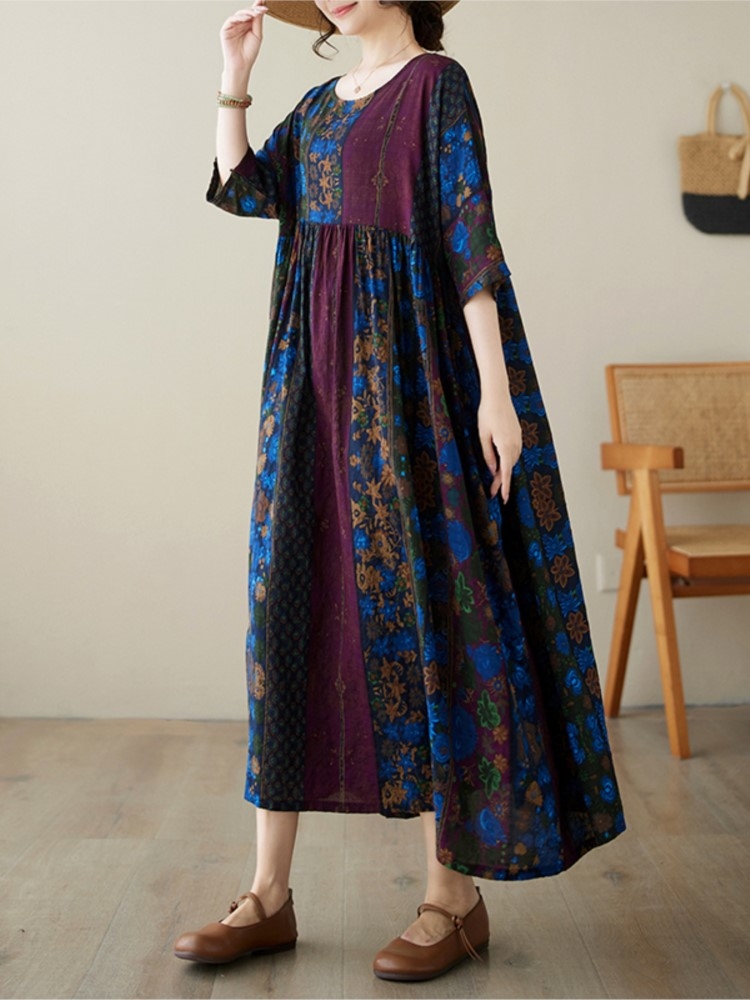 Oversized Summer Midi Dress Women Flower Floral Print Fashion Loose Ruffle Ladies Dresses Pleated Casual A-Line Woman Dress