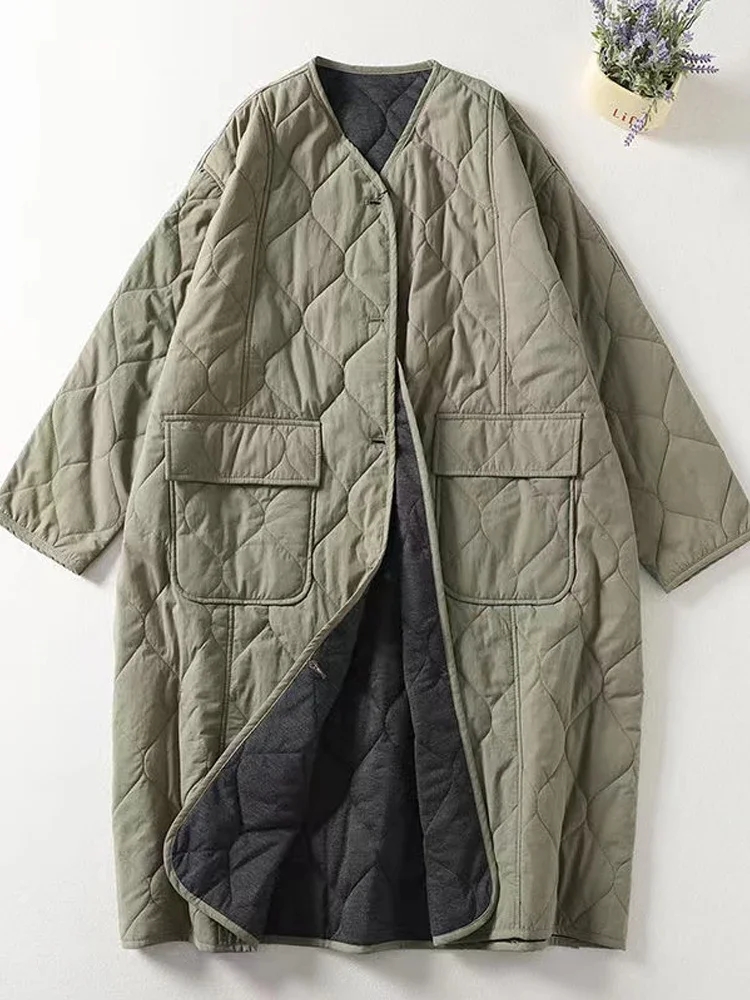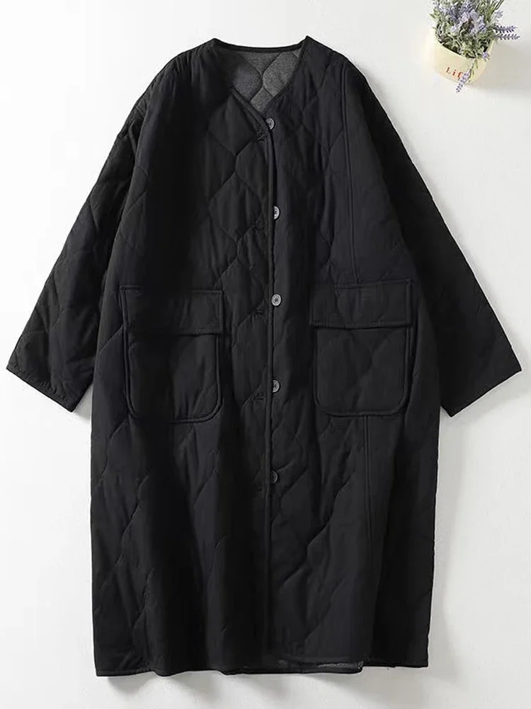 Oversized Women Parkas 2024 New Collarless Long Sleeve Single-breasted Ladies Winter Coat Casual Thick Warm Outerwear Overcoat
