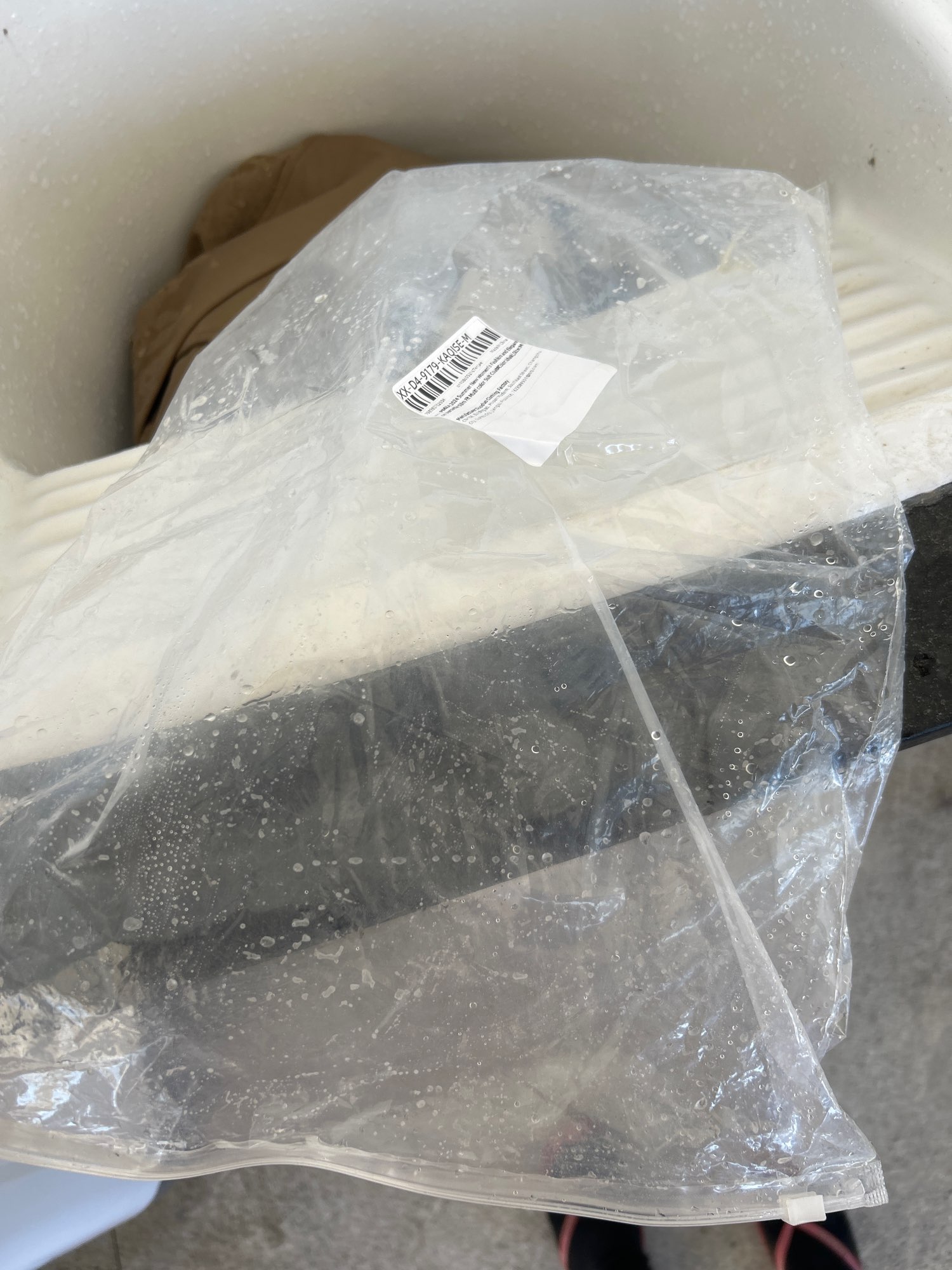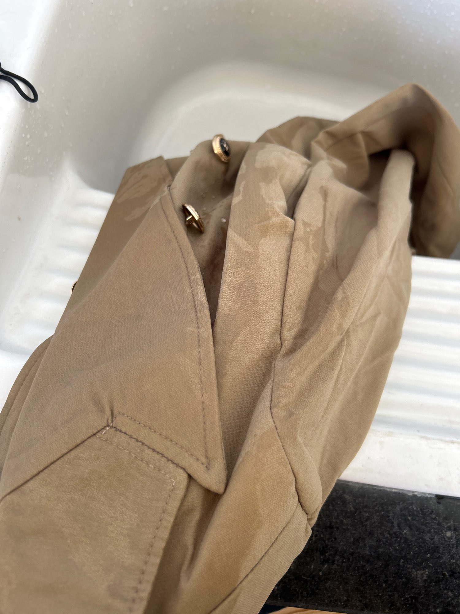 Simplesmente chegou todo molhado de um líquido que não sei dizer o que é, fedendo