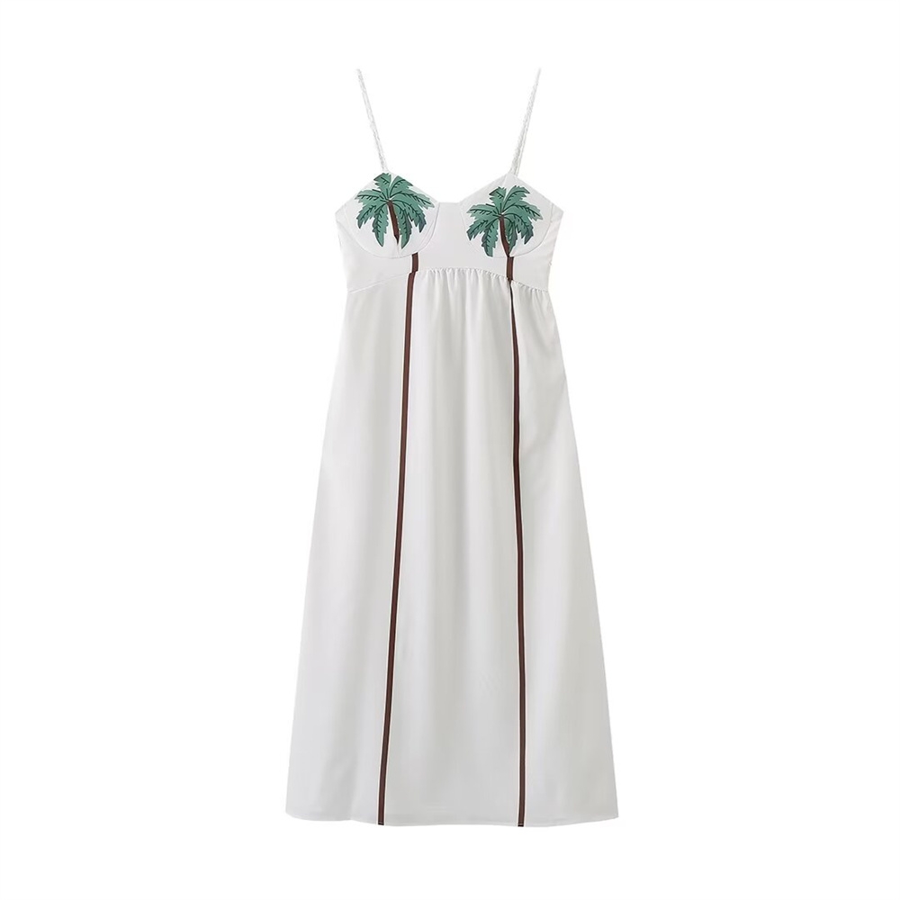 PB&ZA2024 Summer New Product Casual Women’s Fashion Solid Color Positioning Printed strapless backless camisole dress
