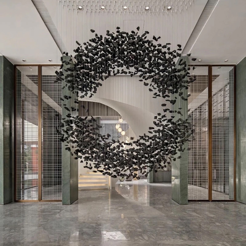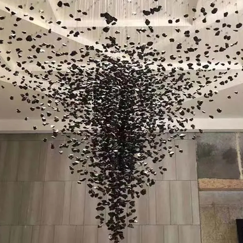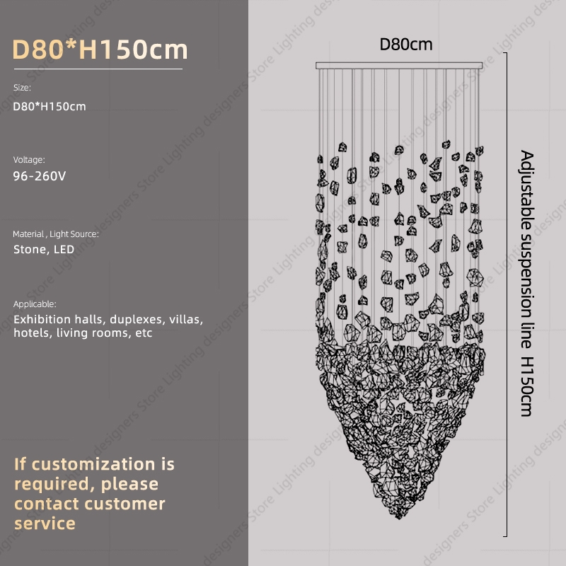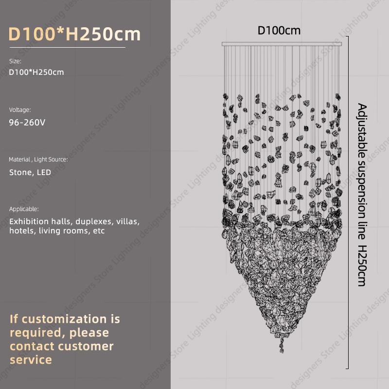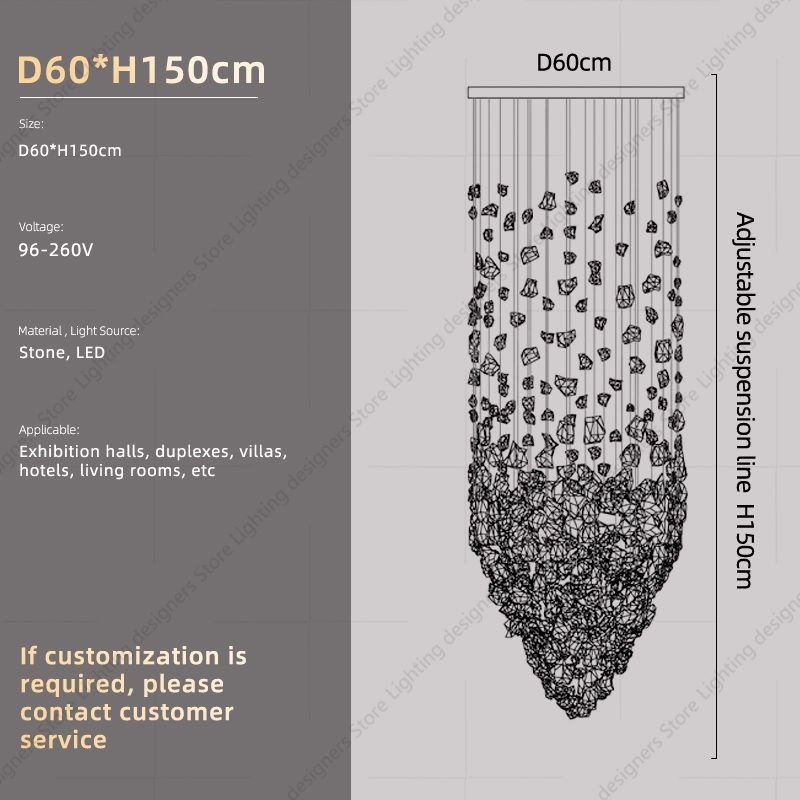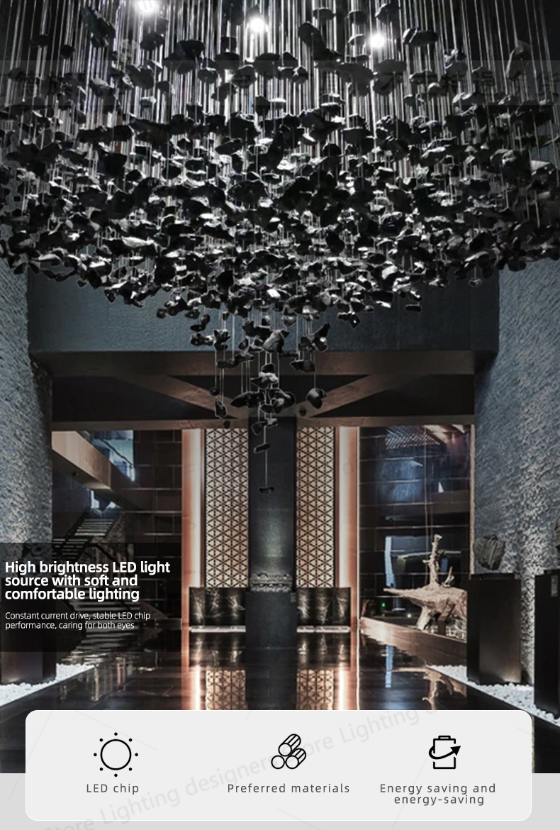 Pendant Light Modern Chandelier Stairs Luxury Chandelier Light For Living Room High Quality Lobby Custom Black Stone Pendant