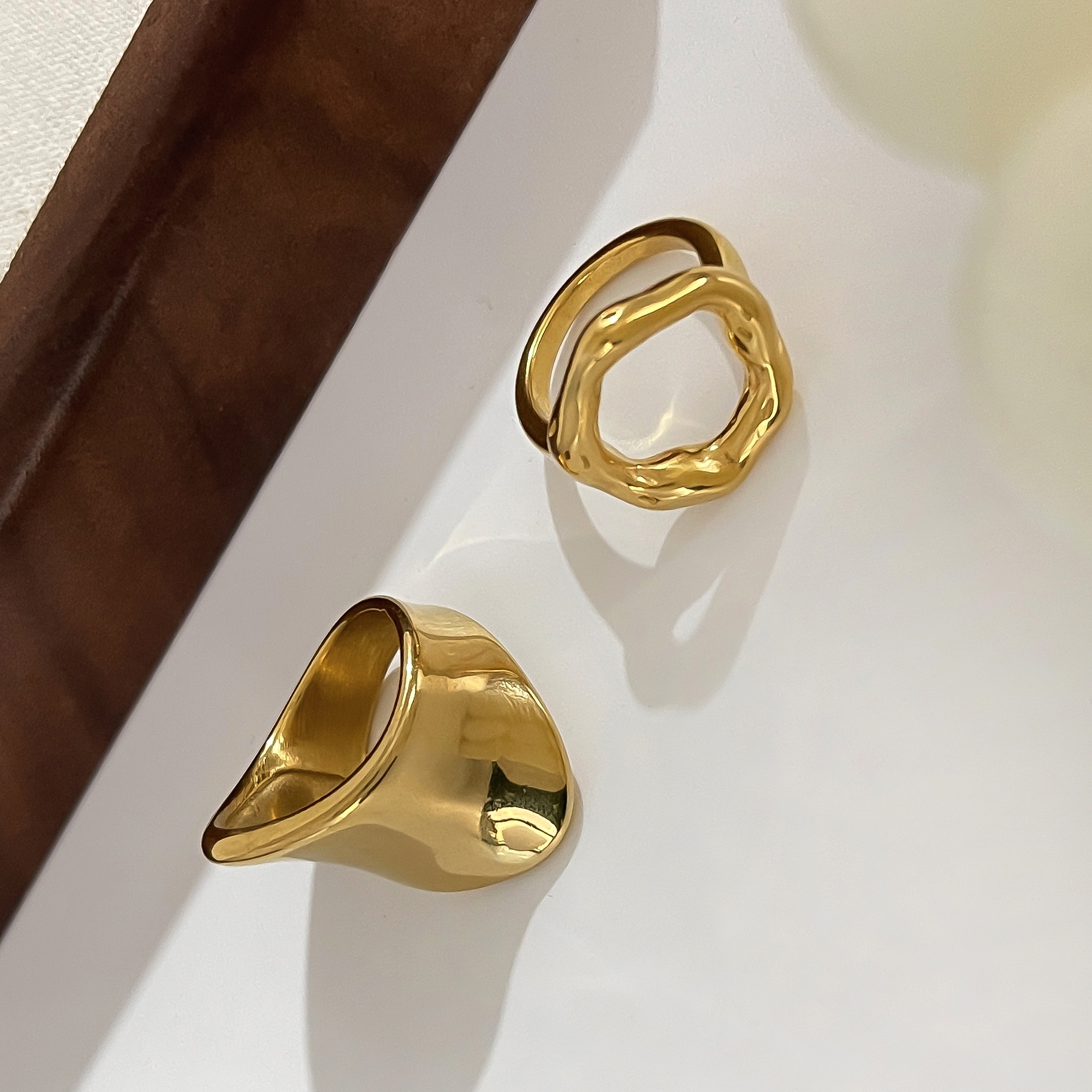 2 reviews for Peri’sbox Minimalism Anti-Tarnish Stainless Steel 18K Pvd Gold Plated Rings for Women Unique Design Fashion Holiday Jewelry Gift
