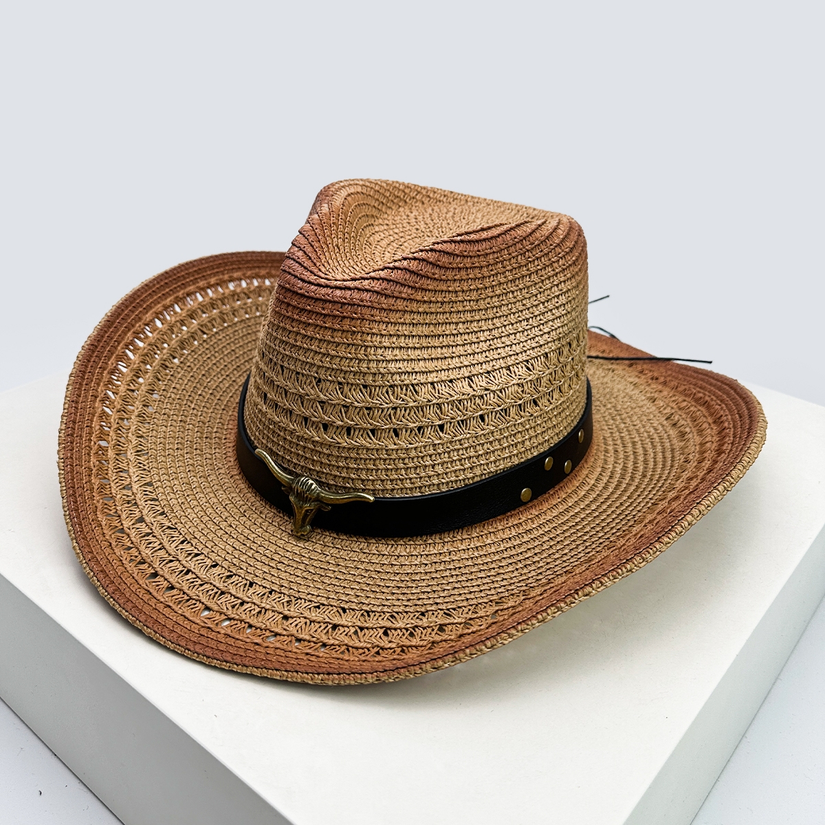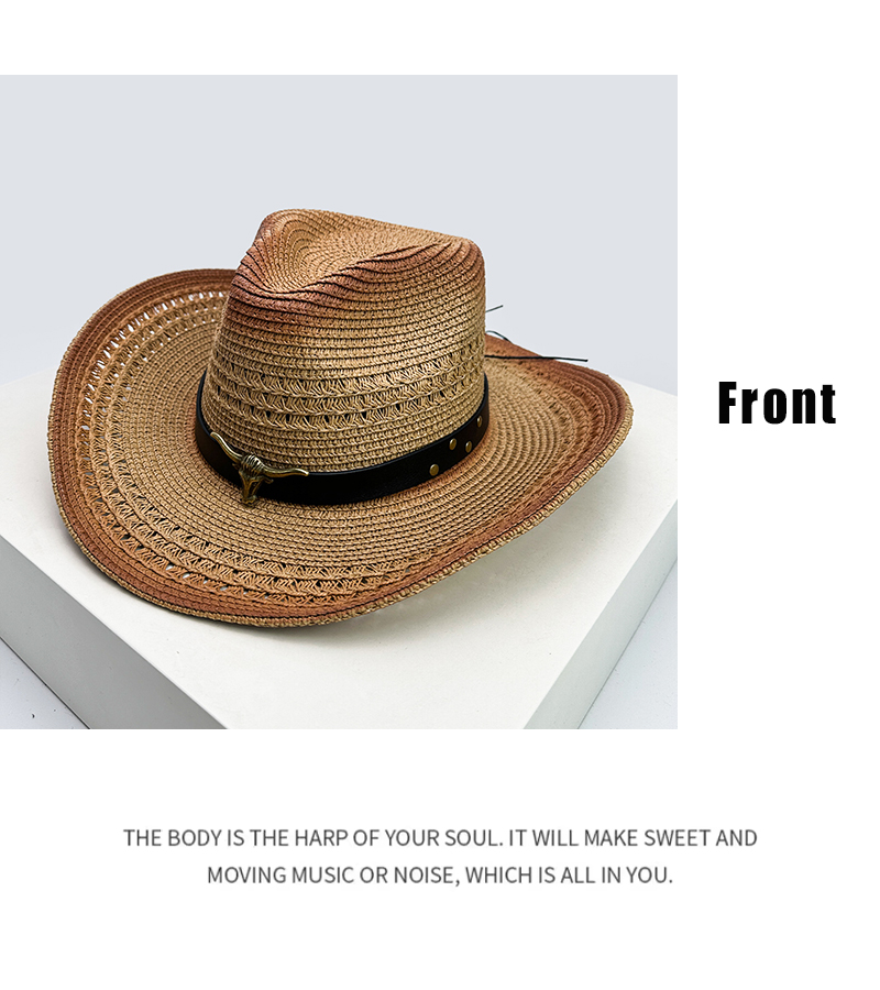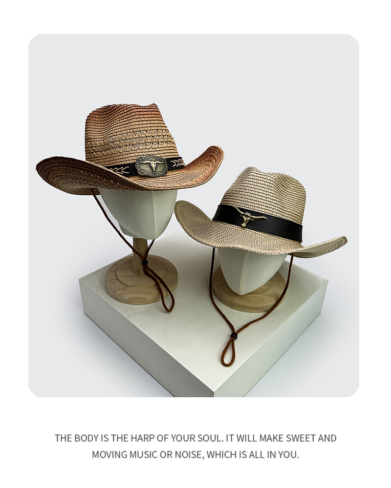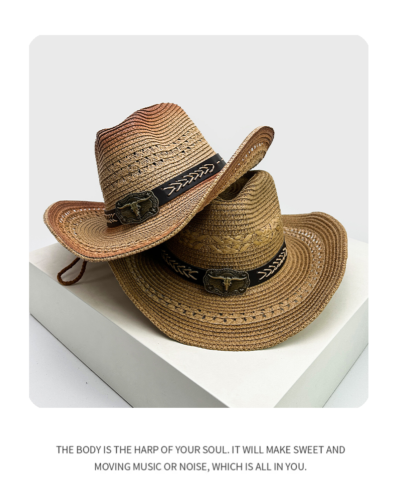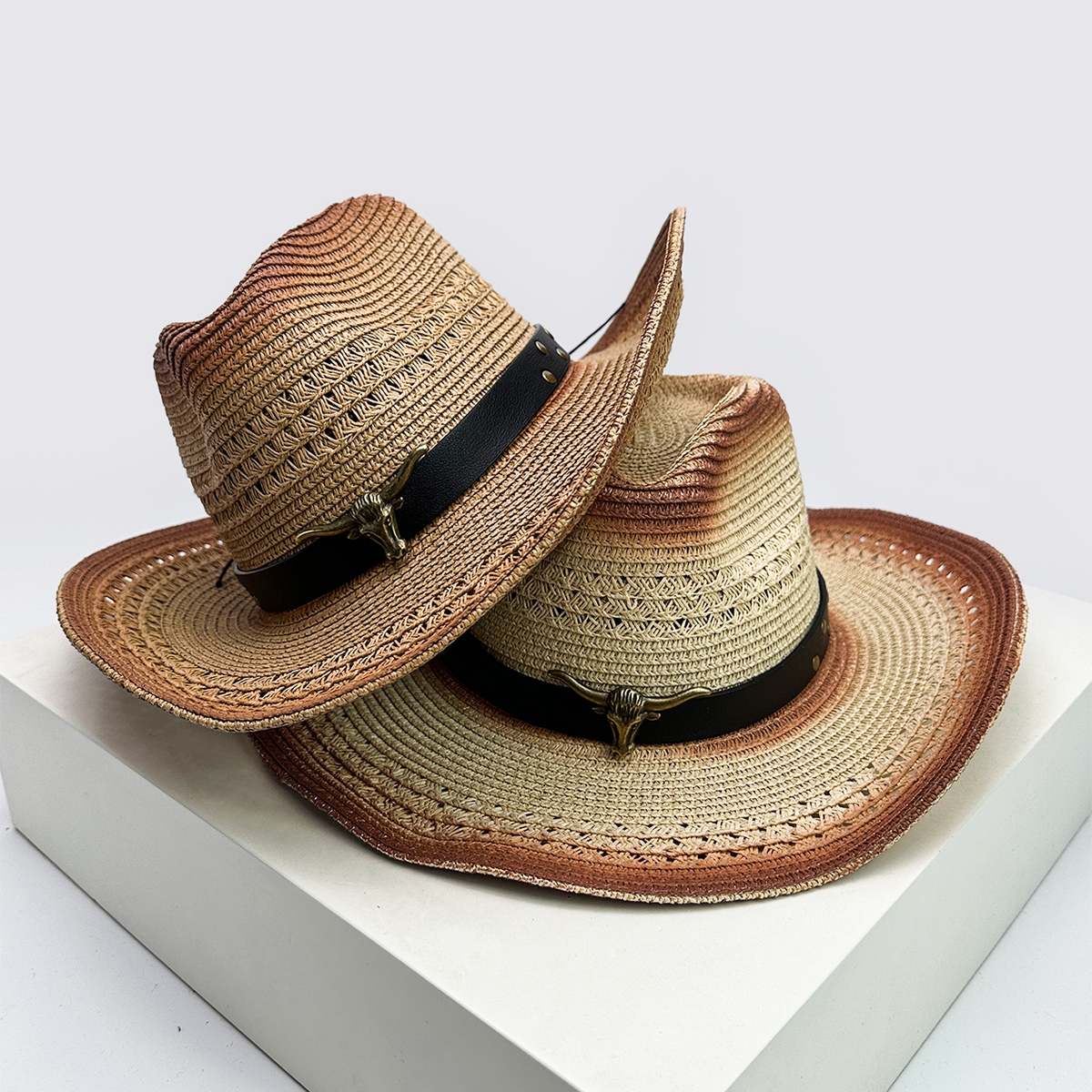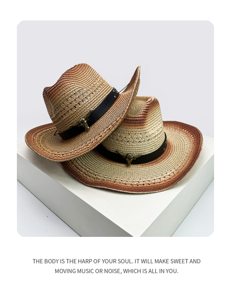 Personal Cow Head Cowboy Hats Breathable Foldable New Unisex Sunshade Color Block Versatile Western Straw Caps Retro Fashion ins