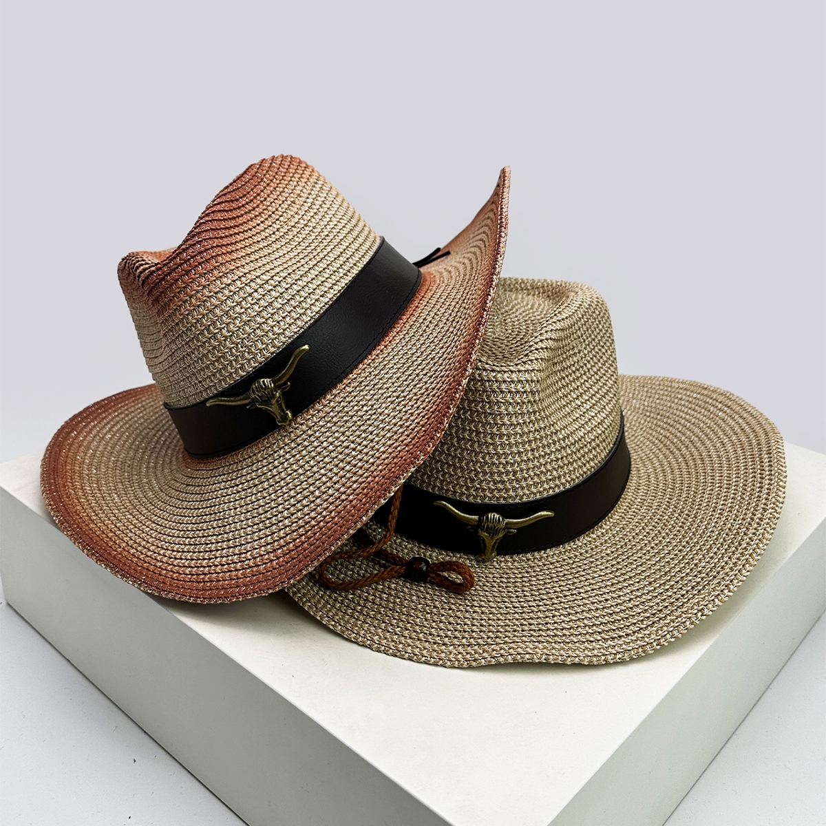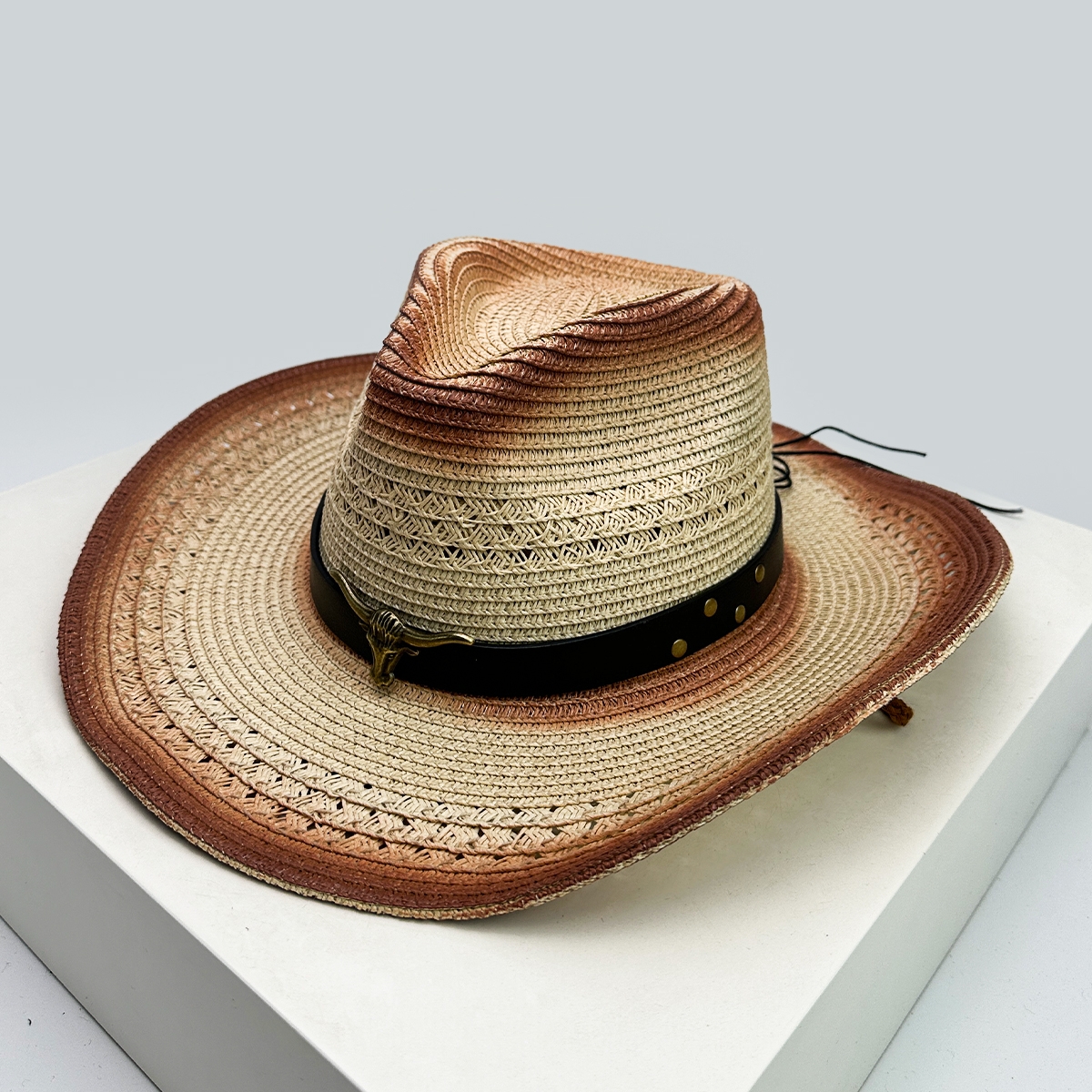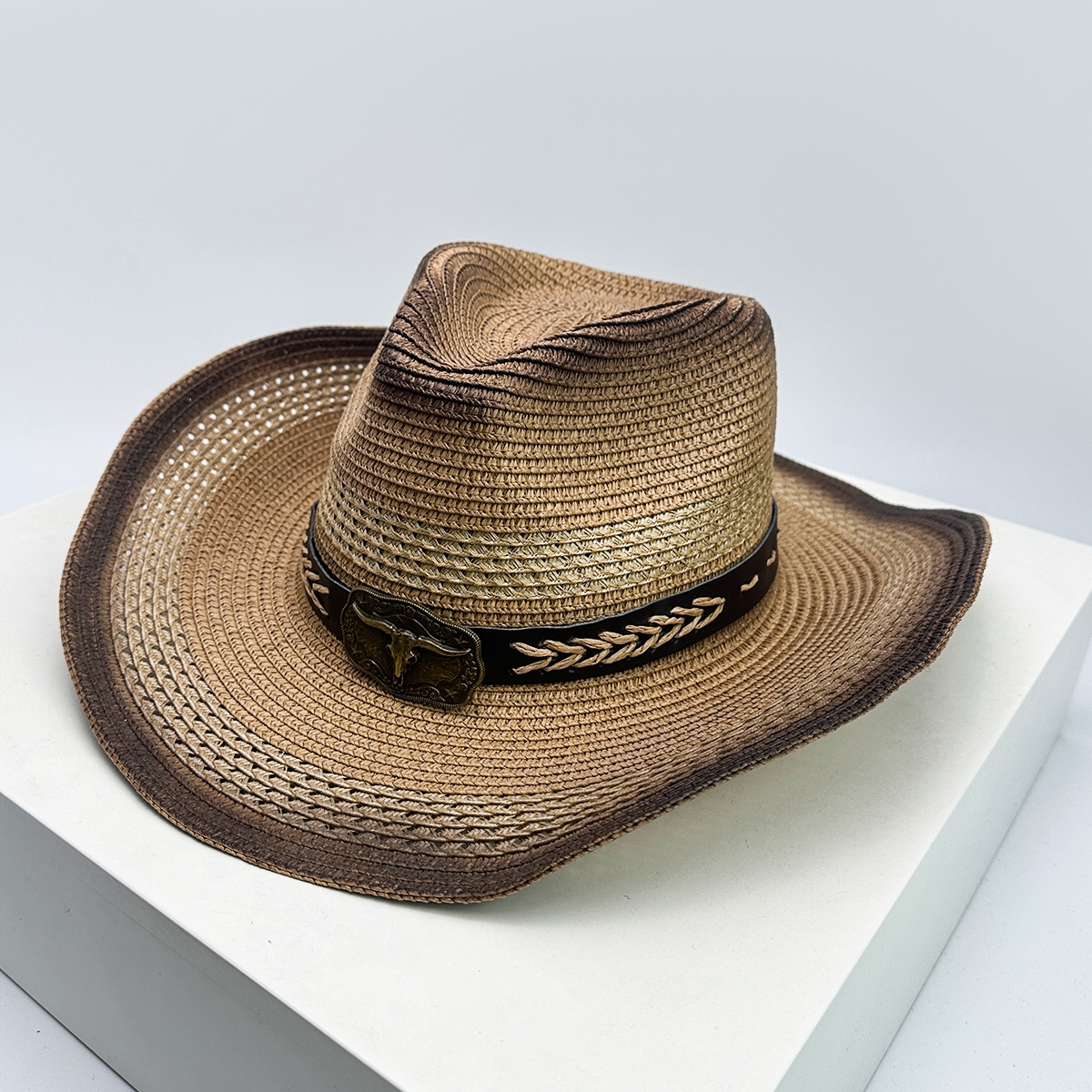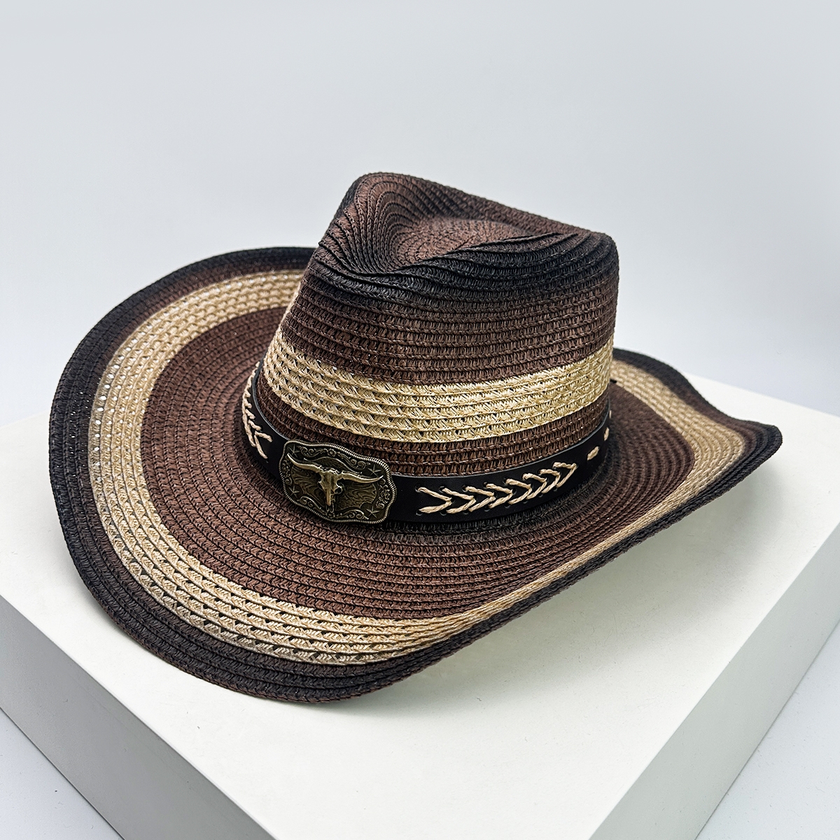 Personal Cow Head Cowboy Hats Breathable Foldable New Unisex Sunshade Color Block Versatile Western Straw Caps Retro Fashion ins