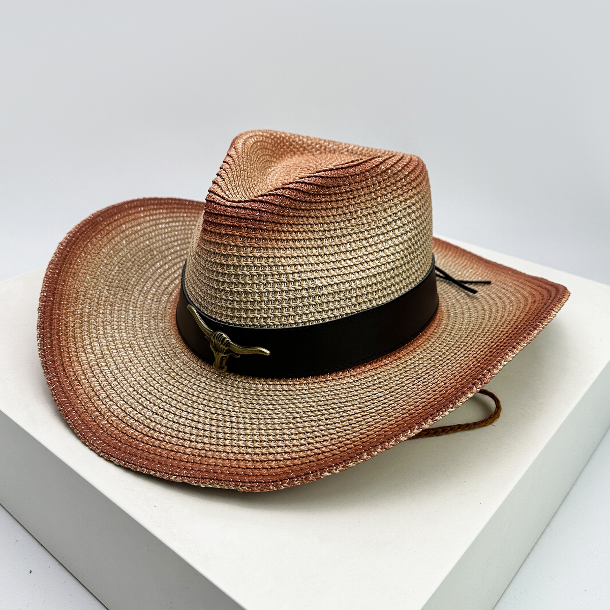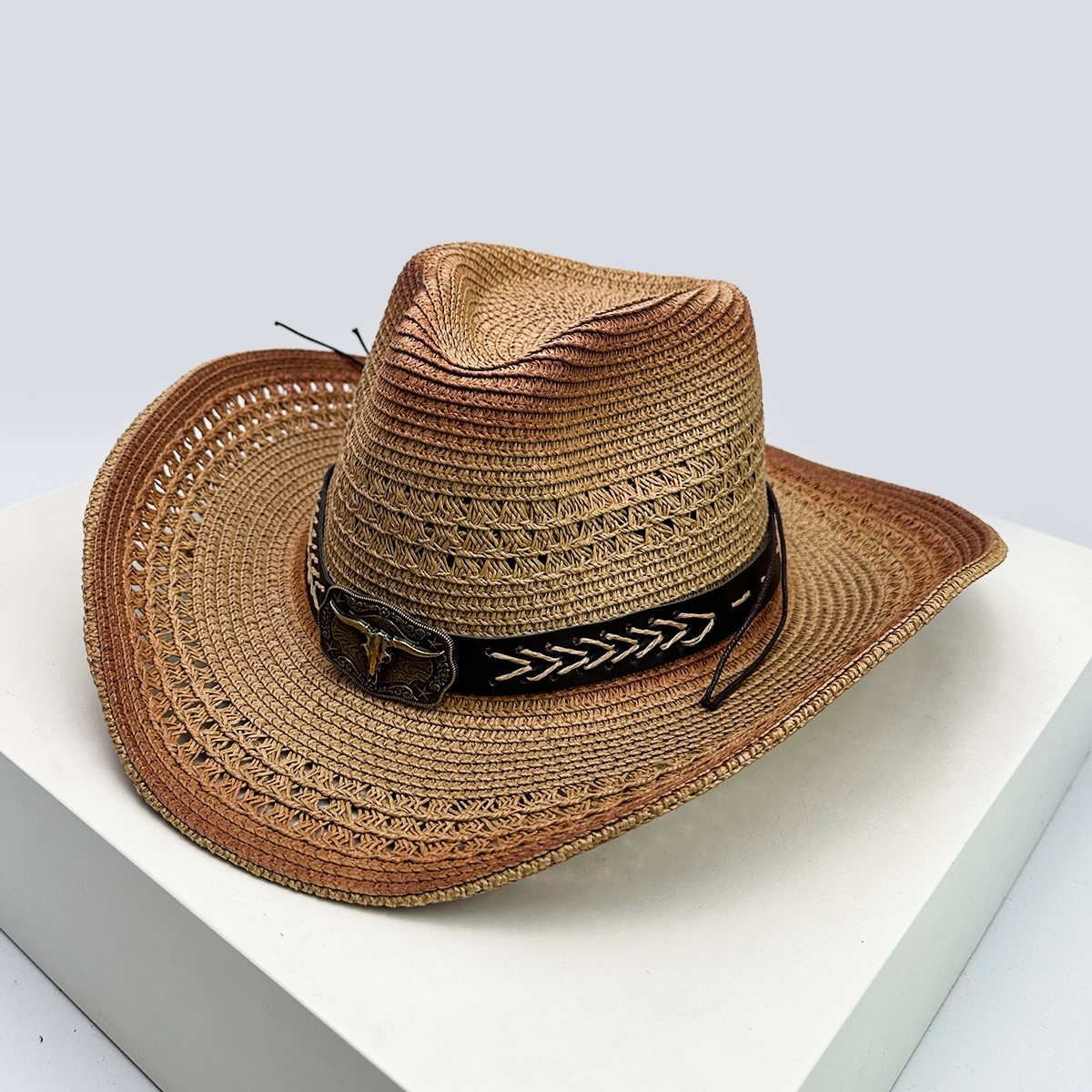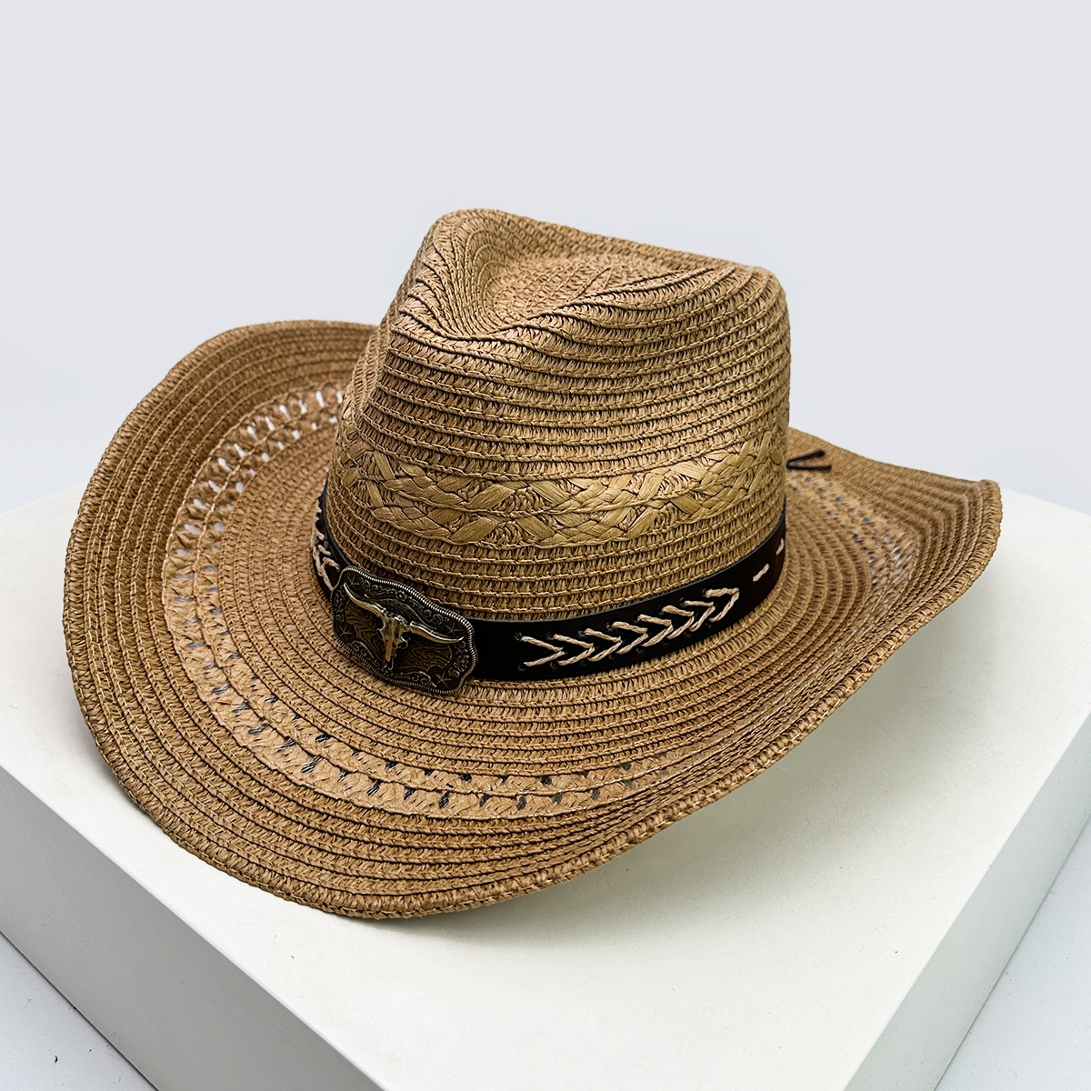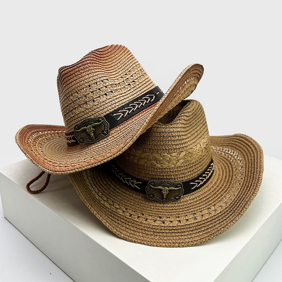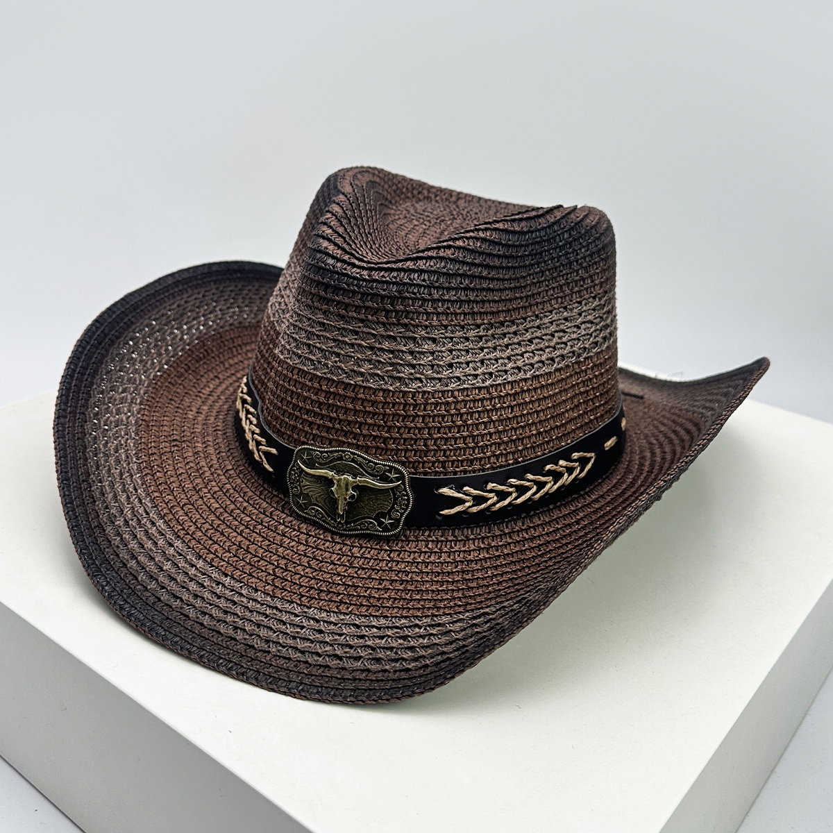 Personal Cow Head Cowboy Hats Breathable Foldable New Unisex Sunshade Color Block Versatile Western Straw Caps Retro Fashion ins