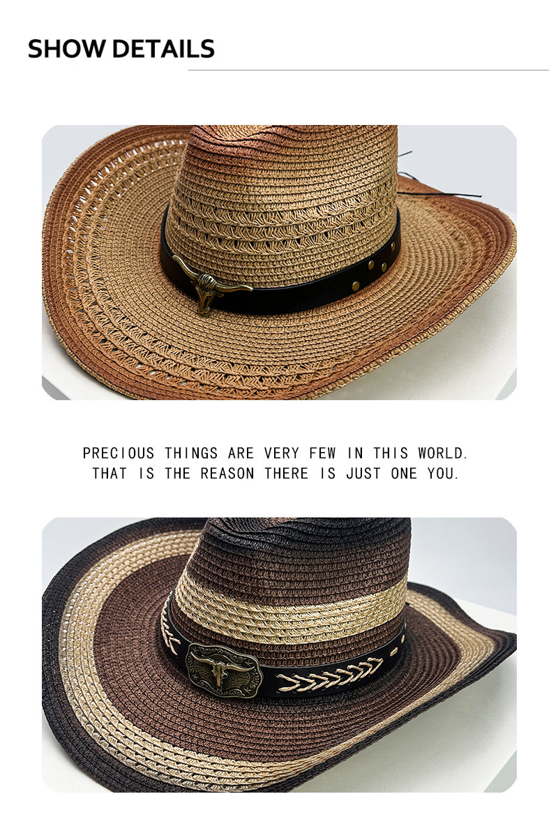 Be the first to review “Personal Cow Head Cowboy Hats Breathable Foldable New Unisex Sunshade Color Block Versatile Western Straw Caps Retro Fashion ins” Cancel reply