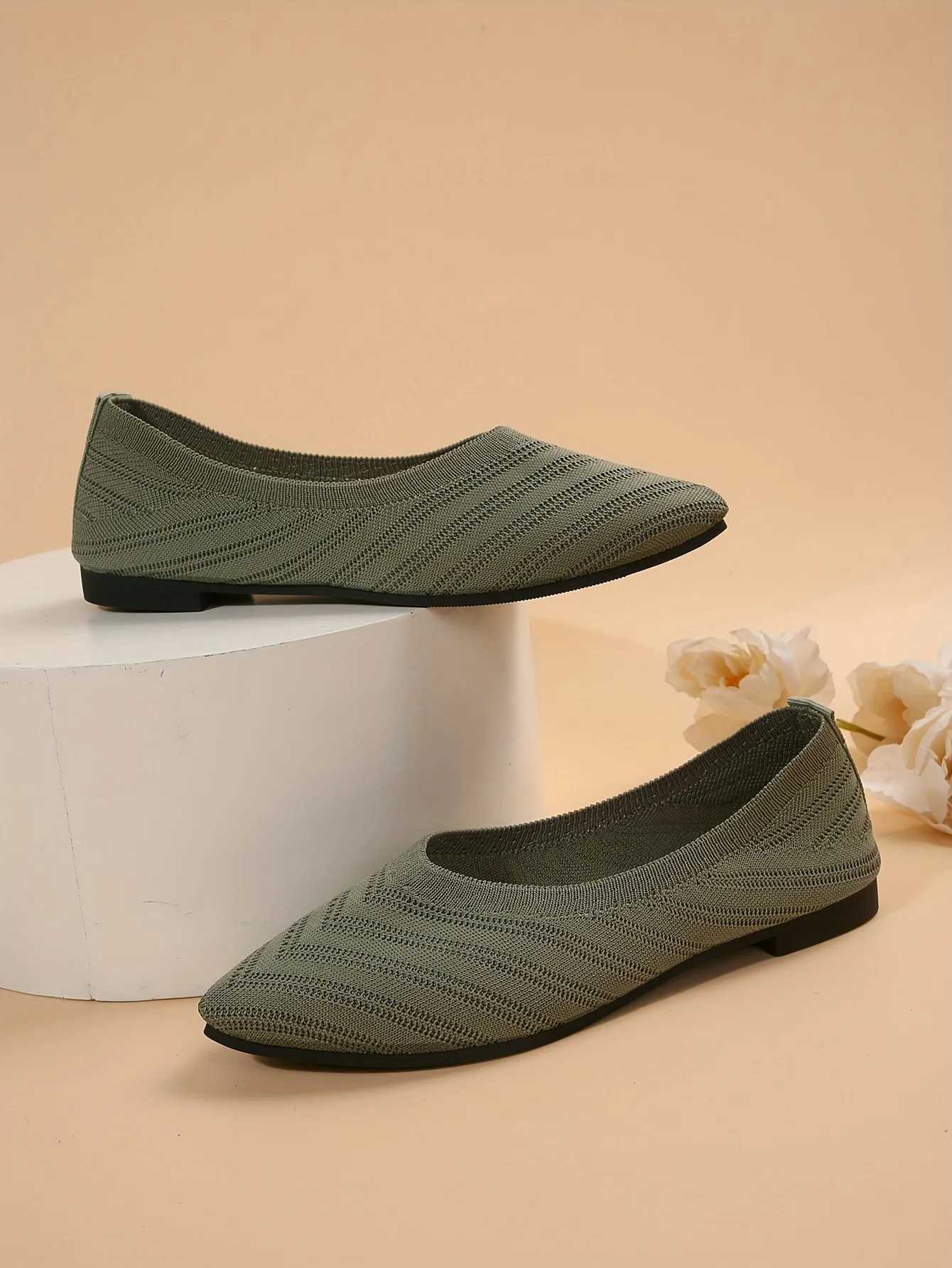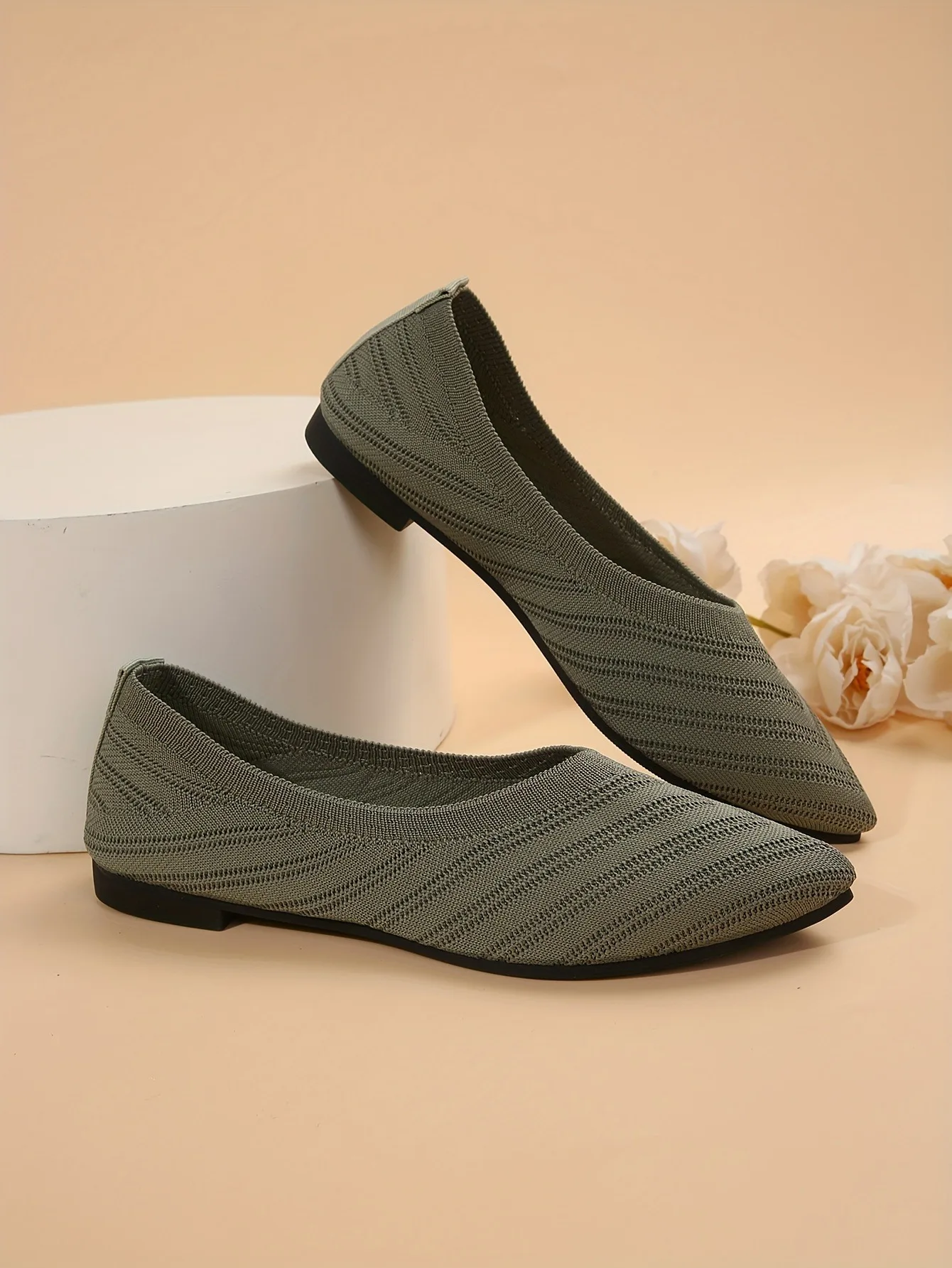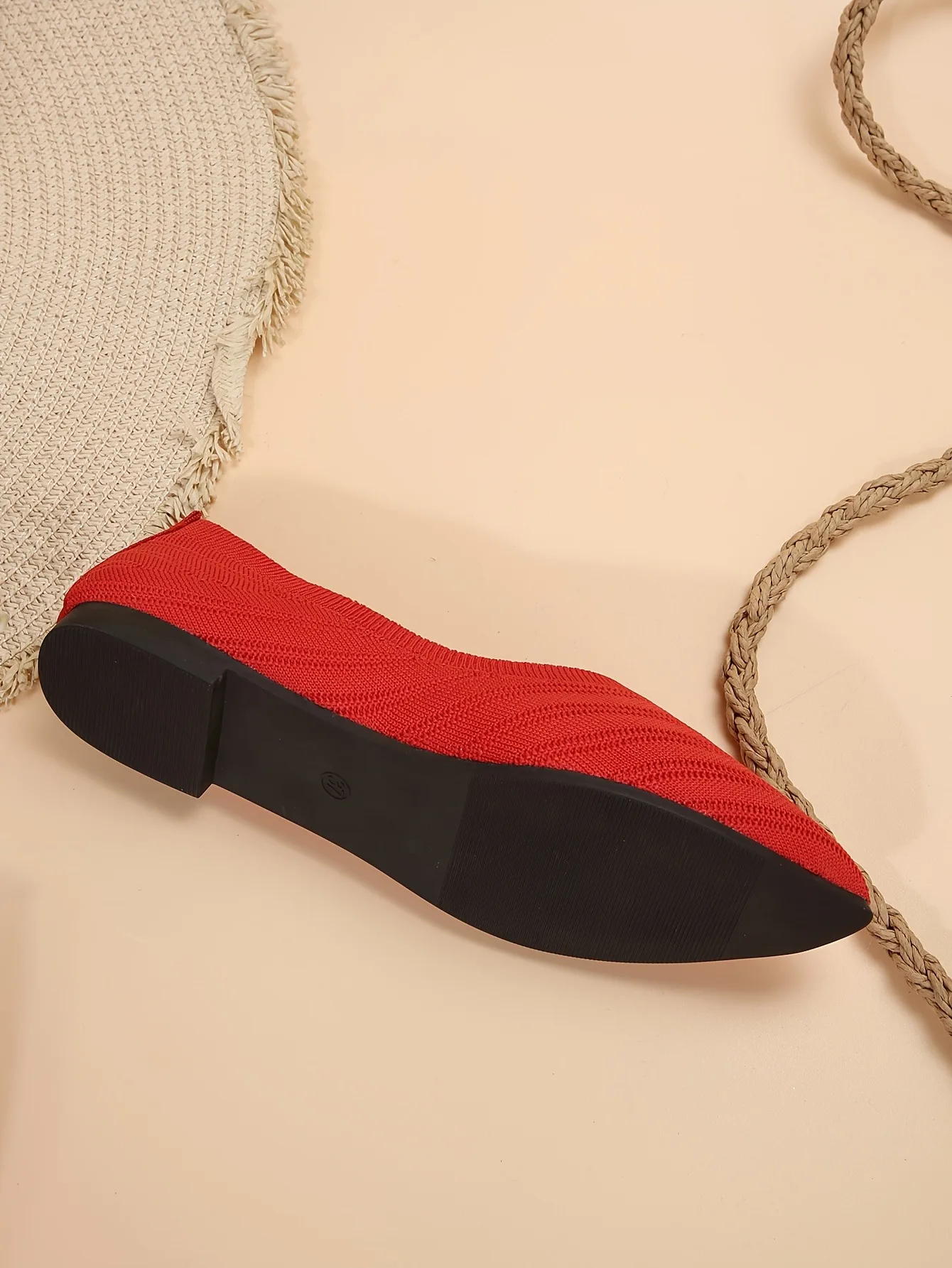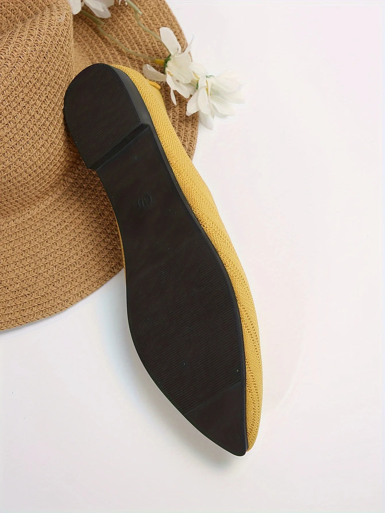 Pointed Toe Flat Shoes Women Solid Color Knitted Slip on Shoes Casual Breathable Ballet Flats Women Loafers Comfort Ladies Shoes