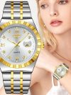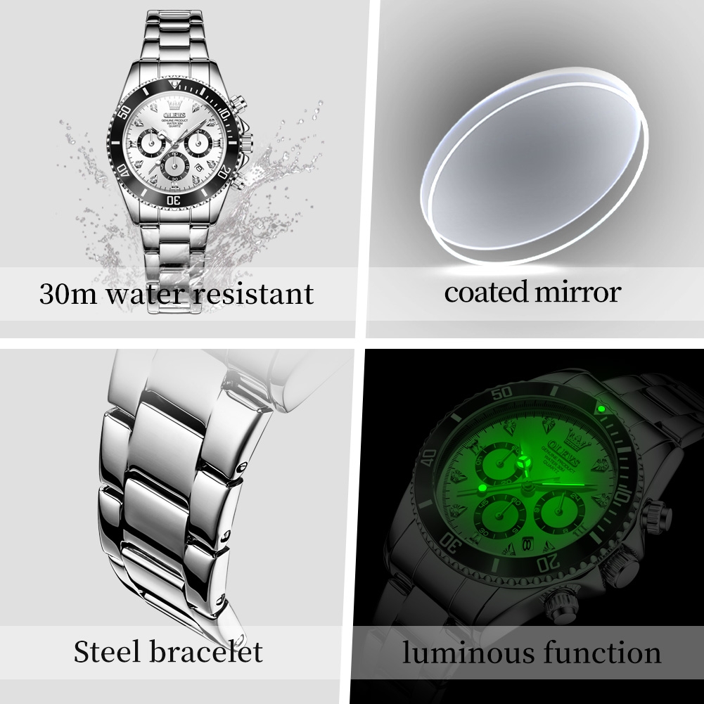 Movement: Quartz Band Material Type: Stainless steel Band Length: 18 cm Case Material: Stainless steel Water Resistance Depth: 3Bar Dial Window Material Type: Hardlex **Elegant Design and Timeless Style** The OLEVS Luxury Women's Watch is a testament to classic elegance with its refined three-eye dial design and date feature. The watch's stainless steel bracelet clasp and band ensure durability and a sleek look, while the round case shape and hardlex dial window material provide a sophisticated finish. This watch is not just a timepiece; it's a statement of style that complements any outfit, from casual to formal attire. **Reliable and Functional** With its precise quartz movement and 30m water resistance depth, this OLEVS watch is designed for the modern woman who values both functionality and fashion. The stainless steel band and case material offer a robust construction that withstands the test of time. The luminous feature on the dial ensures that you can easily read the time in low-light conditions, making it a practical accessory for everyday use. **A Gift of Elegance and Precision** Whether you're looking for a special gift for a loved one or treating yourself to a luxurious timepiece, the OLEVS Luxury Women's Watch is an excellent choice. It comes in a stylish paper box, ready to be gifted or displayed. The watch's design and features are perfect for a variety of occasions, from business meetings to social gatherings, ensuring that the wearer is always on time and in style.