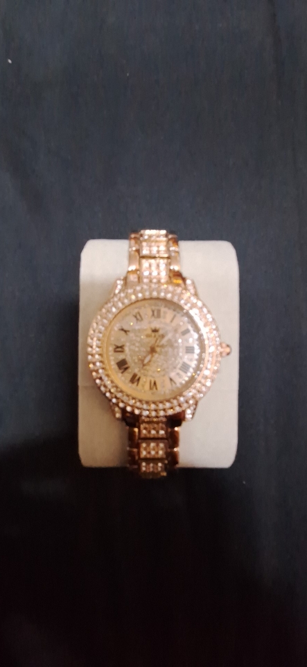 very nice watch nice model and nice stone nice clock stand and smooth but too much not bad but no too much good only this what inside and watch glass around side belt not boy diamond but good price is best