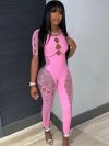 Women’s V-age neck hanging, backless, lace up, solid color, pit stripe, slim fit, sexy hot girl jumpsuit