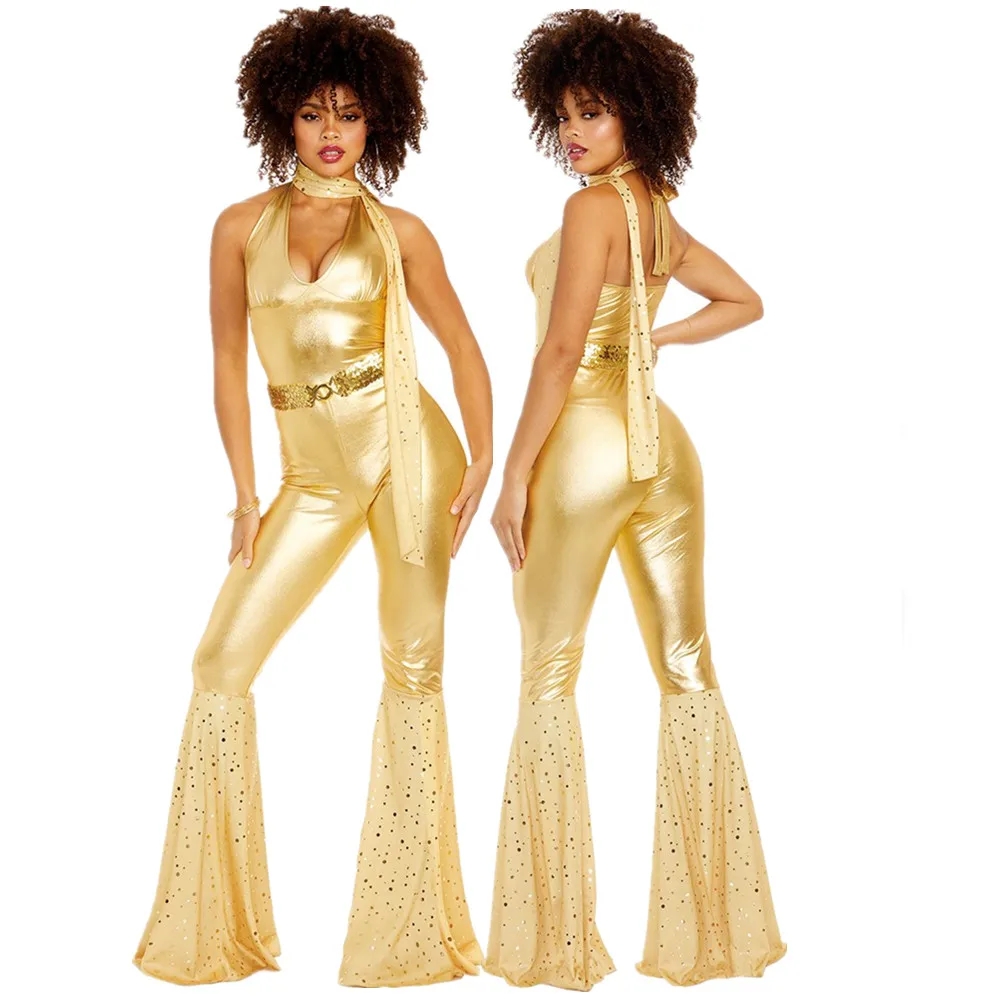 Material: Milk Silk with Elasticity Components: Jumpsuit, Scarf, Belt Special Use: Costumes Design and Style: 70's and 80's Hippies Dance Cosplay Size Range: Available in M and XL Performance and Property: Non-toxic, with a 105℃ no-fading guarantee |Styles Disco Lata 70|Disco Hippy| **Embrace the Retro Spirit** Step back in time with our vibrant 70's 80's Hippies Dance Cosplay Women Sexy Rock Disco Costumes. These costumes are the perfect blend of nostalgia and modern fashion, designed to capture the essence of the disco era. The jumpsuits are crafted from milk silk, known for its elasticity and comfort, ensuring you can dance the night away without any discomfort. The jumpsuits come with a matching scarf and belt, adding to the authenticity of your hippie-inspired look. **Versatile for Various Occasions** Whether you're attending a Halloween party, a carnival, or a themed event, this costume is versatile enough to fit any occasion. The costumes are perfect for women who want to embody the free-spirited hippie culture of the 70s and 80s. The sexy yet playful design makes it an ideal choice for those looking to stand out and make a statement. The costume's non-toxic properties and 105℃ no-fading guarantee ensure that your outfit remains vibrant and stylish throughout the night. **Tailored for Comfort and Style** Available in sizes M and XL, our costumes cater to a range of body types. The detailed sizing chart ensures that you select the perfect fit, allowing you to move and groove with ease. The jumpsuits' length is designed to flatter, with sizes ranging from 144cm to 148cm, ensuring that you feel confident and comfortable while you dance. The costume's lightweight and breathable milk silk material allows for easy wear, making it a top choice for those who want to look good while having fun.