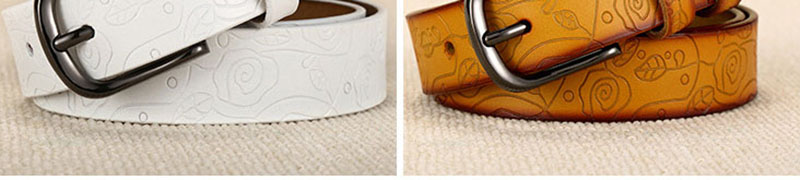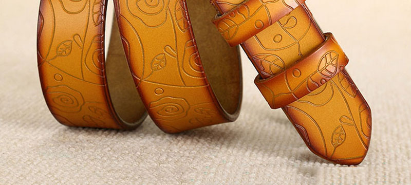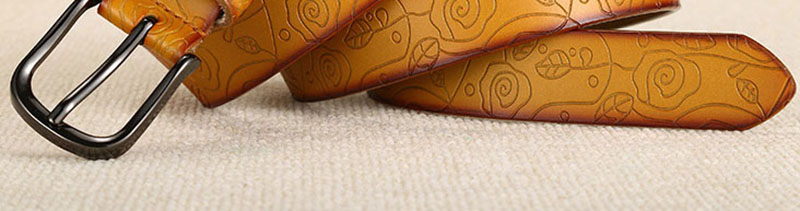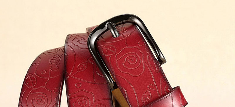 Specifications: Material: Genuine Cowskin Leather Buckle Style: Pin Style Belt Buckle Belt Width: 2.8cm Buckle Material: Alloy Pattern Type: Floral Colors Options: Red, Coffee, Yellow Brown, Black, Rose Red Features: |Western Leather Belt| **Elegant Design and Versatility** The Fashion Design Floral Pattern Rose Red Genuine Leather Female Belt is a testament to timeless elegance and versatility. Crafted from premium cowskin leather, this belt offers a soft, supple feel that molds to your waistline, ensuring a comfortable fit for all-day wear. The floral pattern adds a touch of femininity and charm to any outfit, making it a perfect accessory for both casual and formal occasions. The belt's reversible feature allows you to switch between the vibrant rose red and classic black, offering two distinct looks in one belt. **Durable and Stylish** Designed for longevity, this belt features a robust pin style buckle made from high-quality alloy, ensuring it withstands the test of time. The belt's width of 2.8cm provides ample space for the buckle, making it easy to fasten and unfasten. The belt's size range of 95-115cm caters to a variety of body types, making it a versatile addition to any wardrobe. Whether you're dressing up for a special event or adding a stylish touch to your everyday look, this belt is the perfect choice for women who value both fashion and durability. **A Fit for Every Wardrobe** This belt is not just a fashion statement; it's a practical accessory that complements a variety of outfits. The metal buckle adds a touch of sophistication, while the floral pattern offers a subtle nod to nature's beauty. The belt's colors options, including red, coffee, yellow brown, black, and rose red, ensure that there's a hue to match any ensemble. Whether you're looking for a gucci belt women price or a reversible tory burch belt, this belt is designed to meet your needs. It's a must-have for women who appreciate quality, style, and versatility in their accessories.