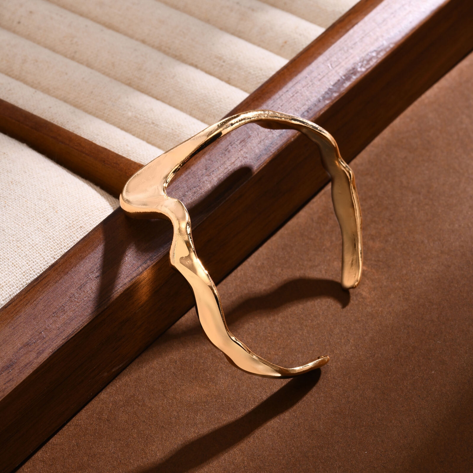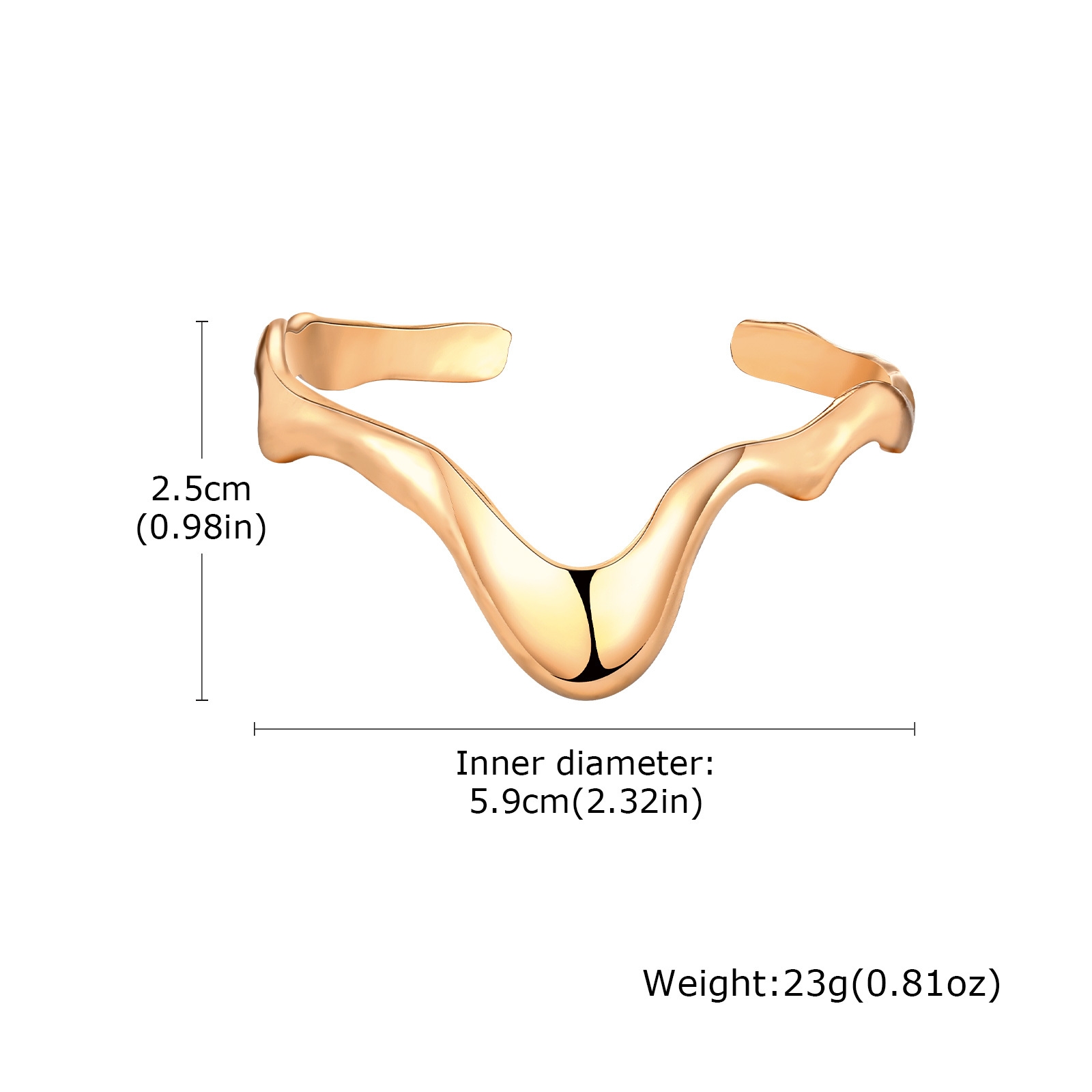 Material: Lead-tin Alloy Design and Style: Punk Wave Open Cuff Bangles Usage and Purpose: Fashion Accessories Shape/Pattern: Geometric Plating: Gold-color, Vacuum 3-layer plating Applicable People: Women Performance and Property: Allergy-free, nickel and lead-free **Embrace the Punk Wave Lifestyle** The Punk Wave Open Cuff Bangles are the epitome of edgy fashion, blending the boldness of punk culture with the fluidity of the ocean's waves. These bangles are a must-have for any woman who wants to make a statement with her accessories. Each piece is crafted from a durable lead-tin alloy, ensuring longevity and a sleek finish that is resistant to fading thanks to our vacuum 3-layer plating process. The geometric design adds a touch of intricacy, while the open cuff style allows for a customizable fit, catering to a wide range of wrist sizes. **Adaptable and Versatile** Whether you're heading to a rock concert or looking to add an urban edge to your everyday outfit, these punk wave cuff bangles are the perfect choice. Their versatility is remarkable, as they can be worn alone or stacked with other bracelets to create a layered look. The sleek metal construction also makes them ideal for women who are allergic to nickel and lead, ensuring comfort and safety without compromising on style. **Designed for the Modern Woman** Catering to the modern woman's active lifestyle, these punk wave open cuff bangles are not only fashion-forward but also practical. They are lightweight and easy to wear, making them a go-to accessory for any occasion. Their geometric design and gold-color plating exude a sophisticated charm that complements both casual and formal attire. Plus, with a two-workday order process and the option for customization and wholesale pricing, these bangles are tailored to meet the needs of both individuals and retailers. Embrace the punk wave lifestyle with these trendy, adjustable, and allergy-friendly bangles. Their unique geometric design and gold-color plating make them a standout piece in any jewelry collection.