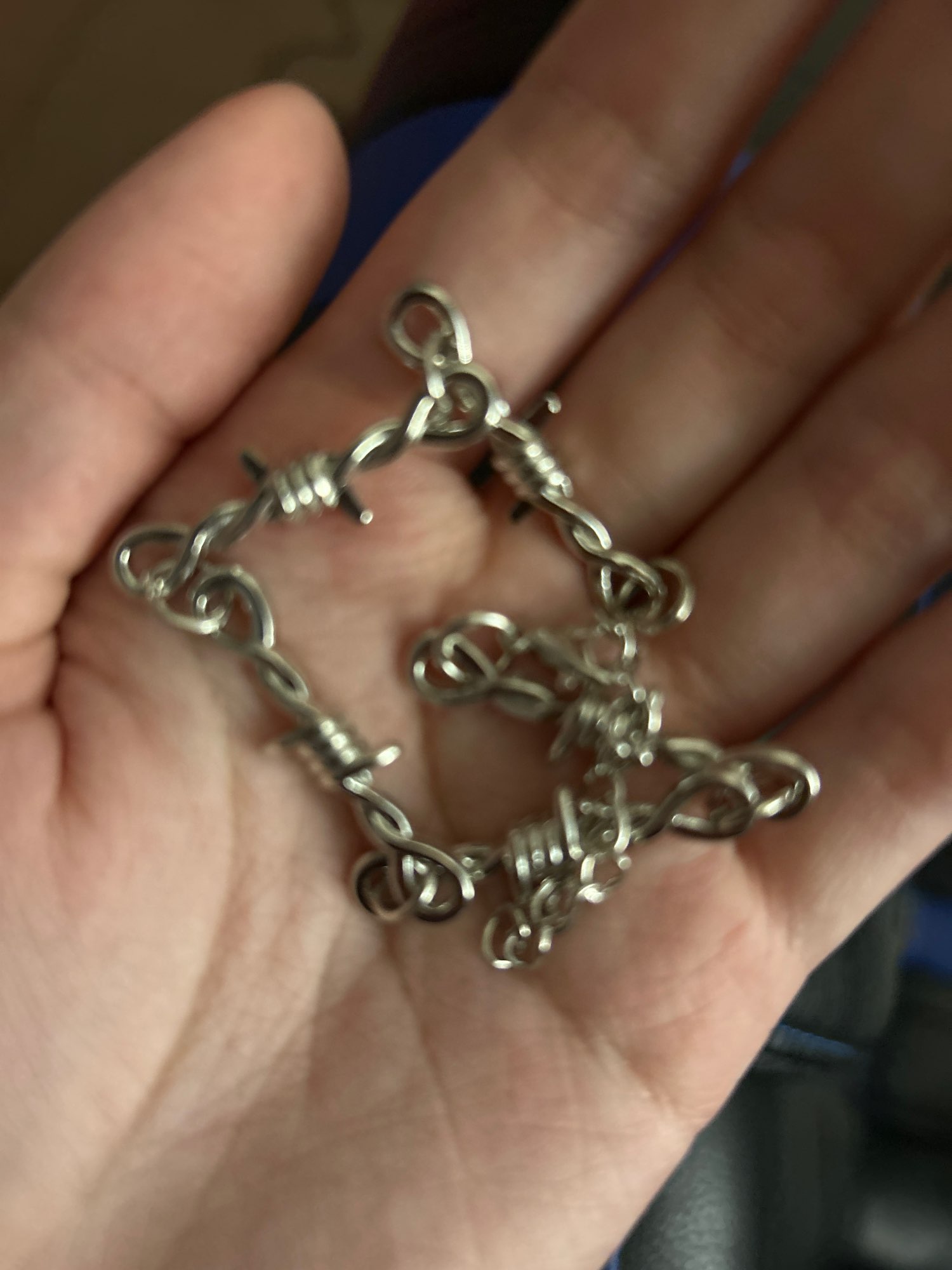 Specifications: Material: Zinc alloy Chain Type: Link Chain Clasp Type: Lobster-claw-clasps Shapepattern: Bowknot Bracelets Type: Chain & Link Bracelets Gender: Unisex Features: **Embrace the Edgy Aesthetic** The Small Wire Brambles Iron Unisex Choker Bracelet is a testament to the fusion of hip-hop, gothic, and punk styles. Crafted from durable zinc alloy, this bracelet features a unique link chain design with a secure lobster-claw clasp, ensuring a comfortable fit for all. The intricate bowknot pattern adds a touch of elegance to the edgy barbed wire motif, making it a versatile accessory that can be worn as a choker or a bracelet, depending on your mood and outfit. **A Statement of Individuality** This bracelet is not just an accessory; it's a statement of individuality. The barbed wire motif, inspired by the inventions of the barbed wire and the barbed wire holocaust, is a nod to the gothic styles that have captivated the imagination of many. The bracelet's small wire brambles and little thorns design make it a conversation starter, perfect for those who dare to stand out. Whether you're attending a hip-hop concert, a gothic gathering, or simply looking to add an edge to your everyday style, this bracelet is the perfect accessory. **A Gift That Speaks Volumes** Looking for a unique gift that speaks volumes? The Small Wire Brambles Iron Unisex Choker Bracelet is an excellent choice. It's a thoughtful present for friends and loved ones who appreciate the fusion of punk, gothic, and hip-hop styles. The bracelet's unisex design ensures that it's a hit with anyone who appreciates the barbed wire flogger aesthetic. It's a gift that's as memorable as it is stylish, making it a standout choice for birthdays, holidays, or any special occasion.