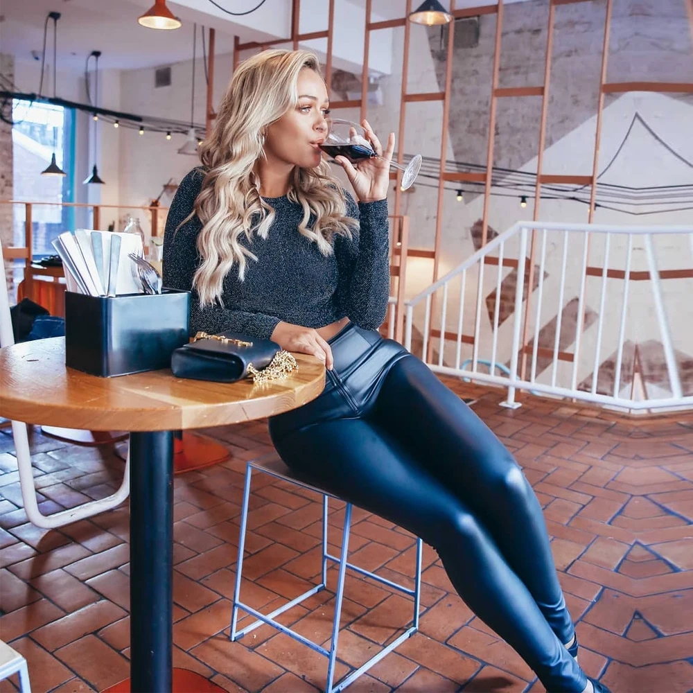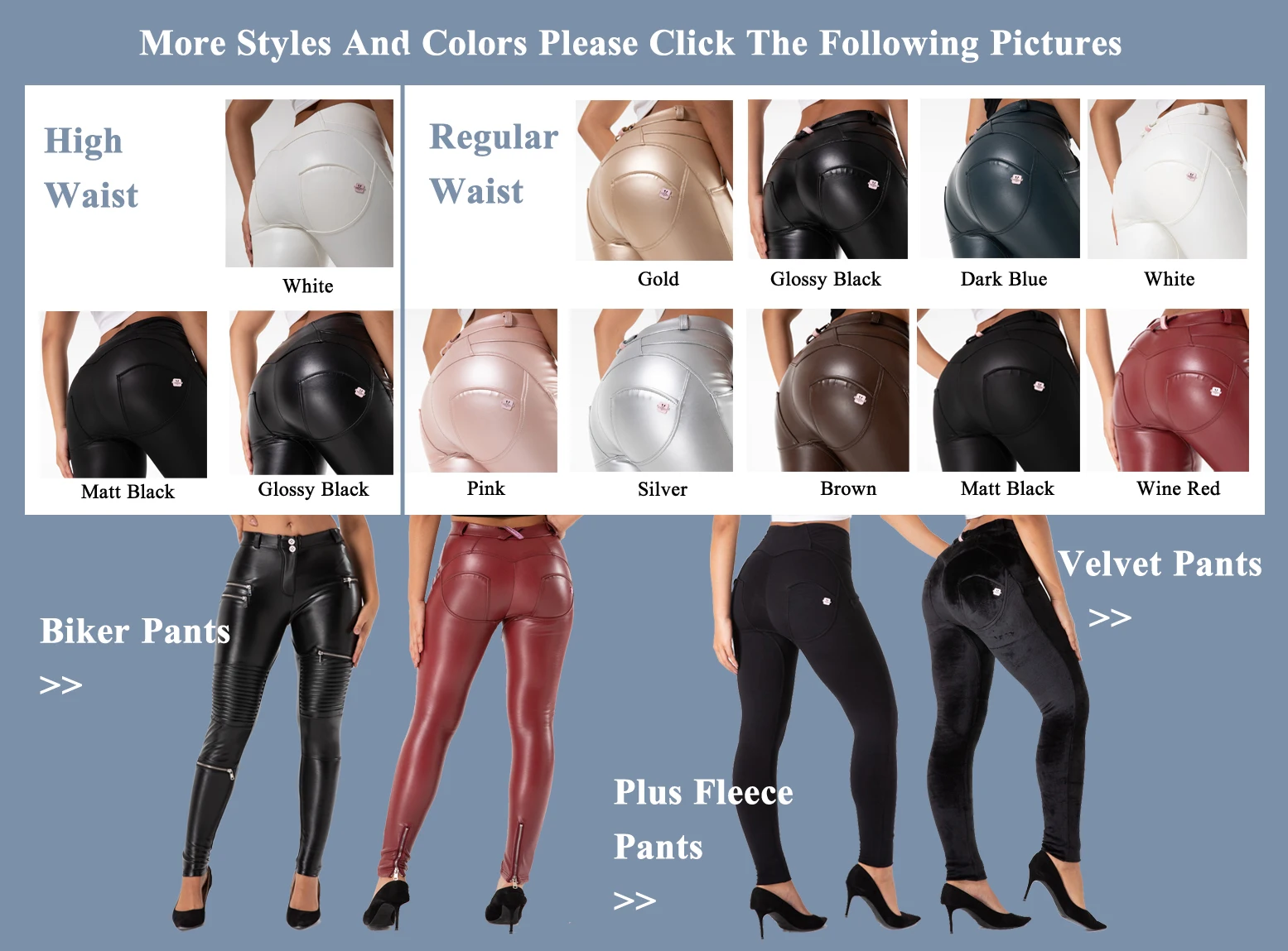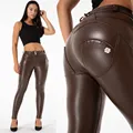 Melody High Waisted Faux Leather Pants Stretch Blue Leather Jeans Plain Trousers Latex Leggings Women Lifting Hip Pants
