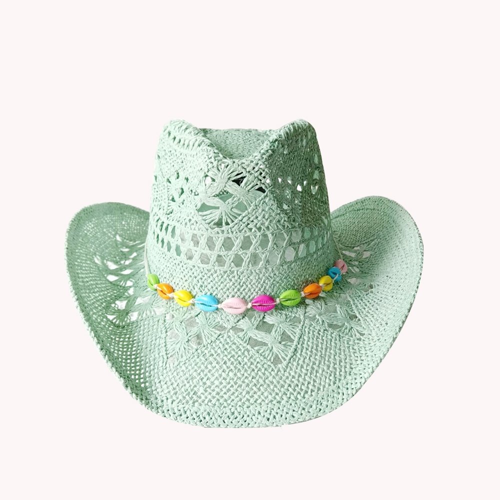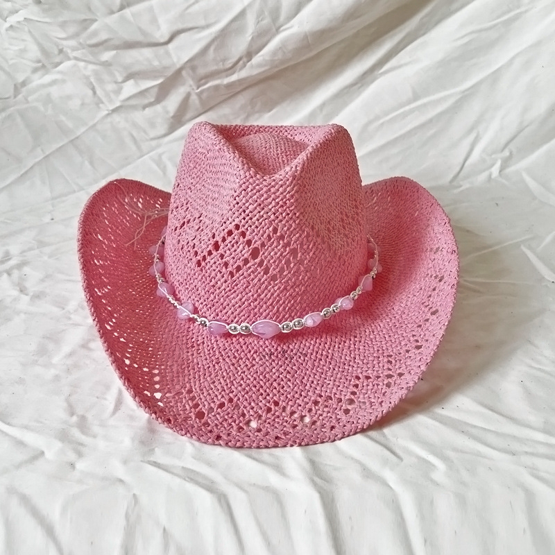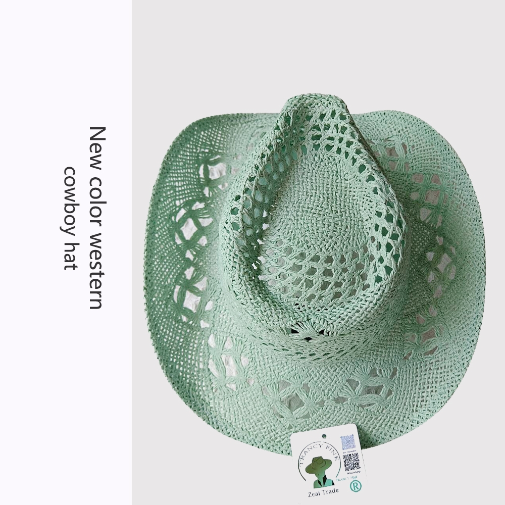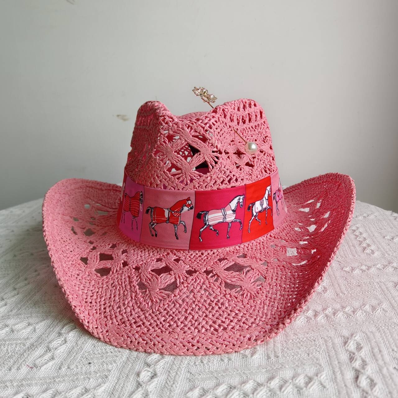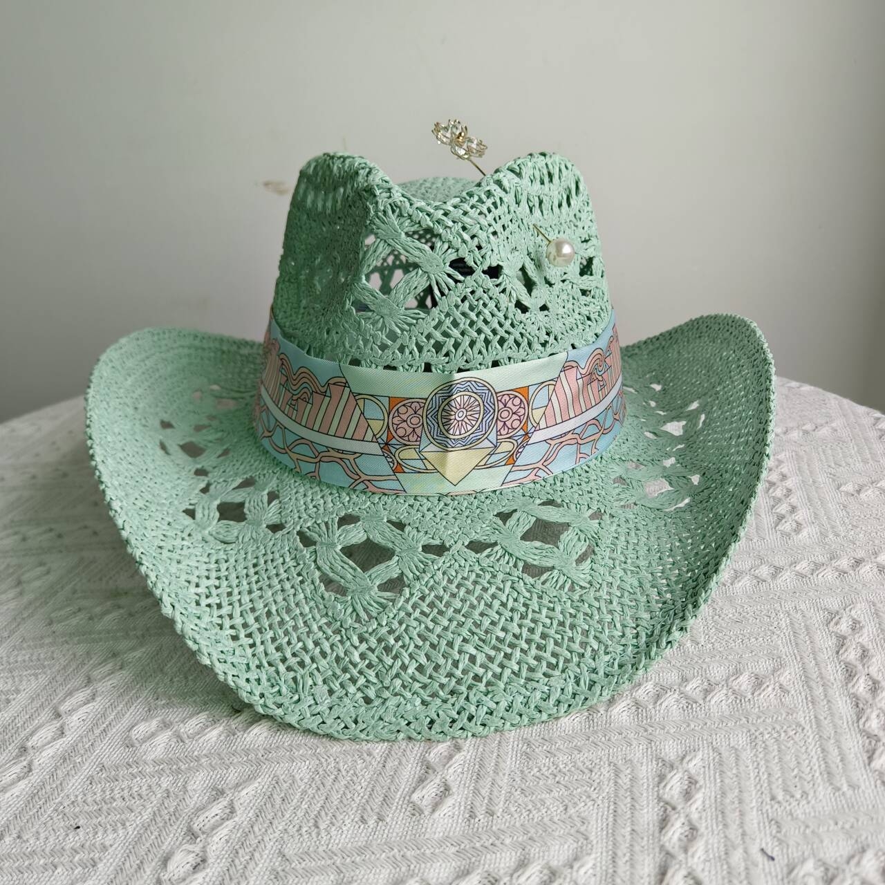 Retro USA Printing Leather Band Women Men Hard Straw Riding Wide Brim Outdoor Beach Cowboy Cowgirl Western Sun Hat Sunscreen