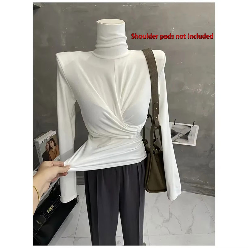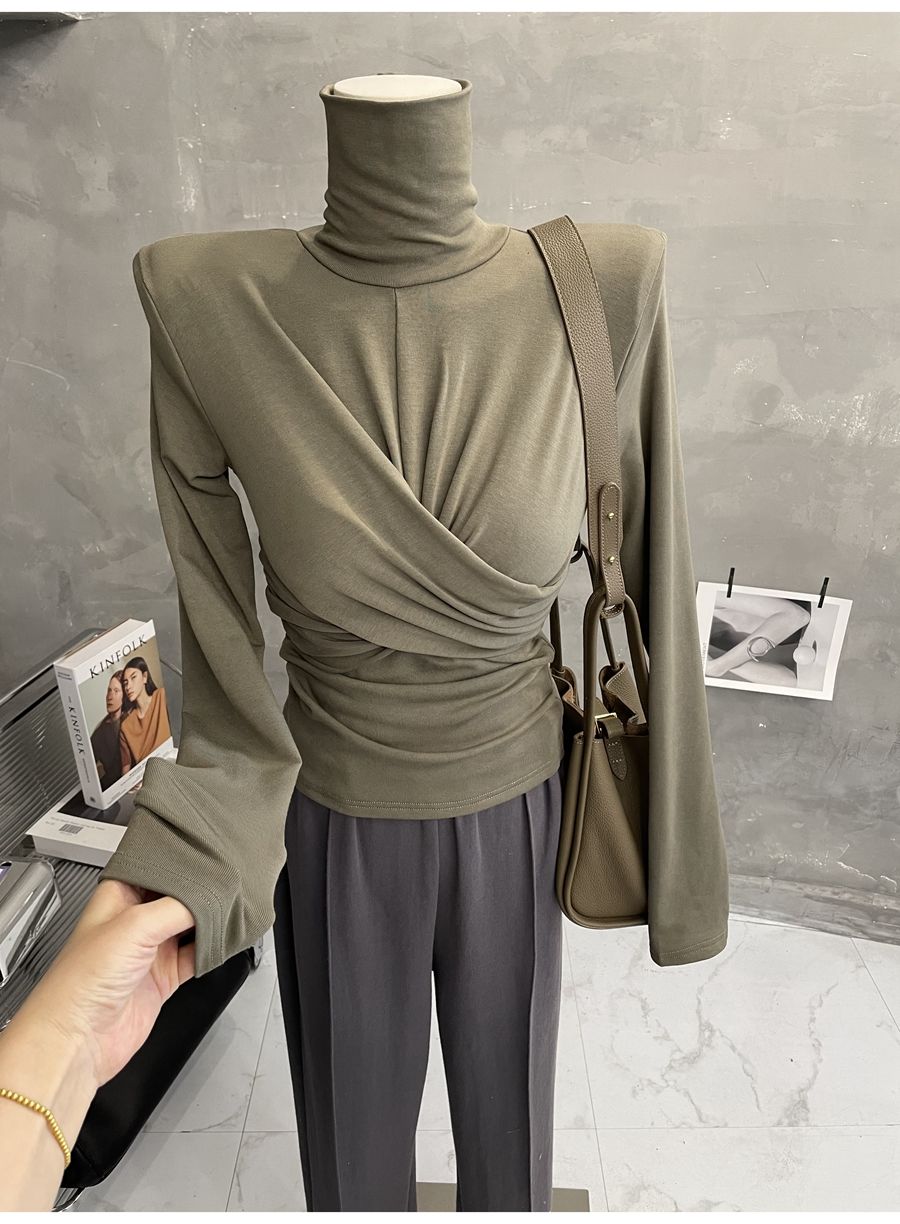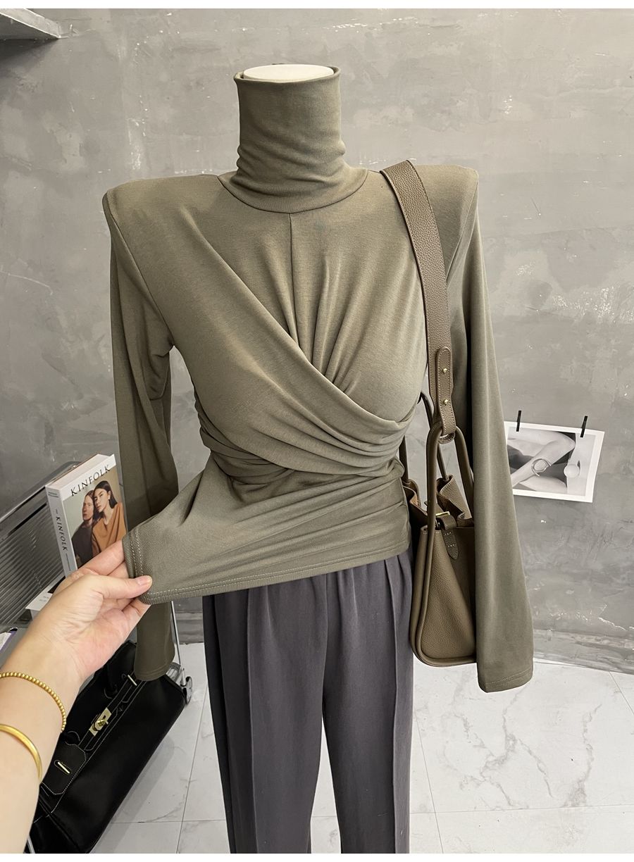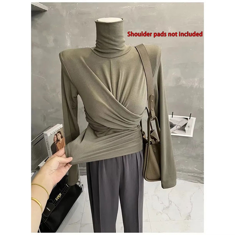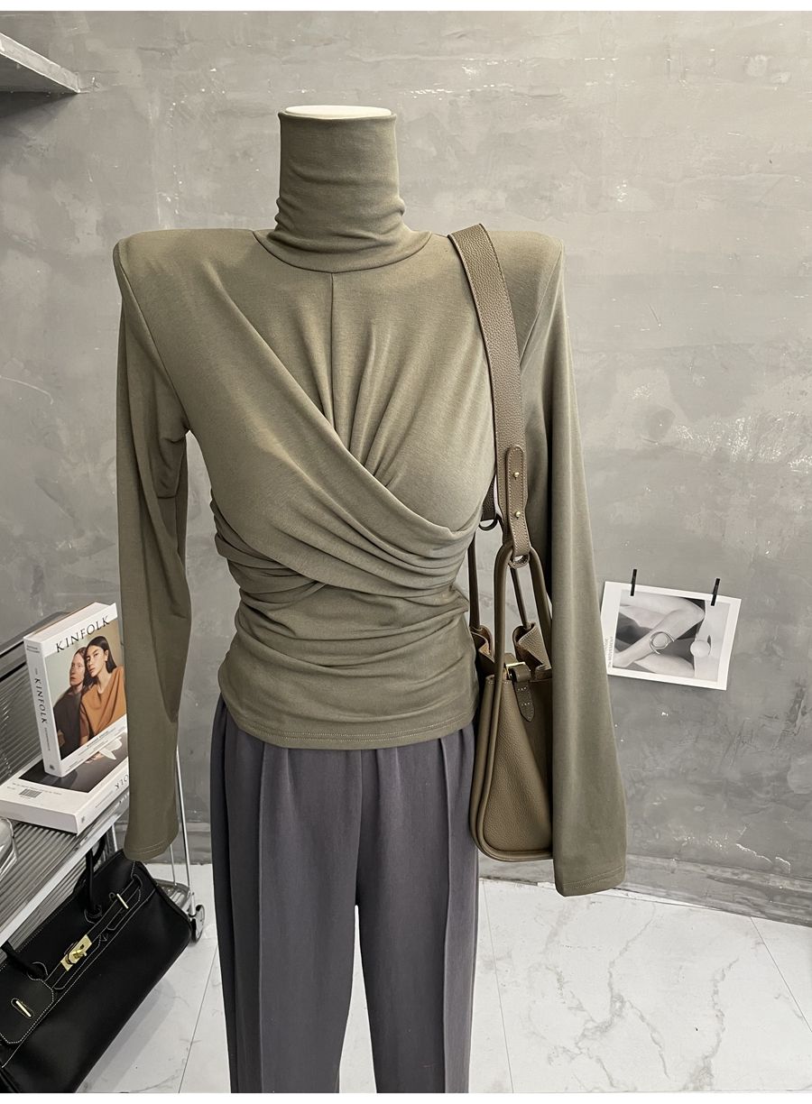 Season: Autumn/Winter Clothing Length: Regular Gender: Women Elasticity: Medium Stretch Sleeve Style: Regular Pattern Type: Solid Collar: Turtleneck Material: Polyester Support: Wholesale, Drop shipping Decoration: Folds Dress style: Pullover Fabric Type: Blended 105℃挥发物≤: JOEVILU Tops Type: Tees CN: Zhejiang |Twisted Top Sexy| **Elegant Autumn/Winter Essential** Embrace the chill with our Turtleneck Base Shirt for women, a blend of style and comfort designed to keep you warm and fashionable during the cooler months. The turtleneck style adds a classic touch, while the solid color and medium stretch fabric ensure a versatile wardrobe staple that can be dressed up or down. The regular clothing length provides a flattering fit, while the full-length sleeves offer additional warmth. This top is crafted from a high-quality blended fabric that meets the JOEVILU standard for low volatile organic compounds (VOC) emissions, ensuring a sustainable and health-conscious choice. **Versatile Design for the Modern Woman** Incorporate this sexy twisted top into your wardrobe for a touch of sophistication and allure. The Korean fashion-inspired design, paired with a slim fit, makes it a must-have for fashion-forward women. Whether you're heading to the office or out for a night on the town, this top seamlessly transitions from day to night. The unique twisted detailing adds a playful yet chic element to the classic turtleneck style, making it a standout piece in your collection. **Comfort Meets Style** The Turtleneck Base Shirt is designed with the modern woman in mind, offering both style and comfort. The plush pullover design ensures ease of wear, while the medium stretch fabric accommodates a range of body types. The pullover style eliminates the need for fasteners, providing a seamless look that's easy to layer or wear alone. With its solid color pattern and classic turtleneck collar, this top is a versatile addition to any wardrobe, perfect for junior to adult women seeking a blend of trendiness and timelessness.