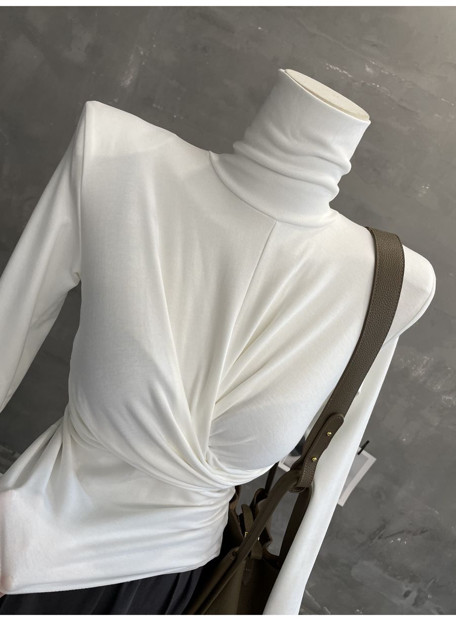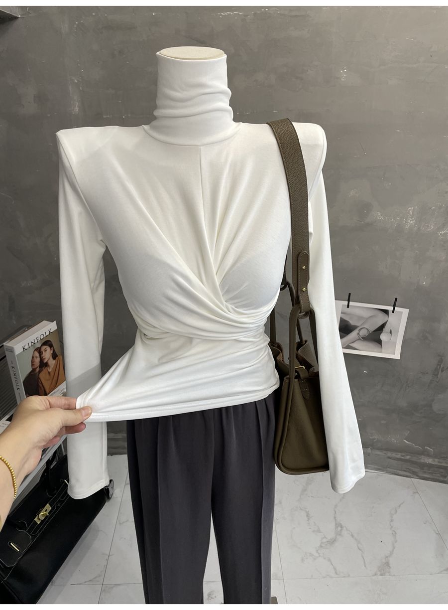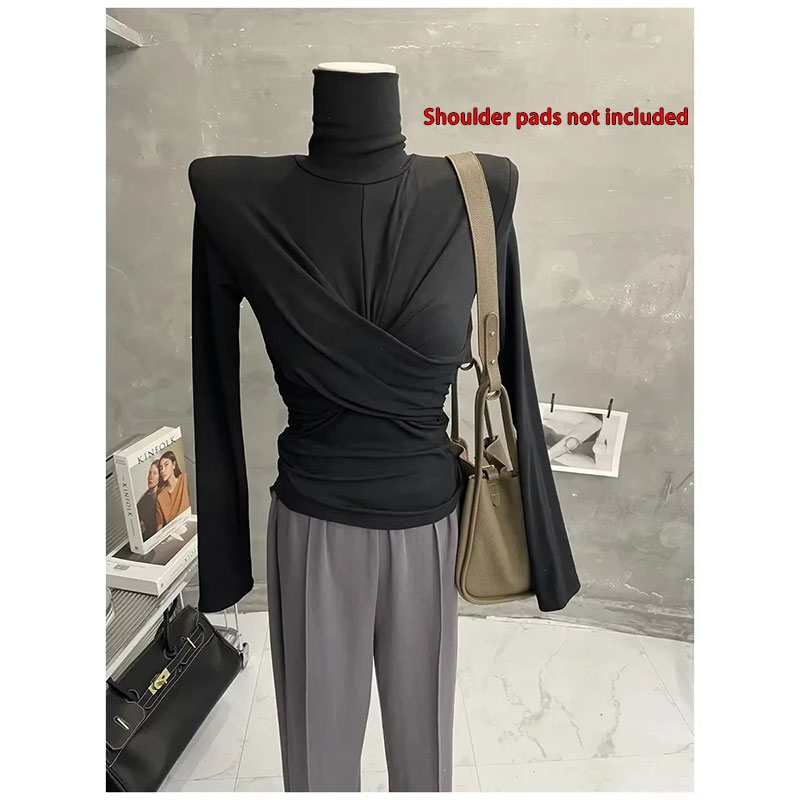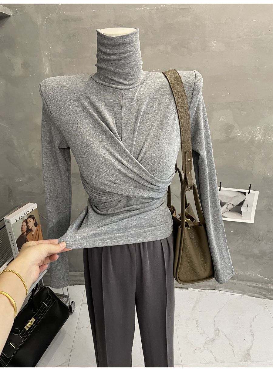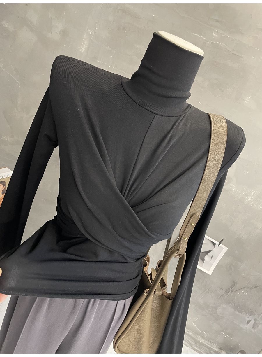 Season: Autumn/Winter Clothing Length: Regular Gender: Women Elasticity: Medium Stretch Sleeve Style: Regular Pattern Type: Solid Collar: Turtleneck Material: Polyester Support: Wholesale, Drop shipping Decoration: Folds Dress style: Pullover Fabric Type: Blended 105℃挥发物≤: JOEVILU Tops Type: Tees CN: Zhejiang |Twisted Top Sexy| **Elegant Autumn/Winter Essential** Embrace the chill with our Turtleneck Base Shirt for women, a blend of style and comfort designed to keep you warm and fashionable during the cooler months. The turtleneck style adds a classic touch, while the solid color and medium stretch fabric ensure a versatile wardrobe staple that can be dressed up or down. The regular clothing length provides a flattering fit, while the full-length sleeves offer additional warmth. This top is crafted from a high-quality blended fabric that meets the JOEVILU standard for low volatile organic compounds (VOC) emissions, ensuring a sustainable and health-conscious choice. **Versatile Design for the Modern Woman** Incorporate this sexy twisted top into your wardrobe for a touch of sophistication and allure. The Korean fashion-inspired design, paired with a slim fit, makes it a must-have for fashion-forward women. Whether you're heading to the office or out for a night on the town, this top seamlessly transitions from day to night. The unique twisted detailing adds a playful yet chic element to the classic turtleneck style, making it a standout piece in your collection. **Comfort Meets Style** The Turtleneck Base Shirt is designed with the modern woman in mind, offering both style and comfort. The plush pullover design ensures ease of wear, while the medium stretch fabric accommodates a range of body types. The pullover style eliminates the need for fasteners, providing a seamless look that's easy to layer or wear alone. With its solid color pattern and classic turtleneck collar, this top is a versatile addition to any wardrobe, perfect for junior to adult women seeking a blend of trendiness and timelessness.